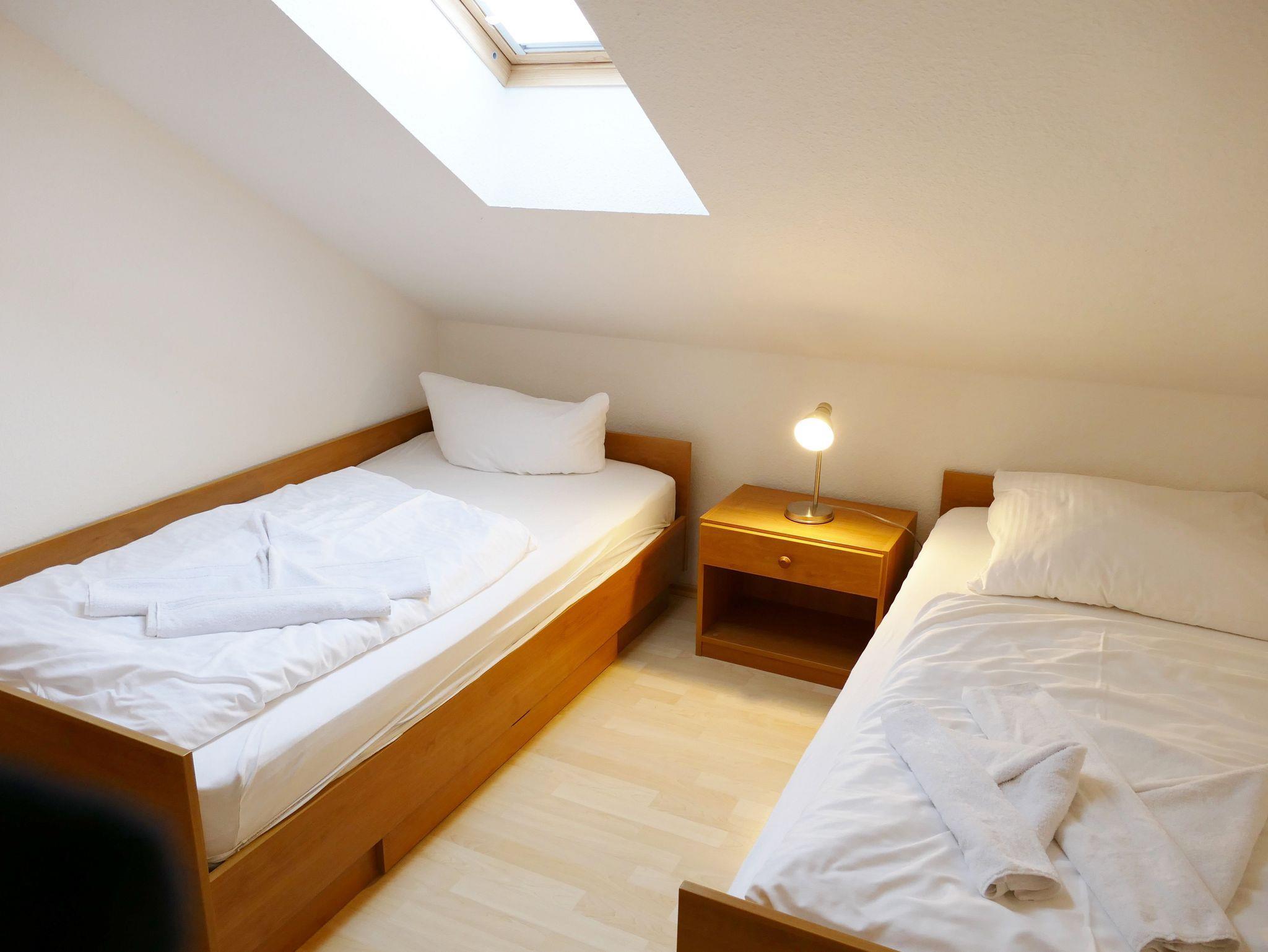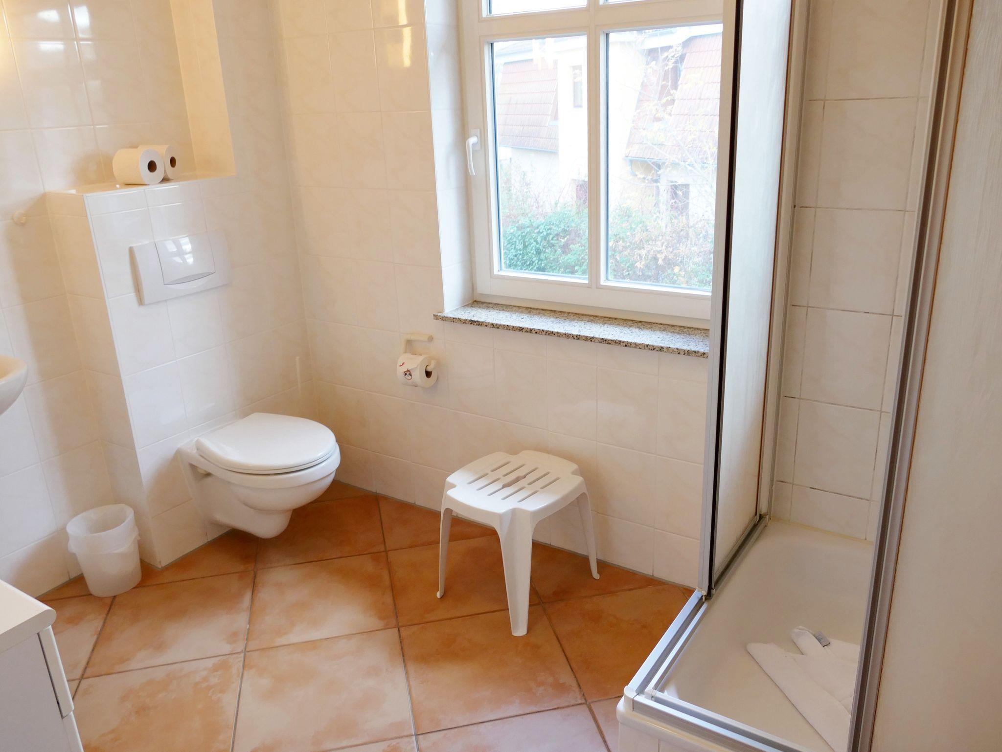 Die 53 qm große Maisonette-Ferienwohnung bietet Platz für max. 4 Personen. Die Wohnung verfügt über einen Wohnbereich und Küchenzeile, ein Badezimmer mit Dusche und WC und in der oberen Etage über ein Schlafzimmer mit einem Doppelbett und ein Schlafzimmer mit 2 Einzelbetten. Die Wohnung hat einen Balkon zur Gartenseite. Der Wohnbereich ist mit einer gemütlichen Sitzgruppe und einem Essplatz eingerichtet. Ebenso sind Kabel-TV und CD-Spieler mit Radio vorhanden.