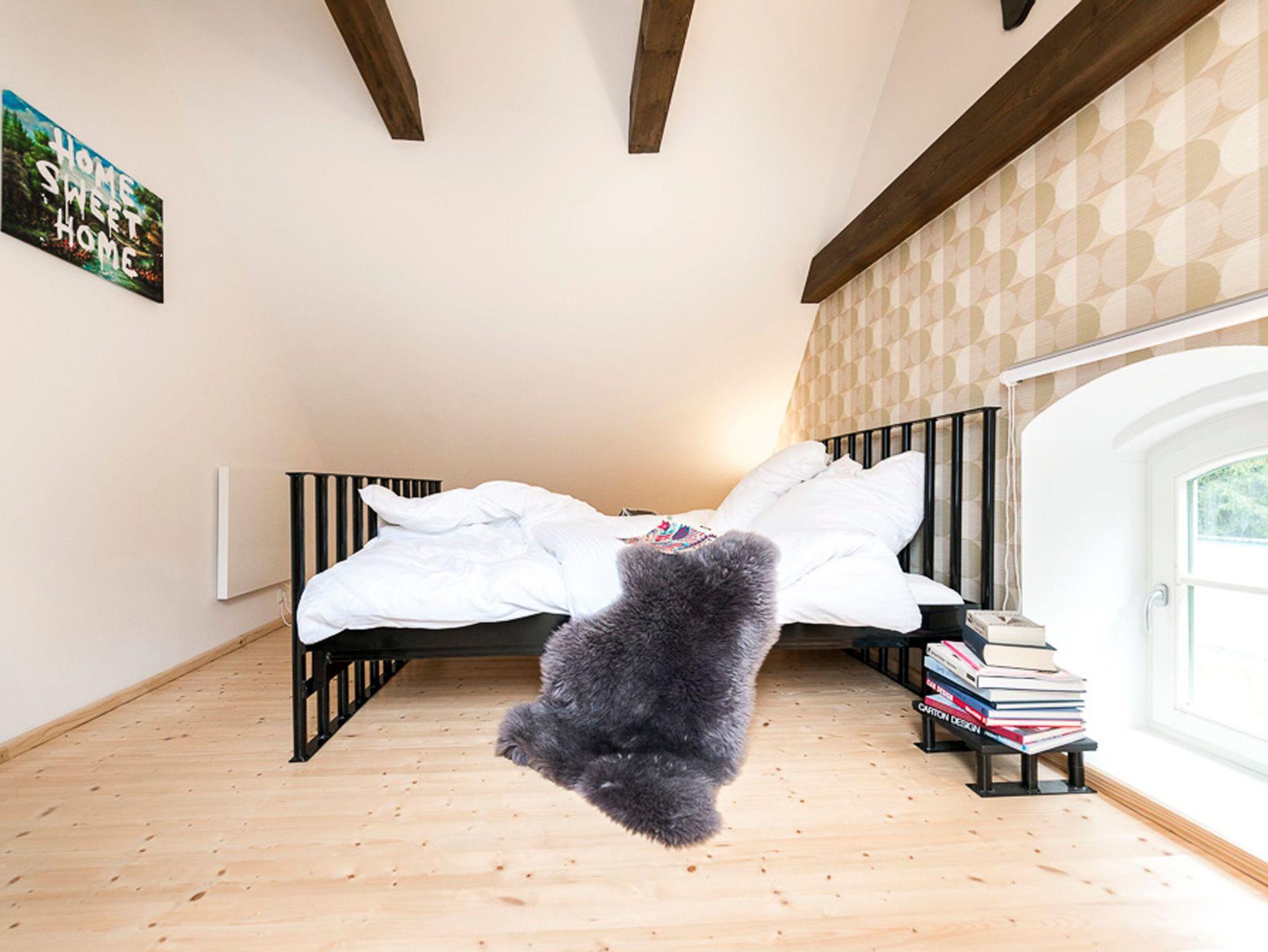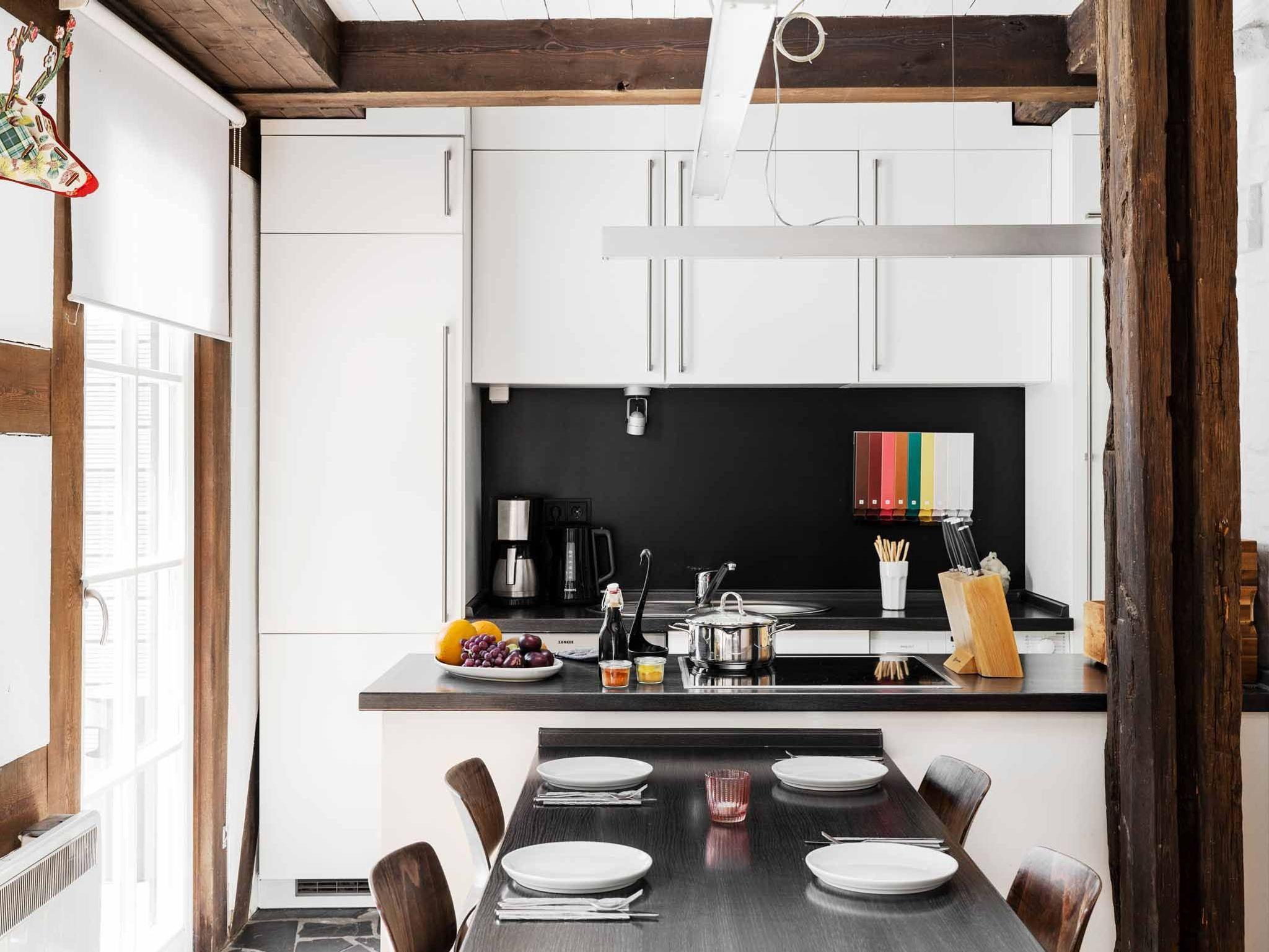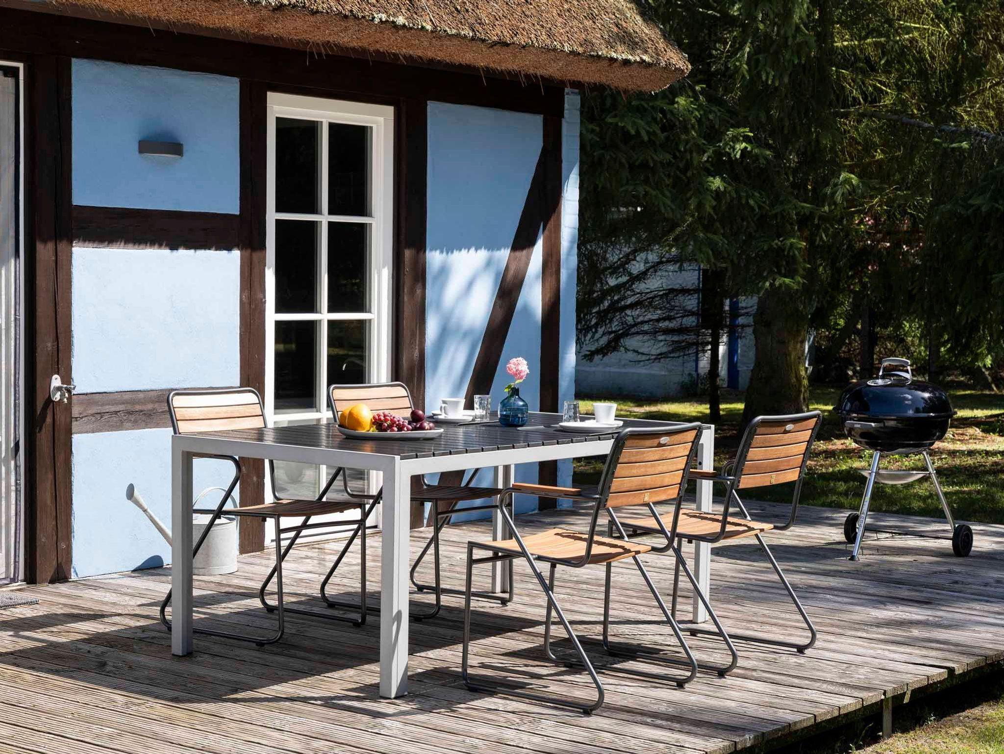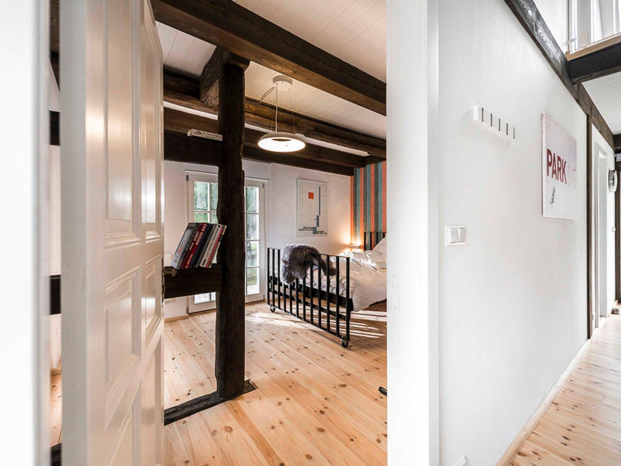 Das reetgedeckte Kolonistenhaus aus dem 18. Jahrhundert wurde 2013 aufwendig umgestaltet und modernisiert. Dabei lag der Fokus darauf, die markantesten historischen Elemente des Hauses zu erhalten und Ihnen moderne, zeitgenössische Ausstattungselemente gegenüberzustellen. In der Folge entstand durch das Freilegen der originalen Fachwerkbalken im Inneren ein großzügiger, luftiger und lichtdurchfluteter Wohnraum mit offener Galerie, in dessen Mitte der robust gemauerte Schornstein wie ein Monolith den Raum dominiert. Auf hellen Holzdielen sind nun mit vielen anderen liebevollen Details Möbelklassiker der früher 70er Jahre eingezogen, welche den modernen Stil des Hauses und gleichzeitig den Kontrast zu den historischen Stilelementen unterstreichen. Im vorderen Teil des Wohnraums empfängt Sie heute ein stylisches Sofa Set der Firma Ligne Roset mit Kamin und TV, im hinteren Bereich die offene, moderne Designerküche mit praktischer Kochinsel und langgezogenem Esstisch. Seitlich schließen sich eines der beiden Schlafzimmer mit gemütlichem Doppelbett und ein großzügiges Bad mit Wanne, Dusche und WC an. Sämtliche Fenster im Erdgeschoß sind bodentief und bilden Ausgänge auf die das Haus umgebende, weitläufige Holzterrasse. Die maßgeschneiderte Einbautreppe - geschickt hinter der Kücheneinbauwand versteckt - führt schließlich ins luftige Obergeschoss, welches hinter dem Bereich der offenen Galerie ein weiteres abgeschlossenes Schlafzimmer bietet.