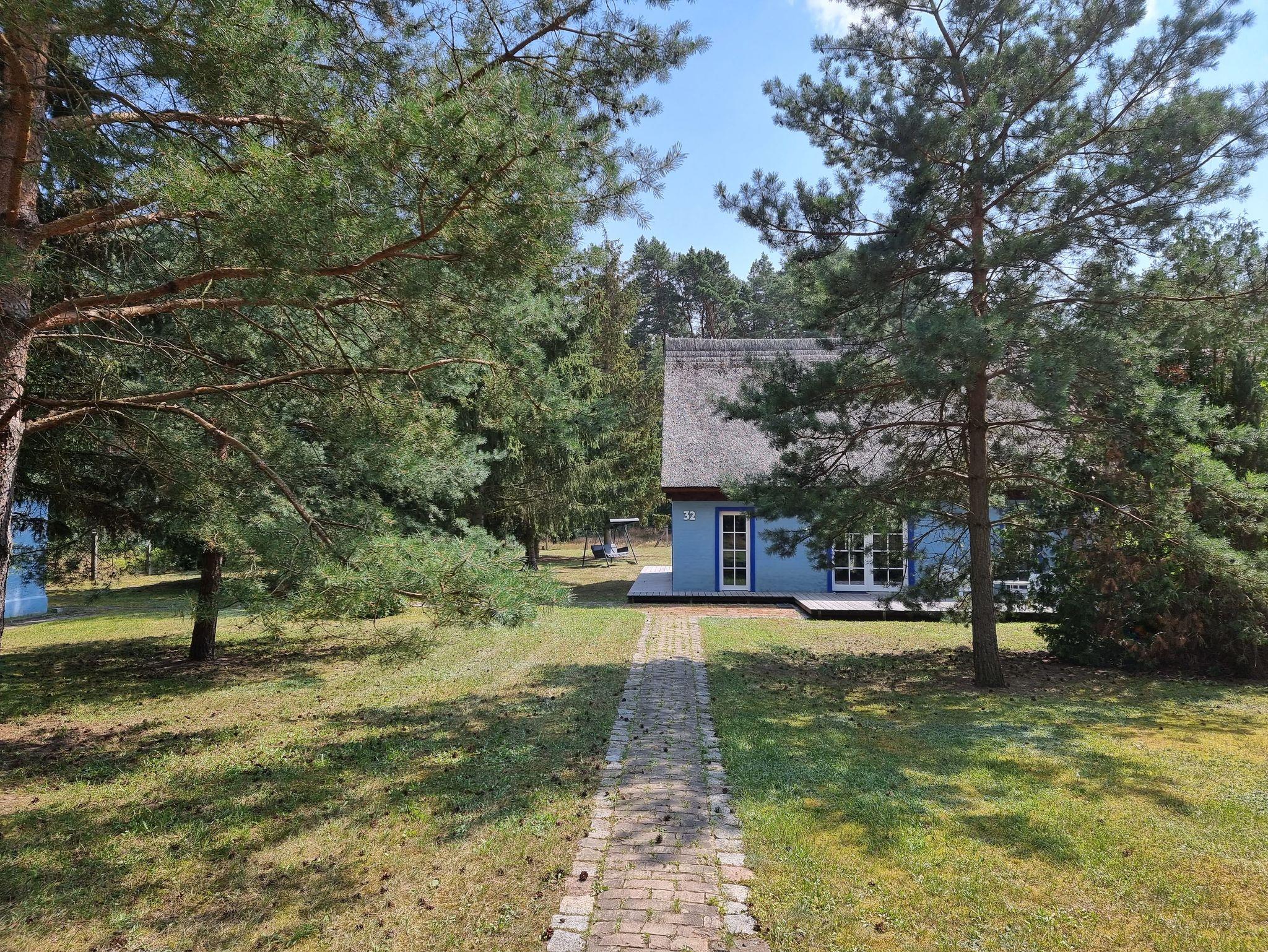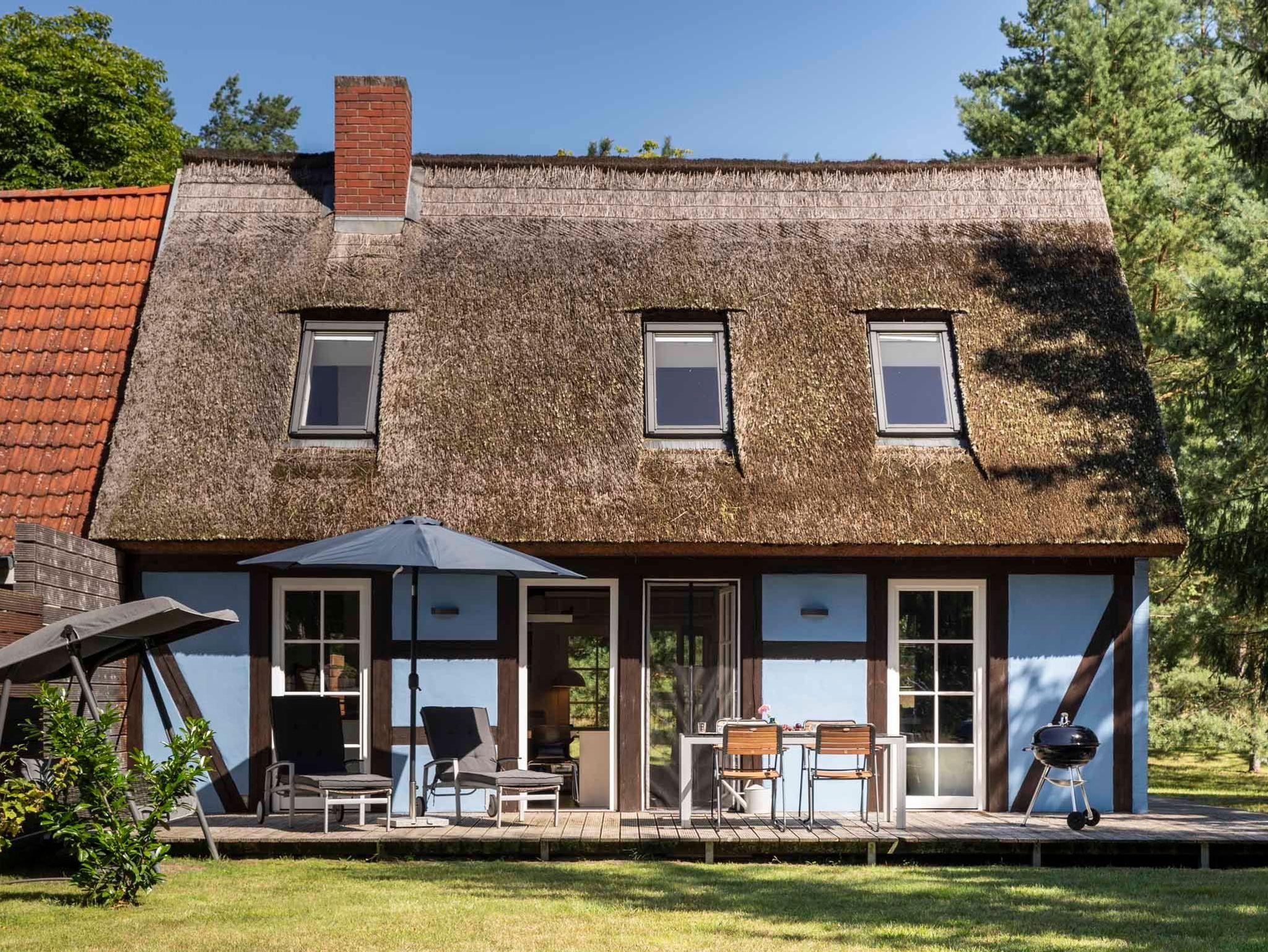 Pommernhaus Vorsee am Kiefernwald Kamin Boot, Reetgedecktes Fachwerkhaus, Kamin, Ruderboot, großer Garten