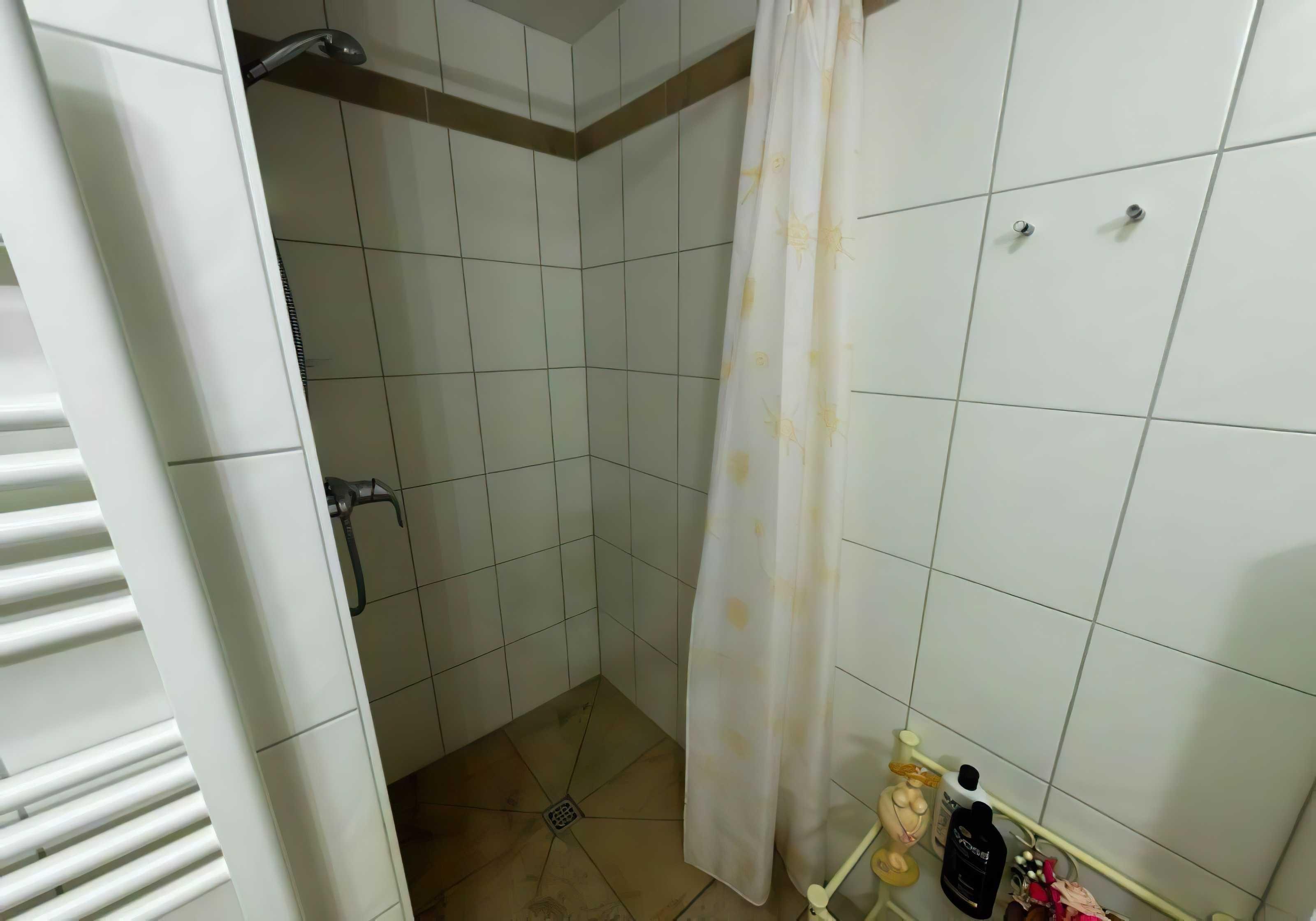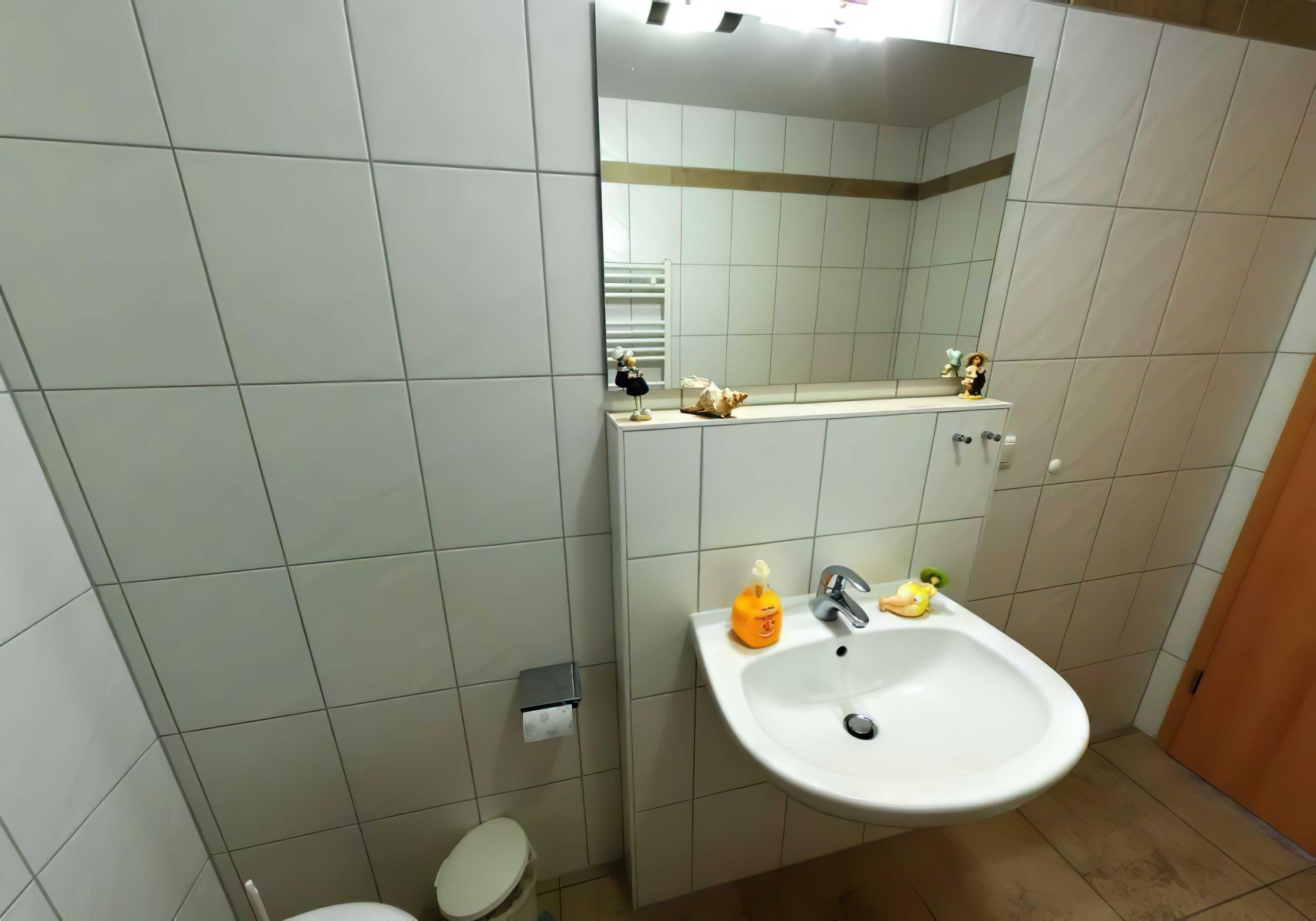 Des Weiteren gibt es einen Esstisch mit vier Stühlen, einen Fernseher und ein Radio. Eine bequeme Ledersitzgarnitur, die auch als Schlafcouch genutzt werden kann, rundet die Ausstattung ab.