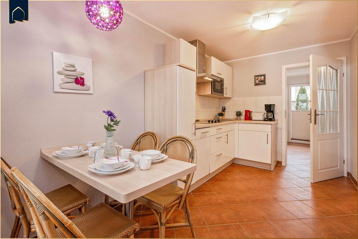 Diese gemütliche Ferienwohnung auf Usedom bietet auf 35?m² ein perfekt abgestimmtes Raumkonzept für bis zu 4 Personen. Mit einem separaten Schlafzimmer, einem komfortablen Wohnbereich mit Schlafsofa, einem modernen Badezimmer mit Dusche und einer voll ausgestatteten Küche eignet sich die Unterkunft ideal für Paare oder kleine Familien. Der gemütliche Esstisch lädt zu gemeinsamen Mahlzeiten ein, und ein Ganzkörperspiegel sowie zahlreiche Fenster sorgen für ein luftiges, freundliches Raumgefühl.