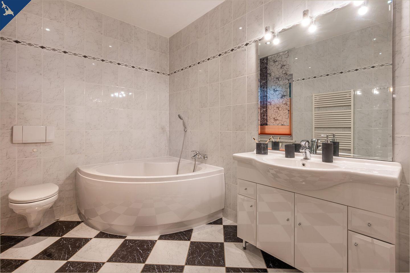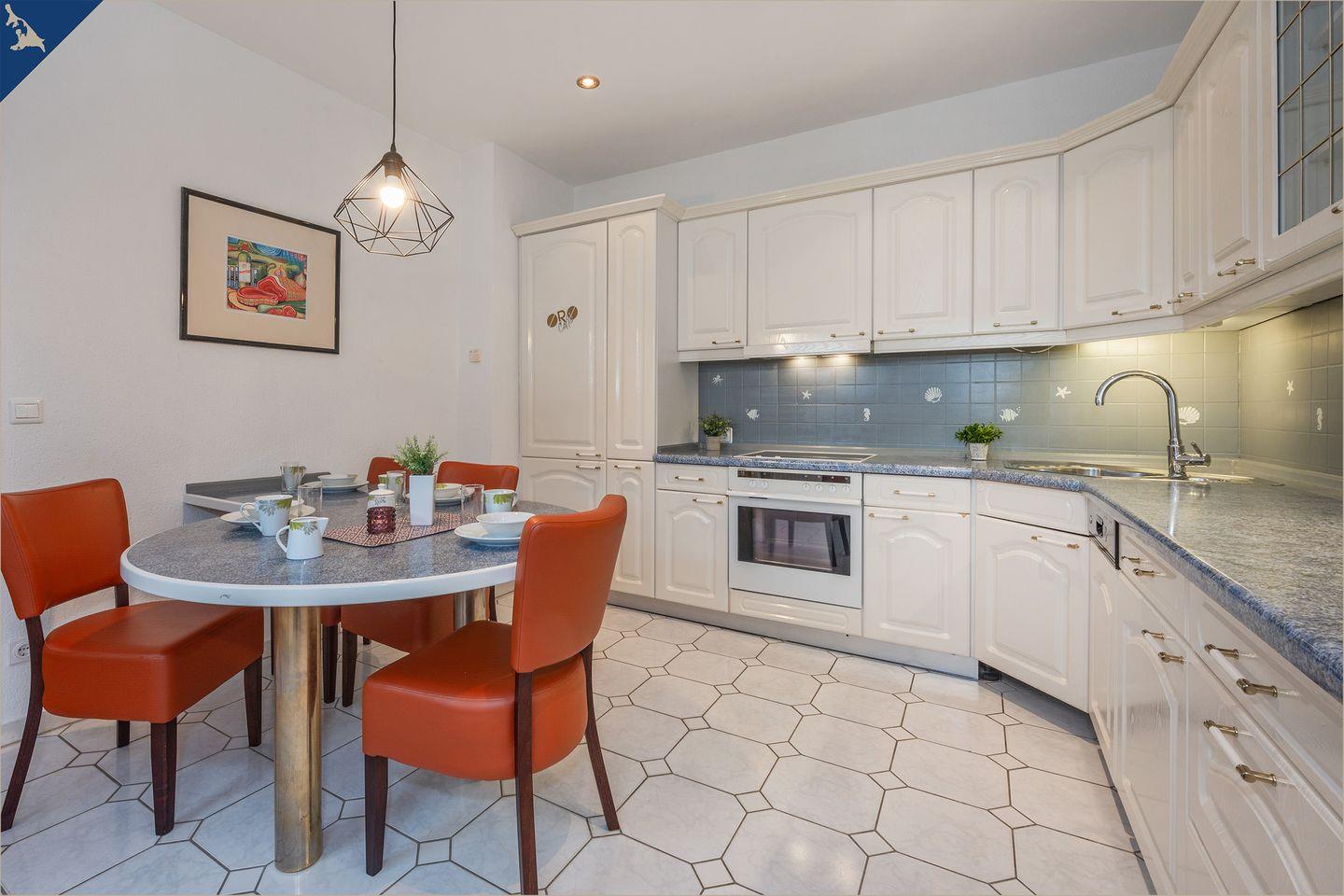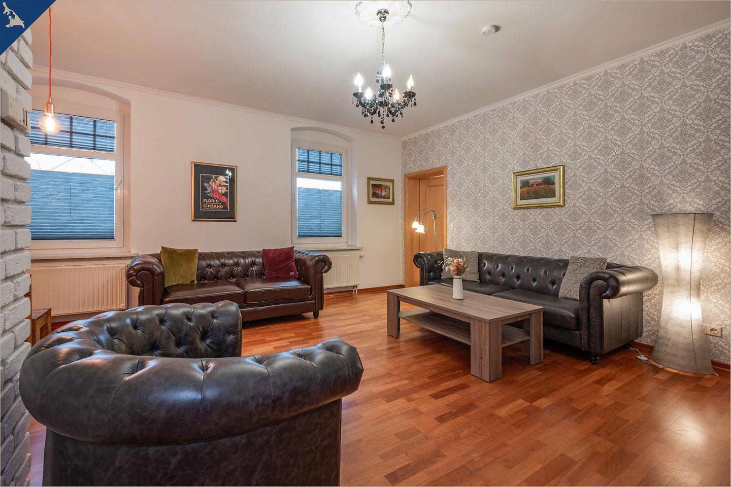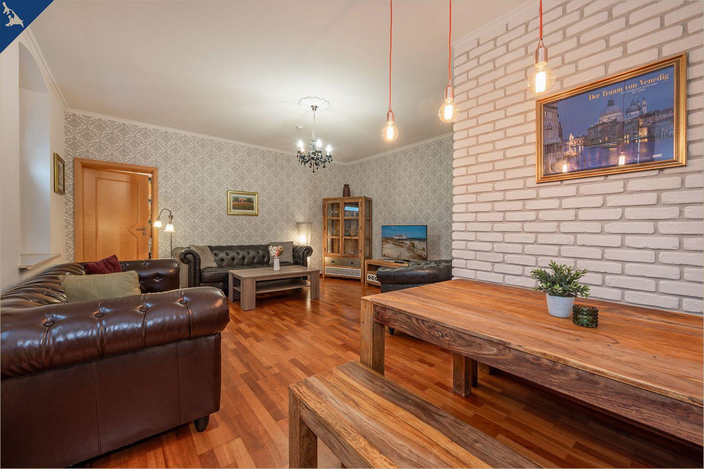 Diese moderne, ca. 120?m² große Ferienwohnung auf zwei Etagen bietet ausreichend Platz für bis zu 7 Personen – ideal für Familien oder Gruppen. Mit vier liebevoll eingerichteten Schlafzimmern, zwei voll ausgestatteten Badezimmern (inkl. Dusche und Badewanne) sowie einem großzügigen Wohnbereich erleben Sie Urlaubskomfort auf hohem Niveau. Der helle Wohnraum mit Sofaecke und TV lädt zum Entspannen ein, während der angrenzende Essbereich zu gemeinsamen Mahlzeiten einlädt.