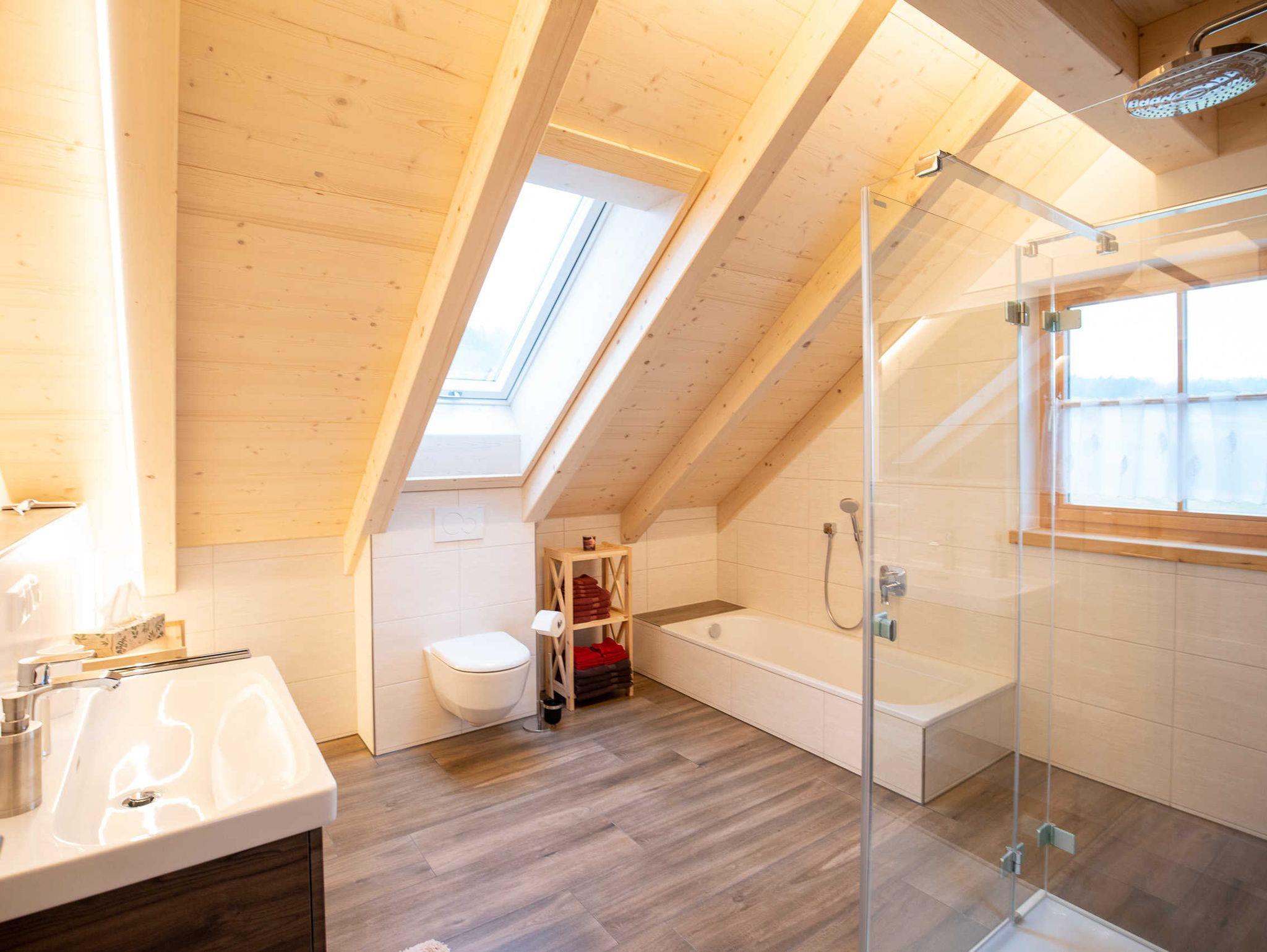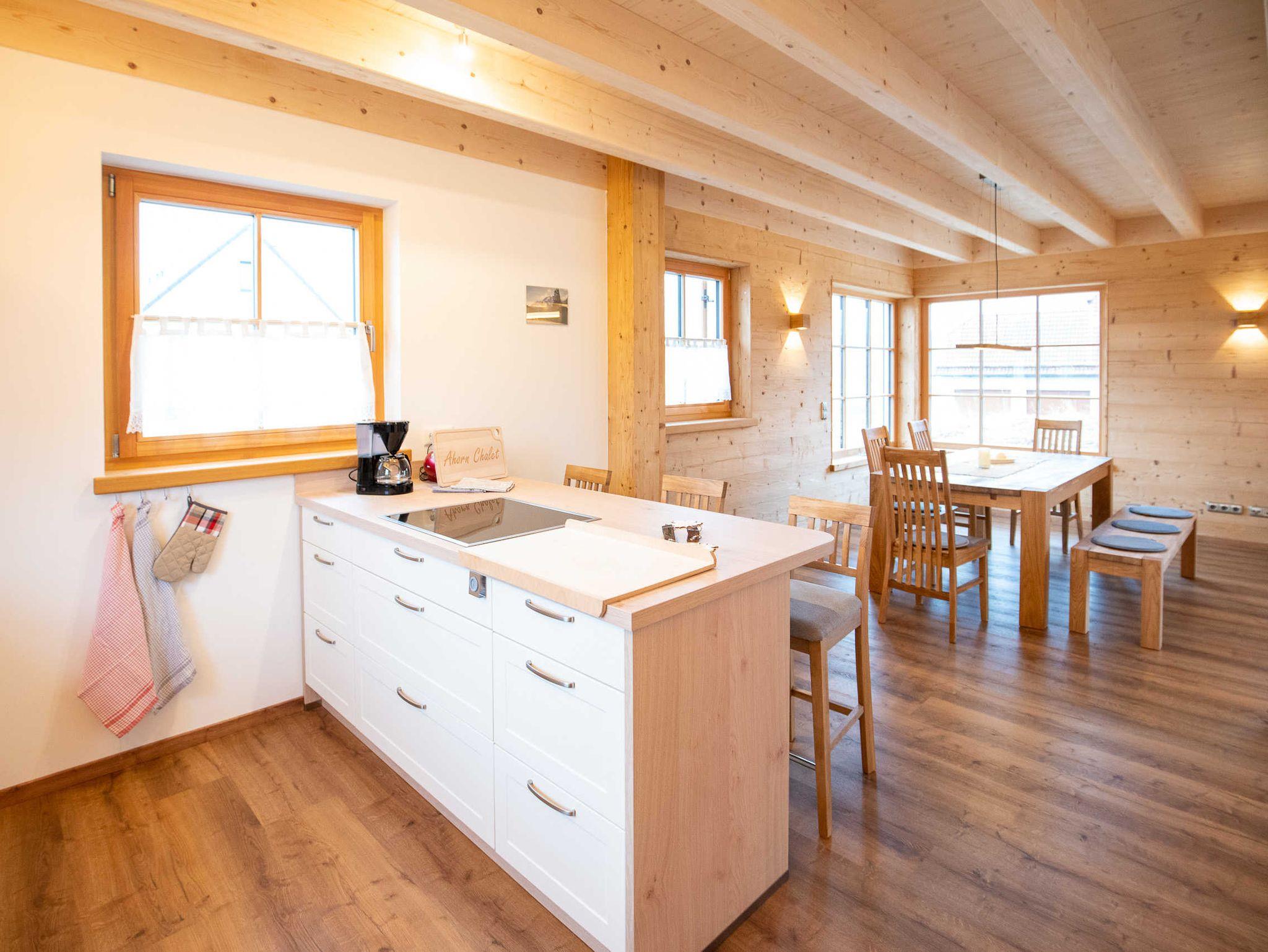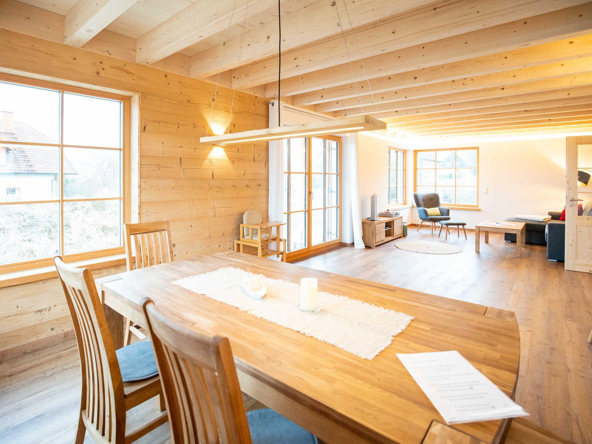 Das neu erbaute Holzhaus liegt am Rande des Ortes Kirchahorn mit Blick auf Wiesen und Felder. Die 140 qm Wohnfläche bietet auf 2 Etagen Platz für bis zu 6 Personen. Das hochwertig ausgestattete Haus verfügt über großzügig geschnittene, helle Räume und einen offenen Wohn- / Essbereich. Ein Balkon und eine Terrasse Richtung Süden laden zum Entspannen ein. Der Dorfladen ist ebenso wie der Ortskern mit einem gemütlichen Gasthaus nur 5 Gehminuten entfernt. Die Arztpraxis, die Apotheke und auch eine Physiopraxis befinden sich in direkter Nähe.