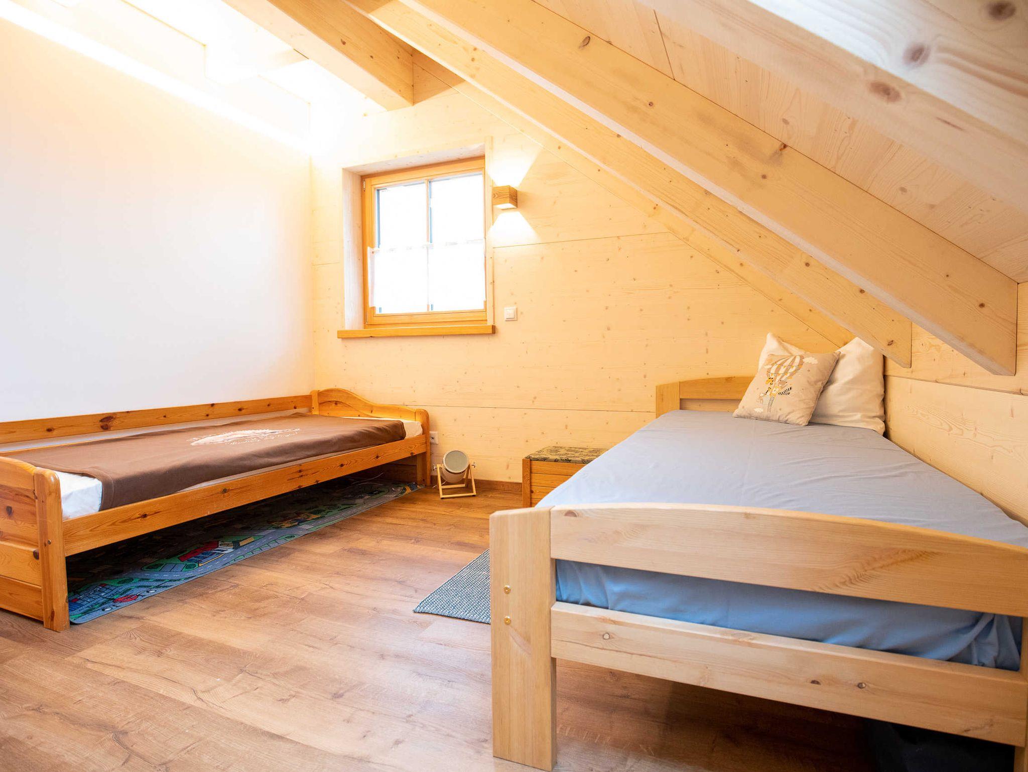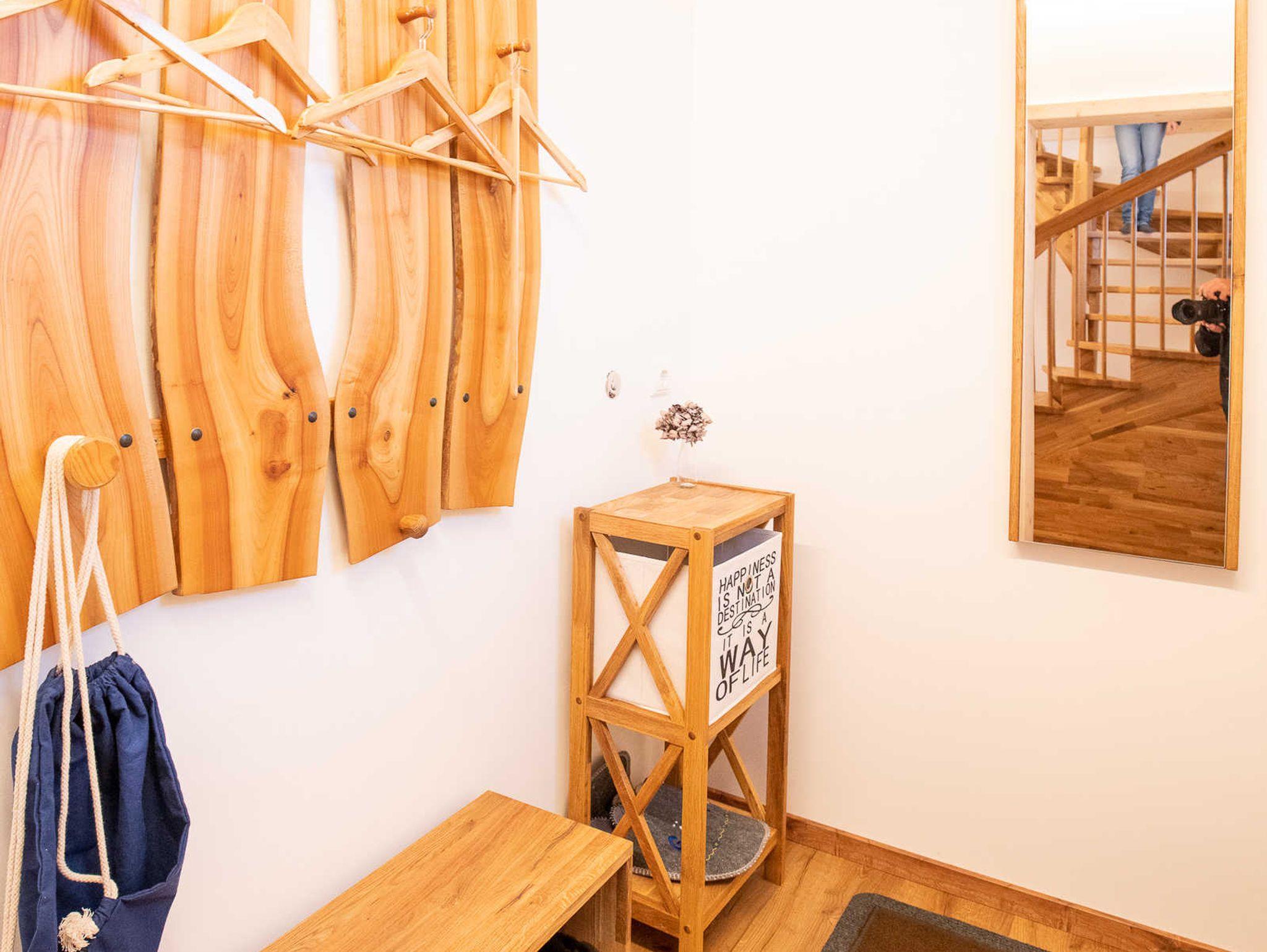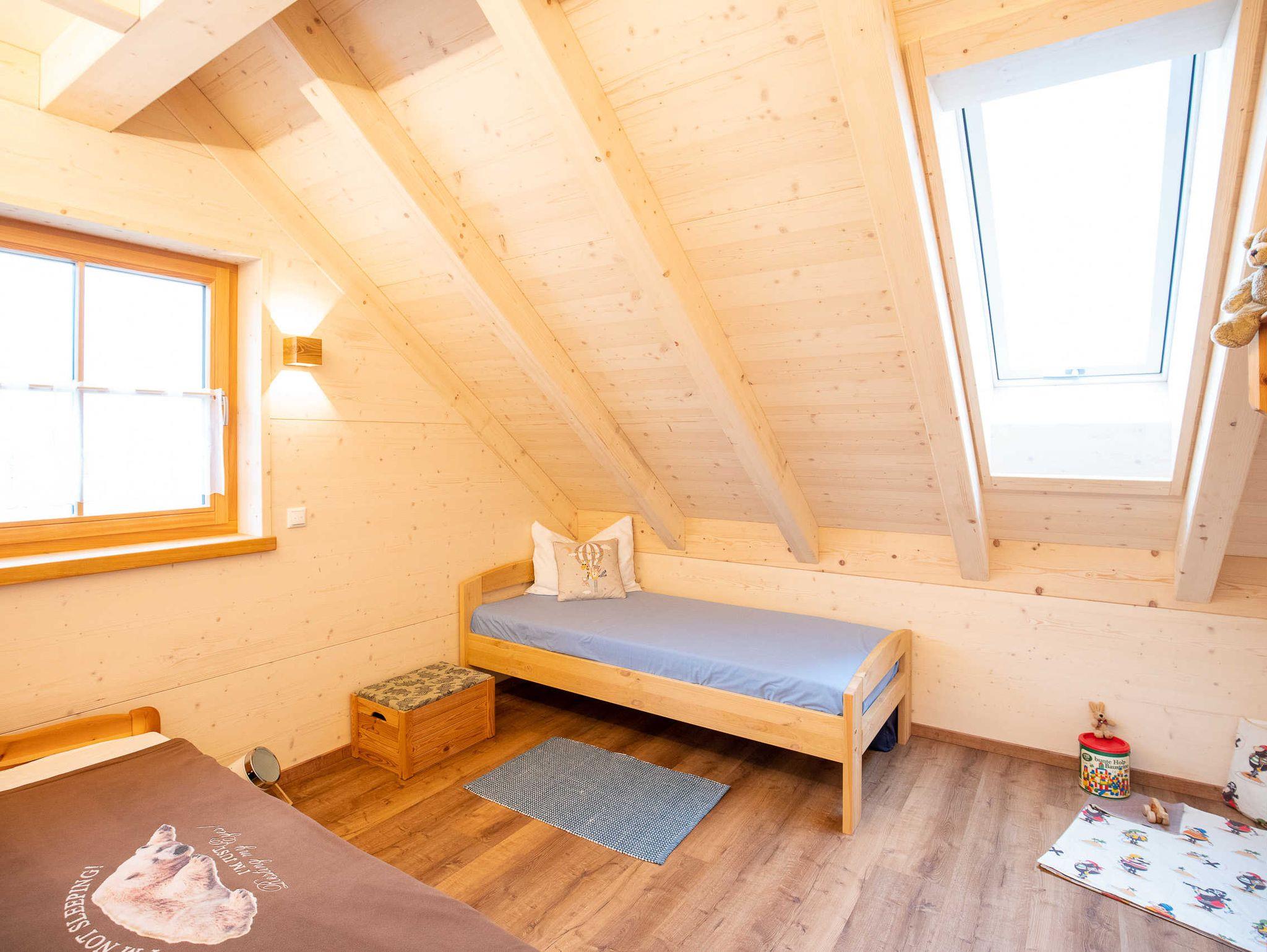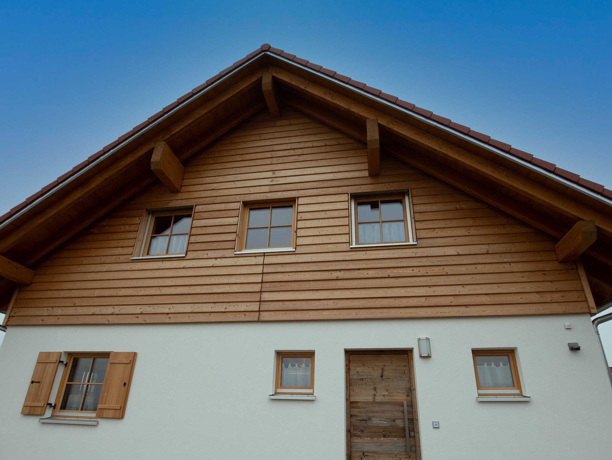 Das freistehende Holzhaus mit 140 qm Wohnfläche verfügt über 3 Schlafzimmer und zwei Bäder und bietet auf 2 Etagen Platz für 6 Personen.