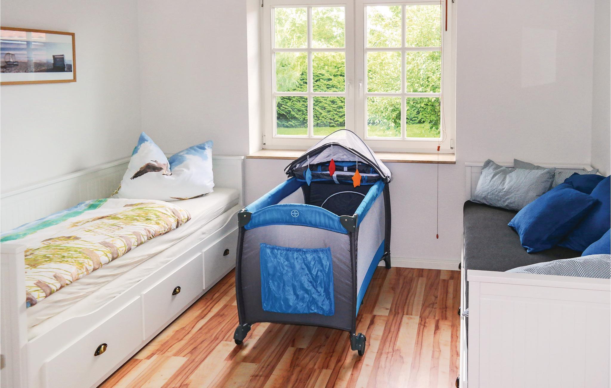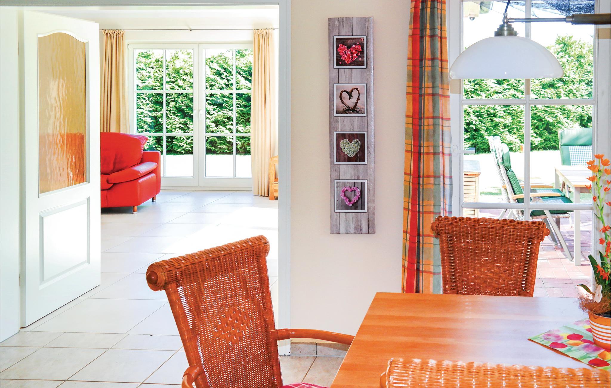 Til hyggelige aftener indbyder den åbne terrasse eller også brændeovnen i den kærligt indrettede dagligstue. Efter renoveringen i 2017 er huset et komfortabelt og roligt feriedomicil i udkanten af byen. I badeværelset er der gulvvarme. Herfra kan I tage på familieudflugt til Østersøen.