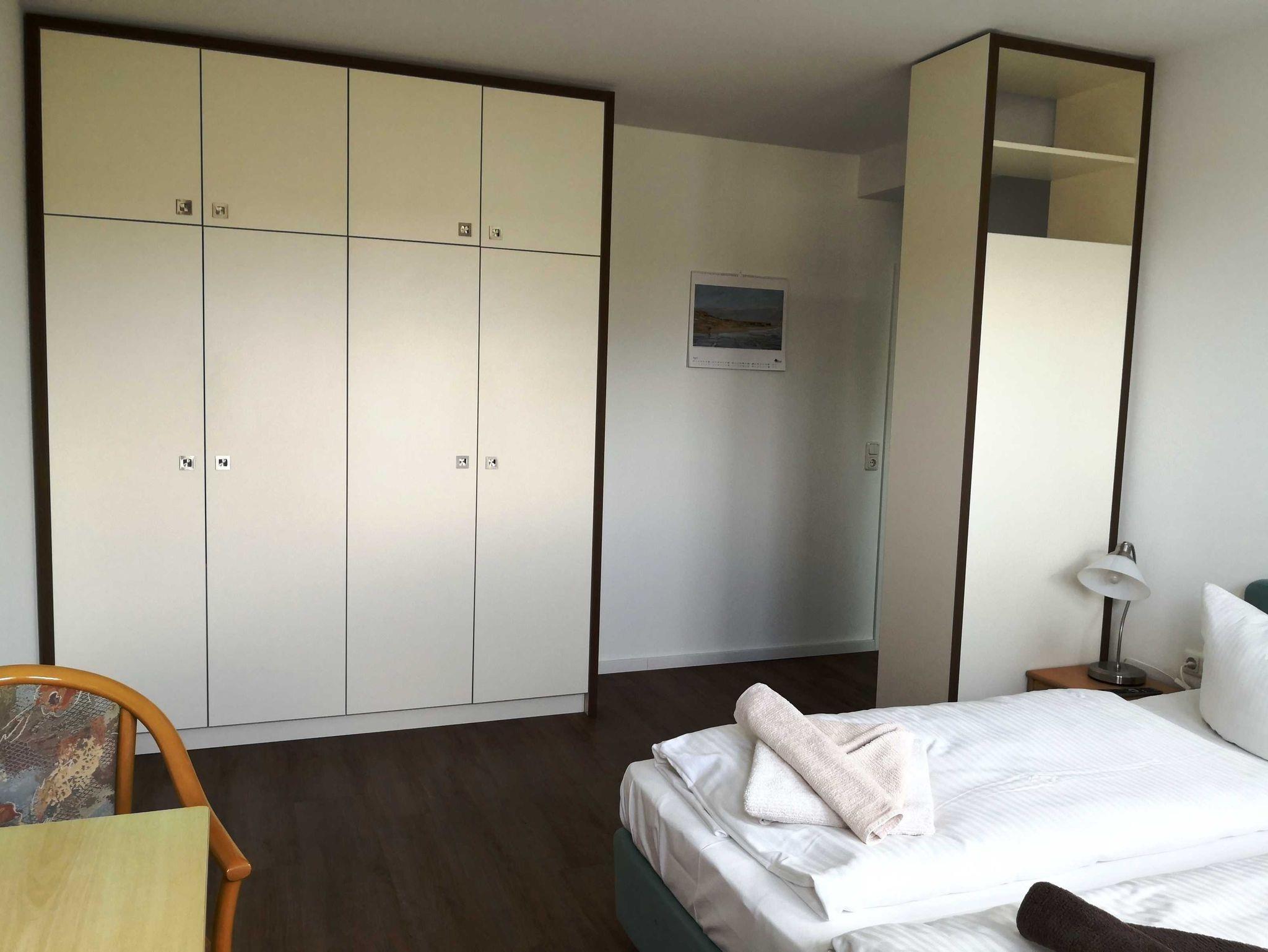 Im Gästehaus der Strandhalle befinden sich 10 modern eingerichtete Zweibettzimmer und ein Gruppenraum zur Nutzung von Gruppenreisenden.
