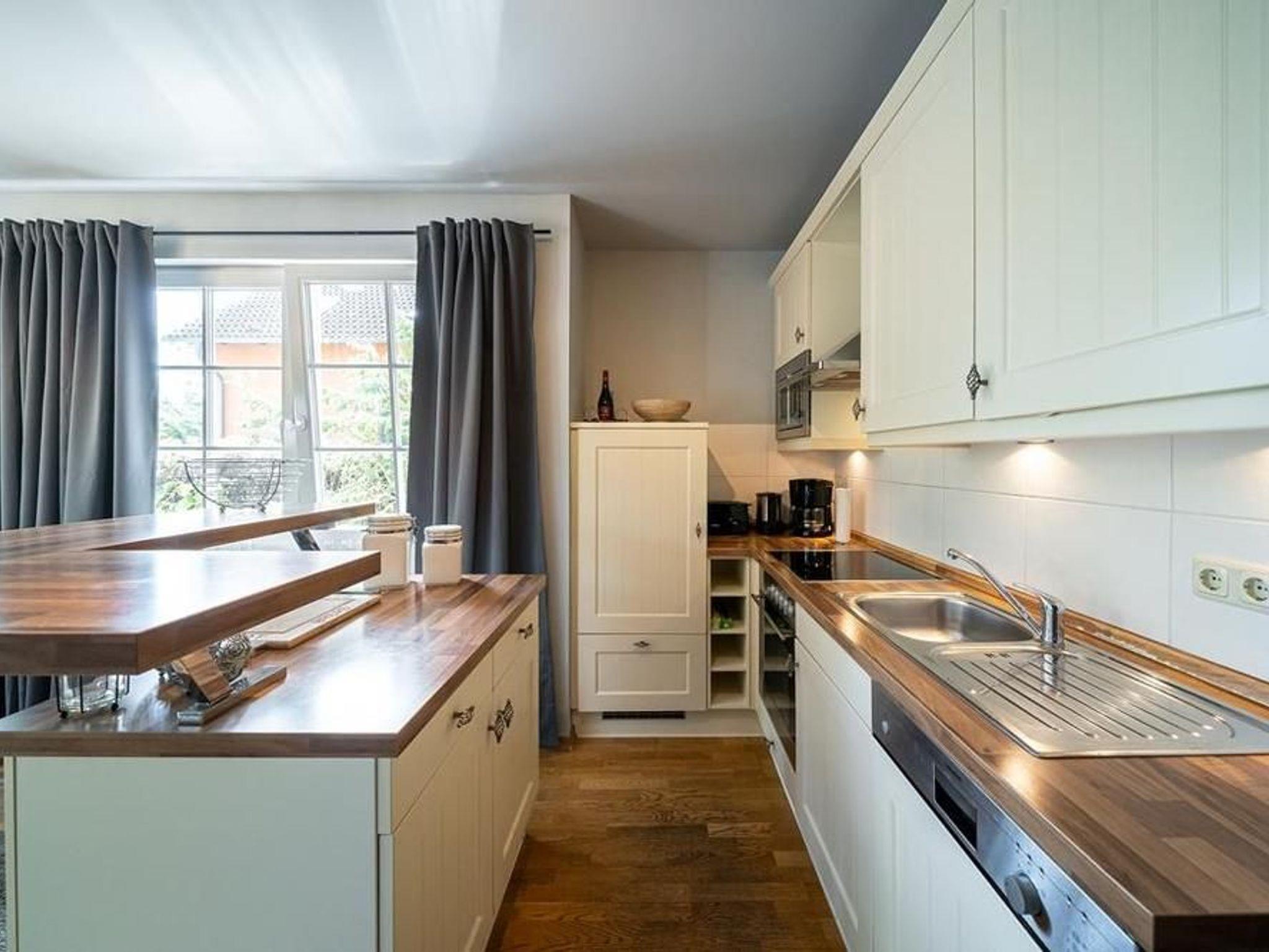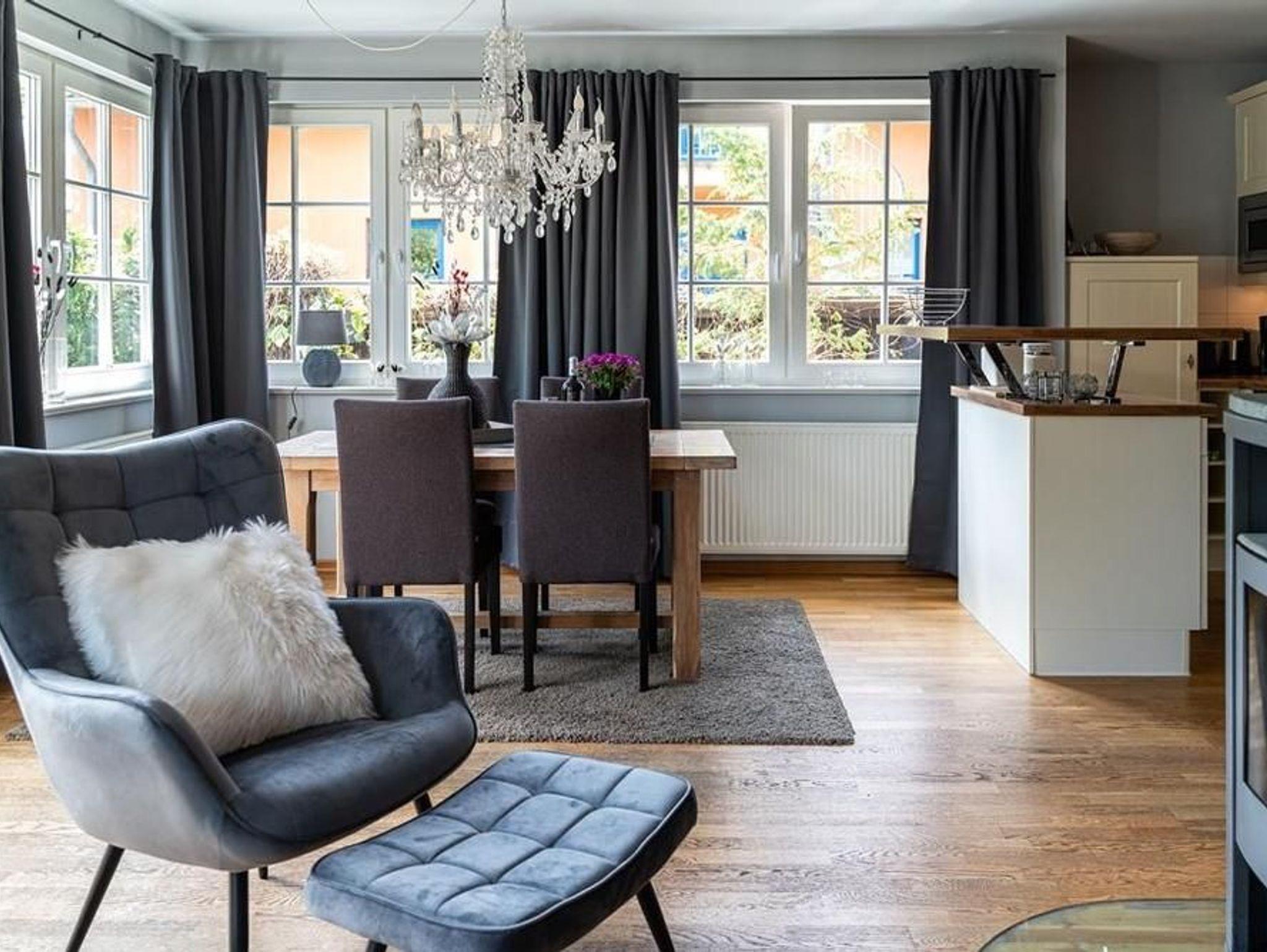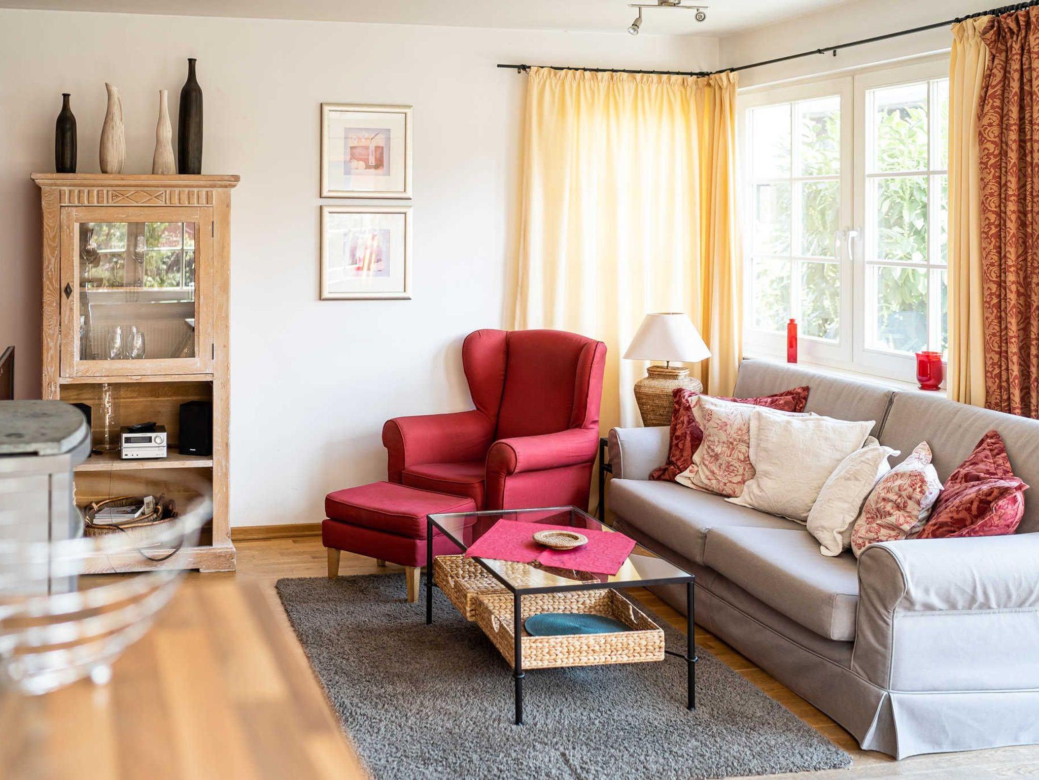 Alle Räume sind hochwertig und geschmackvoll eingerichtet und wirken hell und freundlich durch die großen Sprossenfenster. Die Küche ist ausgestattet mit einem Geschirrspüler und einem Herd mit Backofen. Die Wohnung verfügt über eine TV-SAT-Anlage. In der Wohnküche können Sie es sich am Kamin gemütlich machen. In der Wohnung finden 2 - 4 Personen Platz. Es gibt zwei Schlafzimmer mit Doppelbett (1 Bett 140x200). Im Badezimmer finden Sie eine Dusche / WC. Die Terrasse ist nach hinten ausgerichtet und Sie können den Blick ins Grüne genießen.