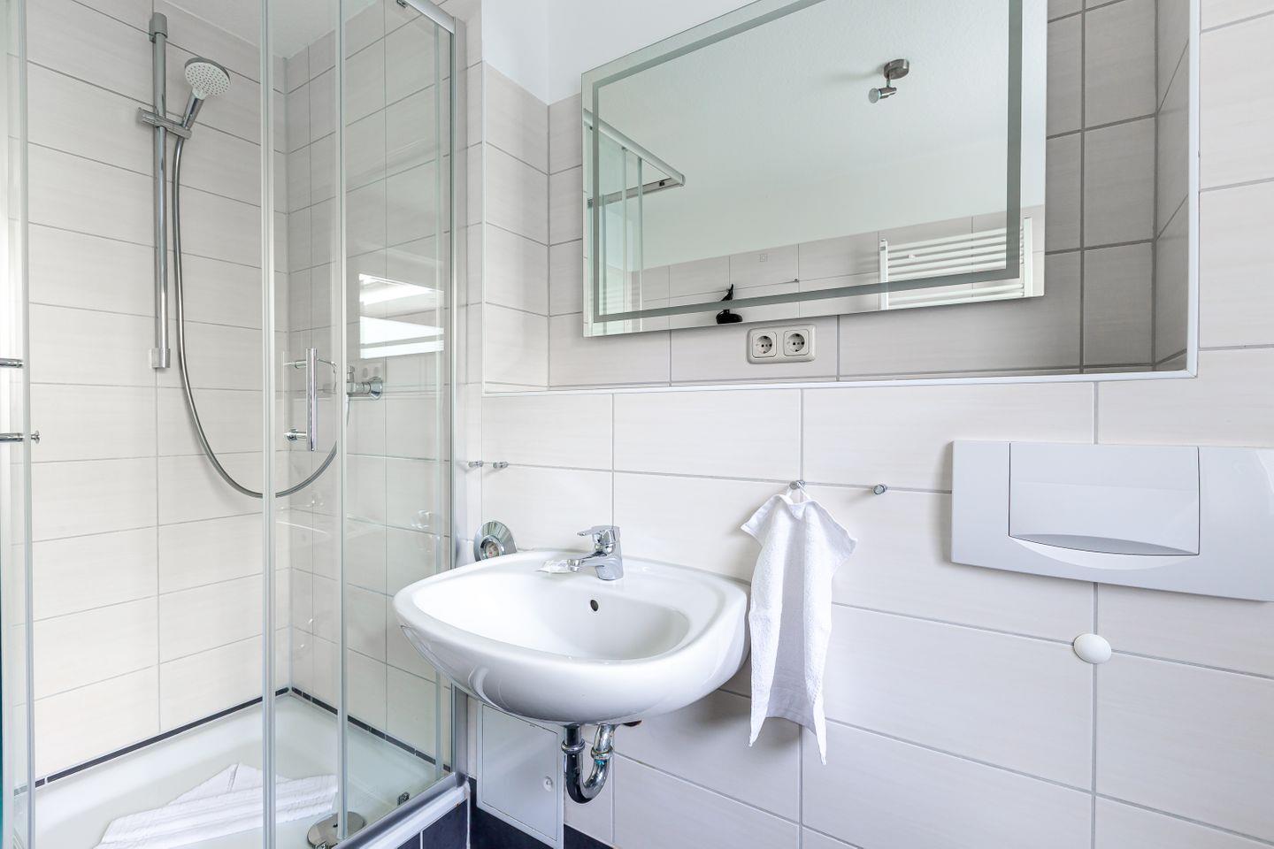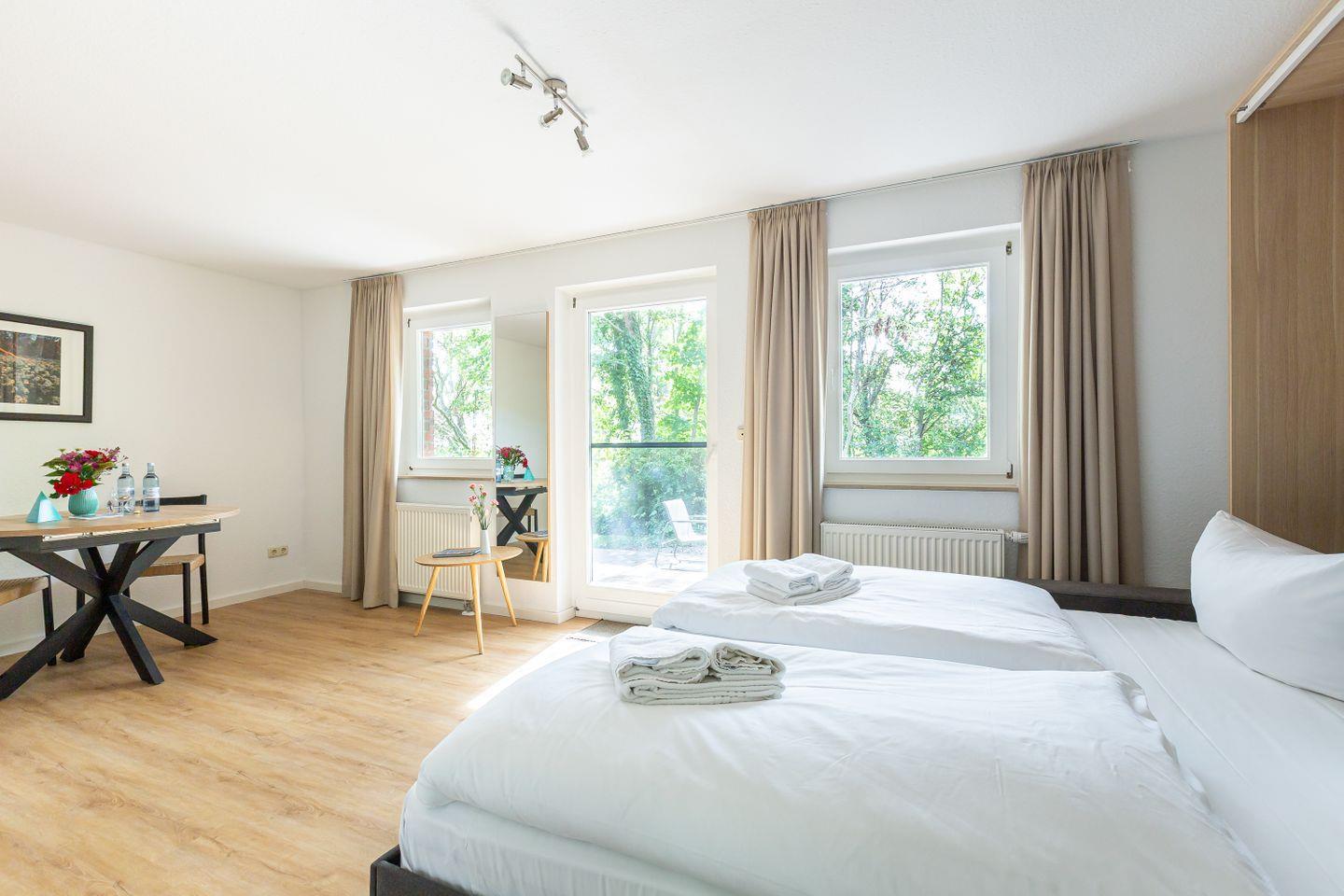 Draußen wartet auf dich die eigene Terrasse: ein geschützter Lieblingsplatz für Sonnenstunden, frische Luft und vielleicht ein Glas Wein am Abend. Ein Apartment wie gemacht für Alleinreisende oder Paare, die Ahrenshoop pur erleben möchten.