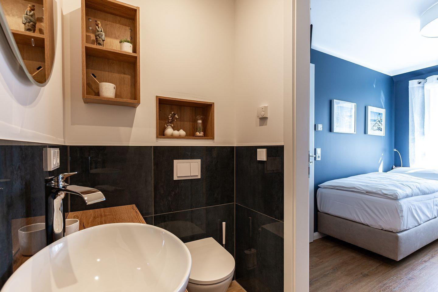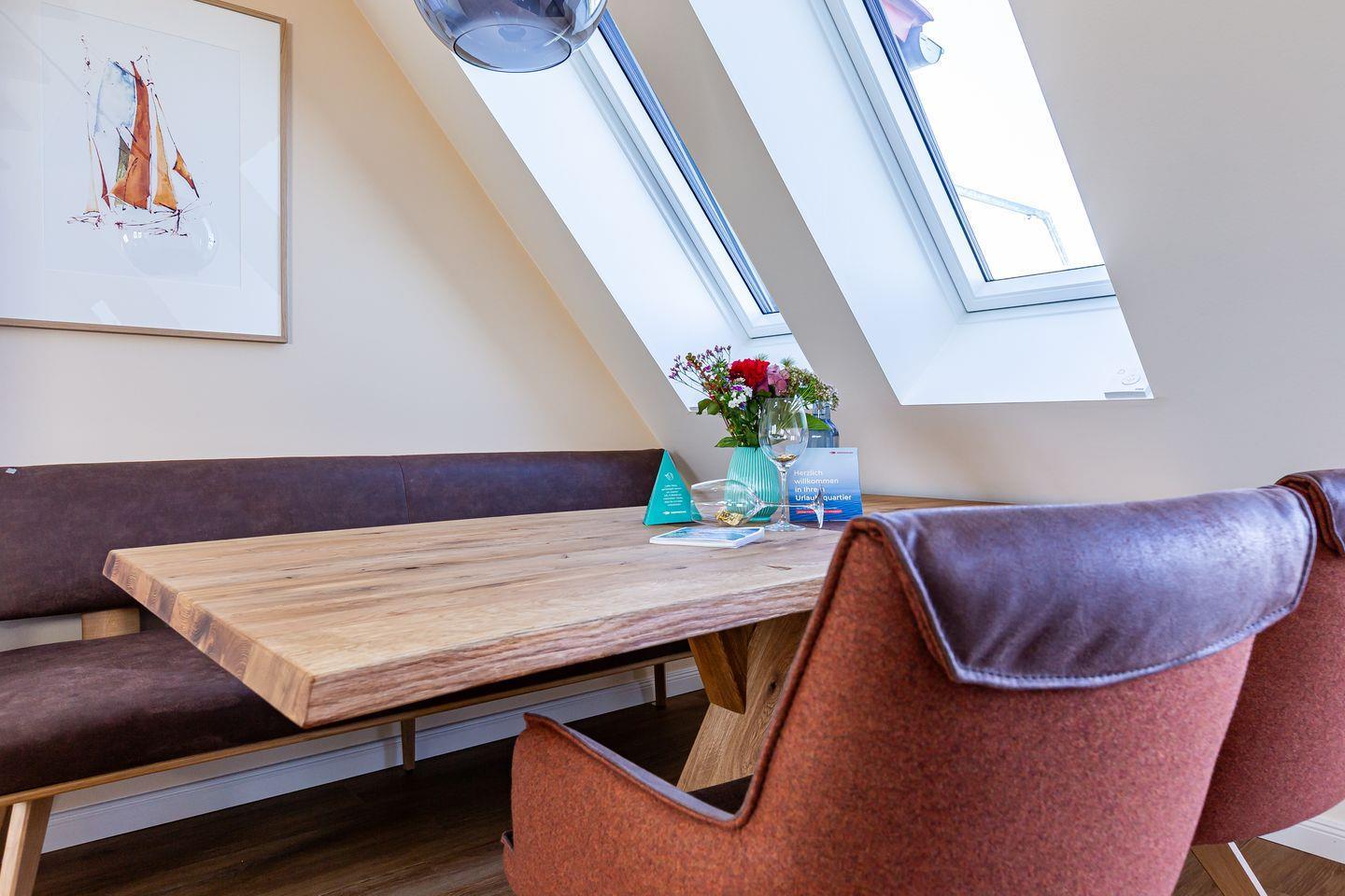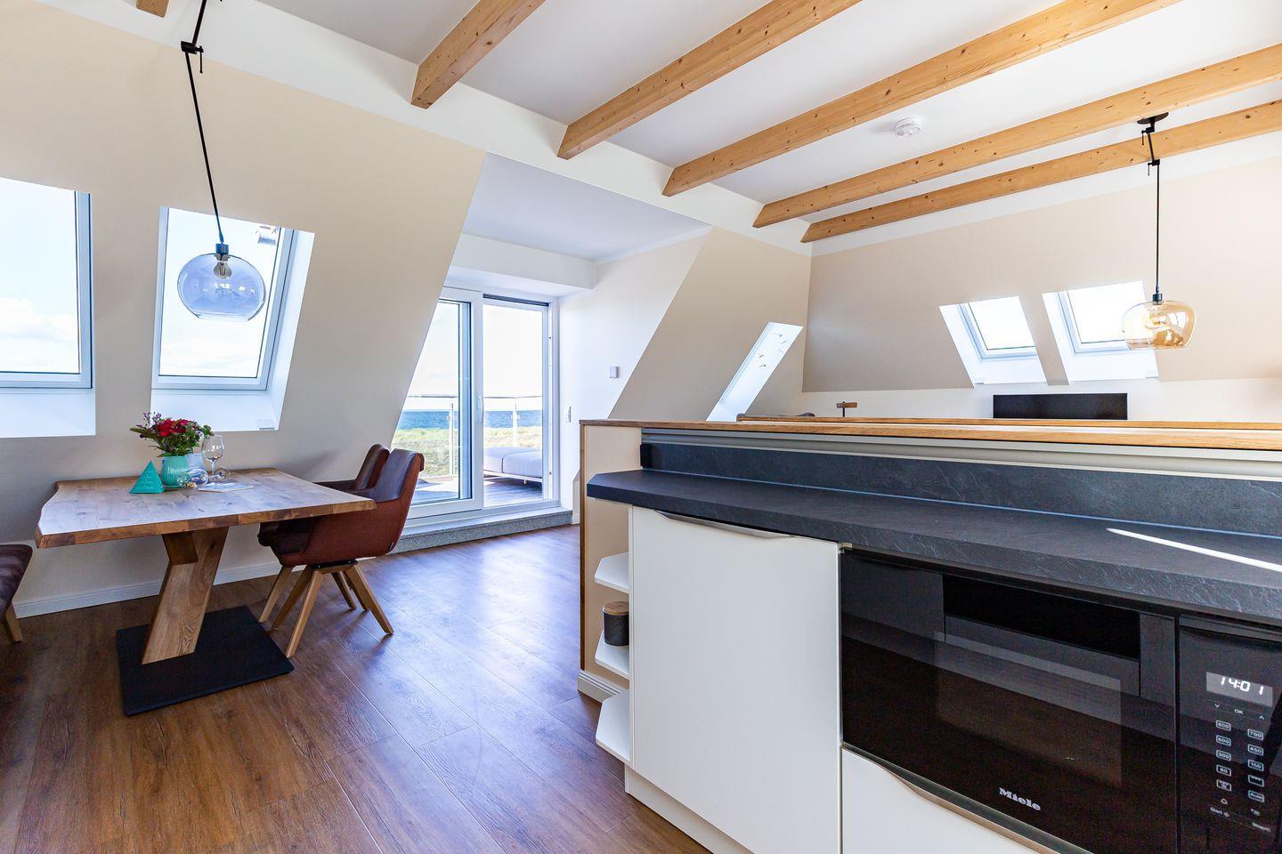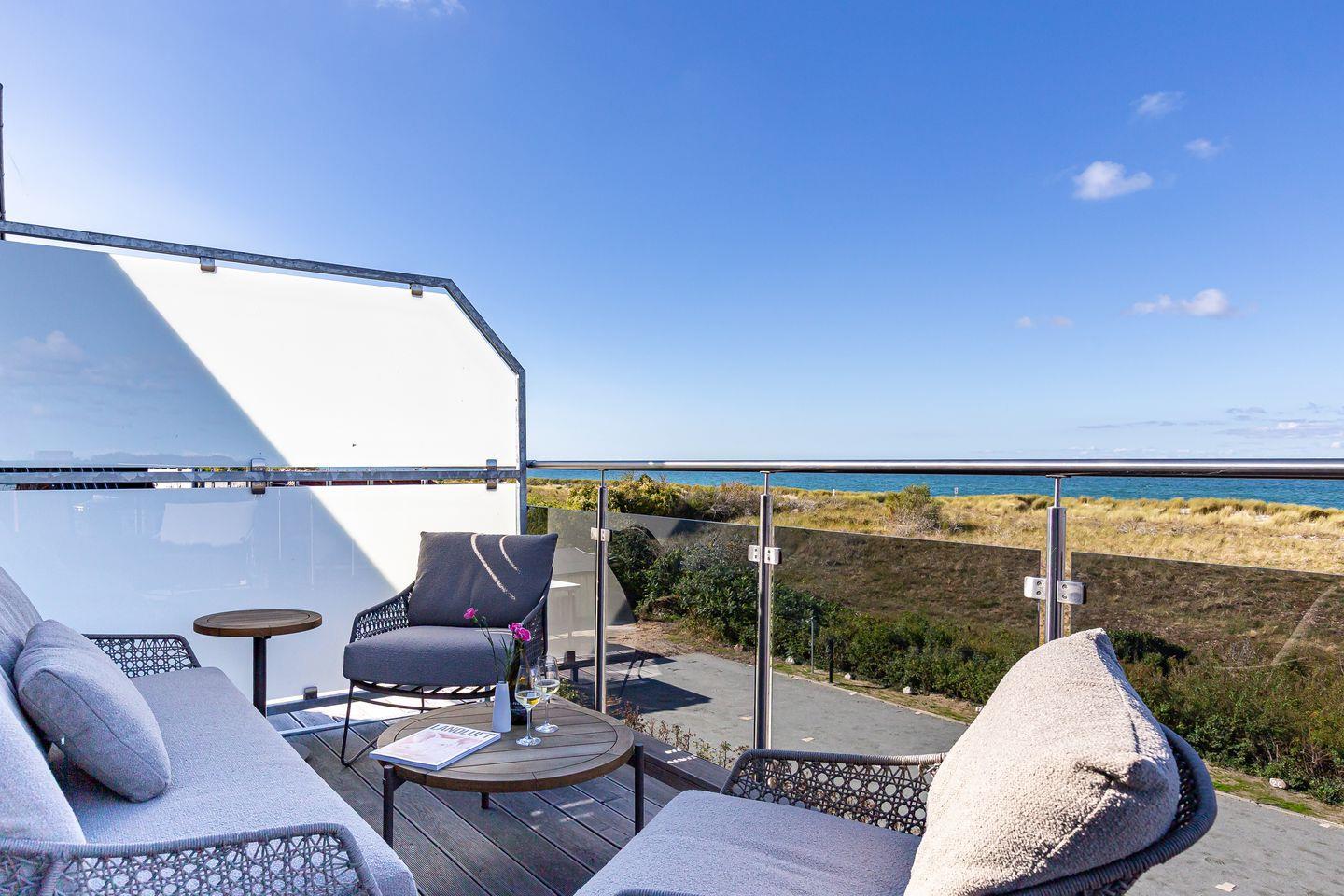 Willkommen in Deiner neuen Wohlfühloase mitten im Herzen von Ahrenshoop. Diese wunderschöne Ferienwohnung bietet Dir alles, was Du für einen entspannten und aktiven Urlaub an der Ostsee brauchst. Der offene Wohn- und Küchenbereich lädt zum gemeinsamen Kochen und Verweilen ein und öffnet sich direkt zum Balkon. Von hier kannst Du einen traumhaften Blick auf das Meer genießen. Zwei stilvolle Bäder sorgen für Komfort: Das Hauptbad mit eigener Sauna und ein Bad en suite – perfekt, um nach einem Tag an der frischen Luft zu entspannen.
