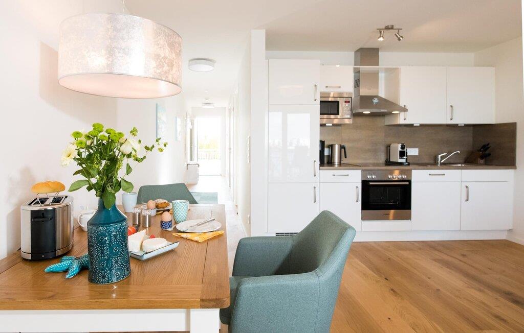 Det omfattende udstyret åbne køkken med WMF elektriske apparater lader intet tilbage at ønske. Her kan man fremtrylle lækre feriemåltider. Altanen indbyder til afslapning med foldbare afslapningsstole eller til at grille med Weber-grillen.