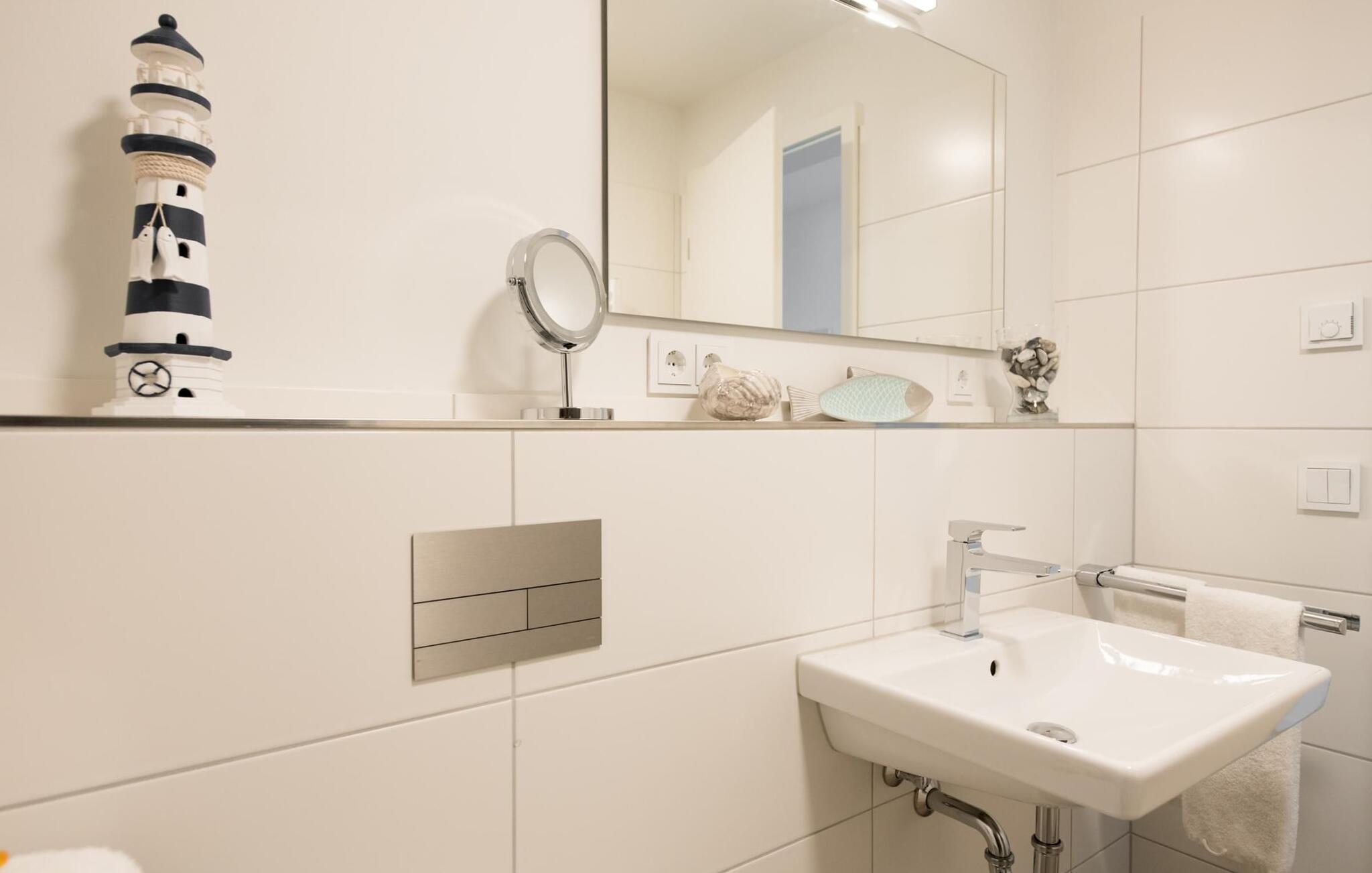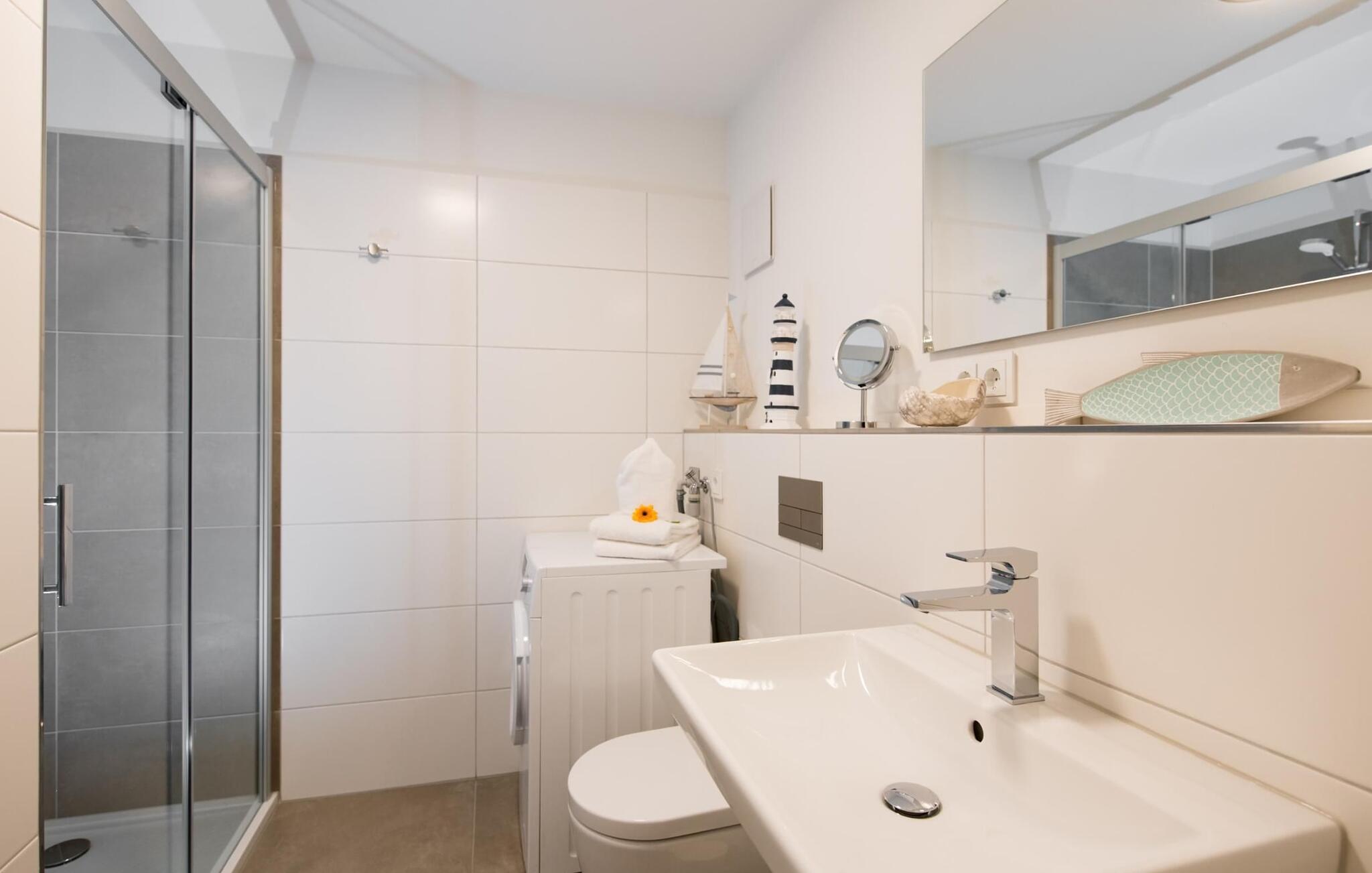 Denne ferielejlighed, der er designet til at være fri for barrierer, kan nemt nås med elevator og har brusebad i gulvniveau.