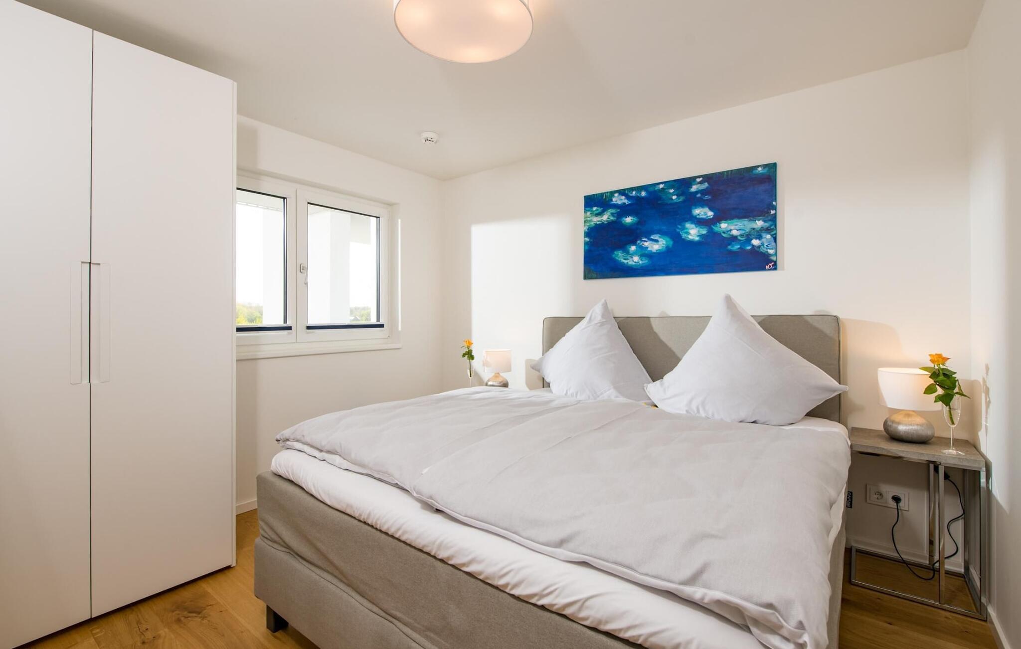 Det hyggelige soveværelse, udstyret med en dobbeltseng med boxspring og et ekstra fladskærms-tv, giver mulighed for en afslappende søvn. Endnu en seng i fuld størrelse (soveareal: 160 x 200 cm) er tilgængelig på den komfortable boxspringsofa i stuen.