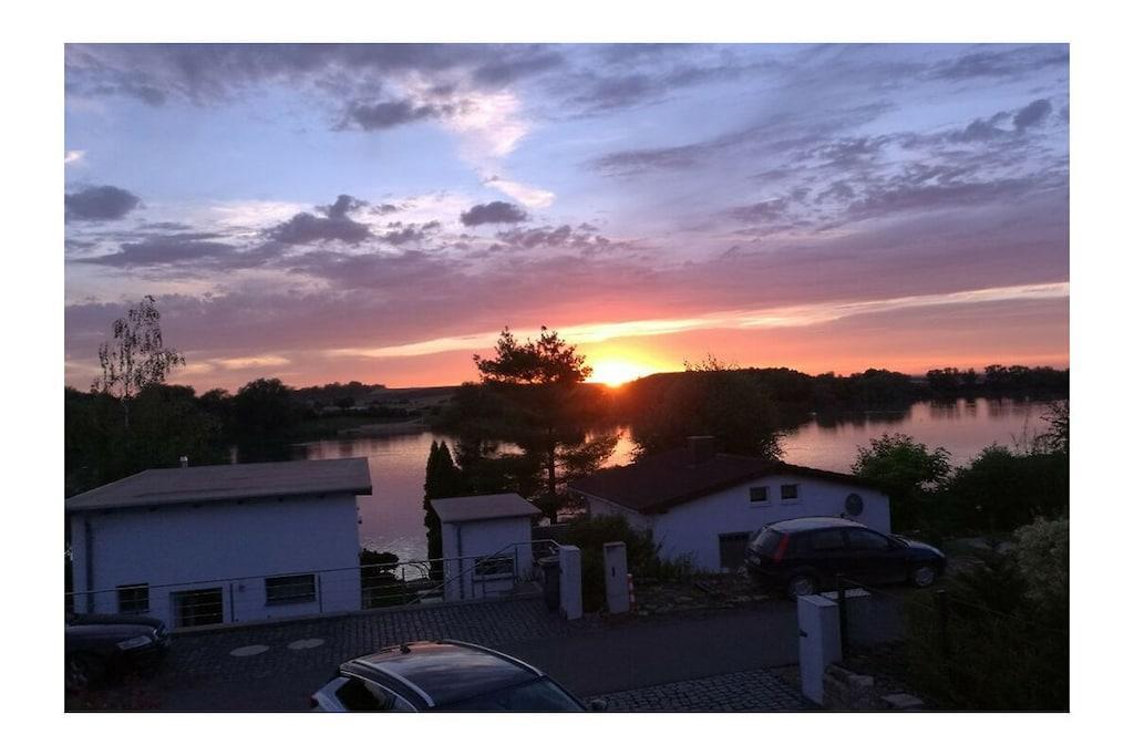 Das modern und gemütlich eingerichtete Ferienhaus , unweit von der Landeshauptstadt Erfurt, bietet Ihnen mit seiner hellen und mit Liebe zum Detail leingerichteten Ausstattung einen ruhigen und erholsamen Aufenthalt mit Blick über den Alperstedter See. Der Wohnbereich mit offener Küche ist voll und hochwertig ausgestattet und an einer Kücheninsel finden 4 Personen Platz um gemeinsam zu speisen . Die große Eckcouch im Wohnzimmer hat auch einiges an Platz zu bieten ,egal ob beim Fernsehen, kleinem Umtrunk oder auch beim Spieleabend. Die beiden Schlafzimmer in der 1. Etage sind mit einem Doppel-Boxspringbett ausgestattet und haben mit ihren durchgehenden Balkon einen wunderbaren Blick über den See. Das Badezimmer befindet sich im EG und wurde mit einer Badewanne sowie einem Waschtisch ausgestattet. Auch wenn man mal keinerlei Lust auf das Kochen verspürt, haben Sie die Möglichkeit, in einer der beiden Gaststätten - "Strandgut 21 " und " Treff am See " - vor Ort zu speisen. Im" Strandgut 21 " ist eine Reservierung zum Frühstück möglich. Vom gegenüberliegenden Strand vom "ThürKies See -Camping kann man in den lauen Sommernächten wunderschöne Life -Musik über den See hallen hören und es sich unten an unserem kleinen Strand mit einem Glas Wein gemütlich machen und den Abend ausklingen lassen . Leider sind Partys in dieser Unterkunft nicht gestattet.