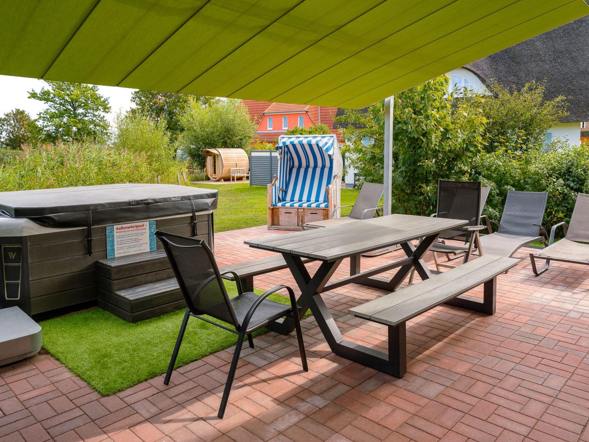This house has a table with 10 seats, which is protected from the sun by an awning. There are also two sun loungers, a whirlpool and a beach chair on the property. The covered outdoor pool (use from April to early November), which is located in the immediate vicinity, can be used by all guests, the same applies to the sauna. An adventure playground (fenced in) and a large ball playground offer children from 2 to 80 plenty of opportunities to let off steam.