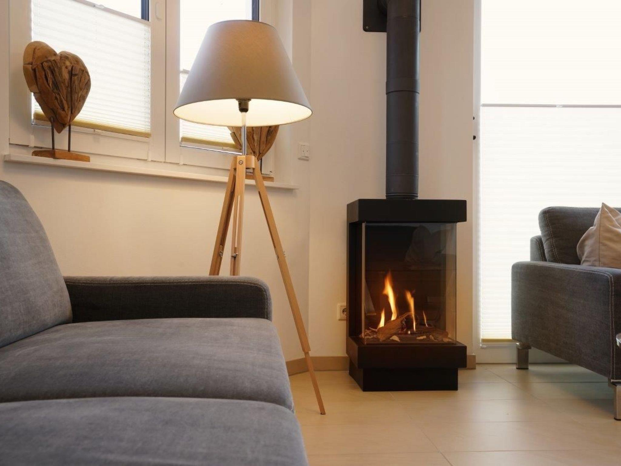 The fireplace creates a cosy atmosphere and is also a visual highlight.