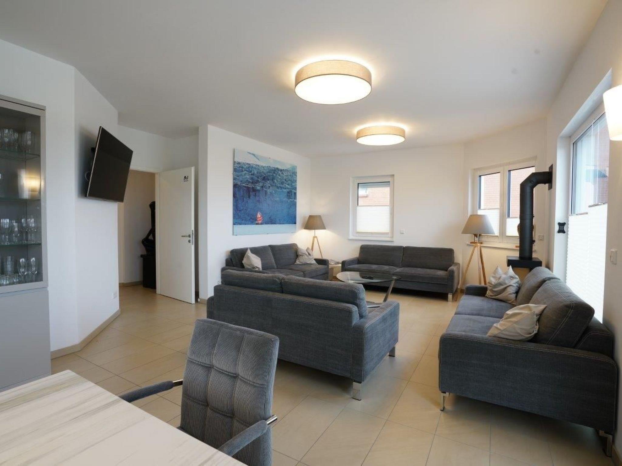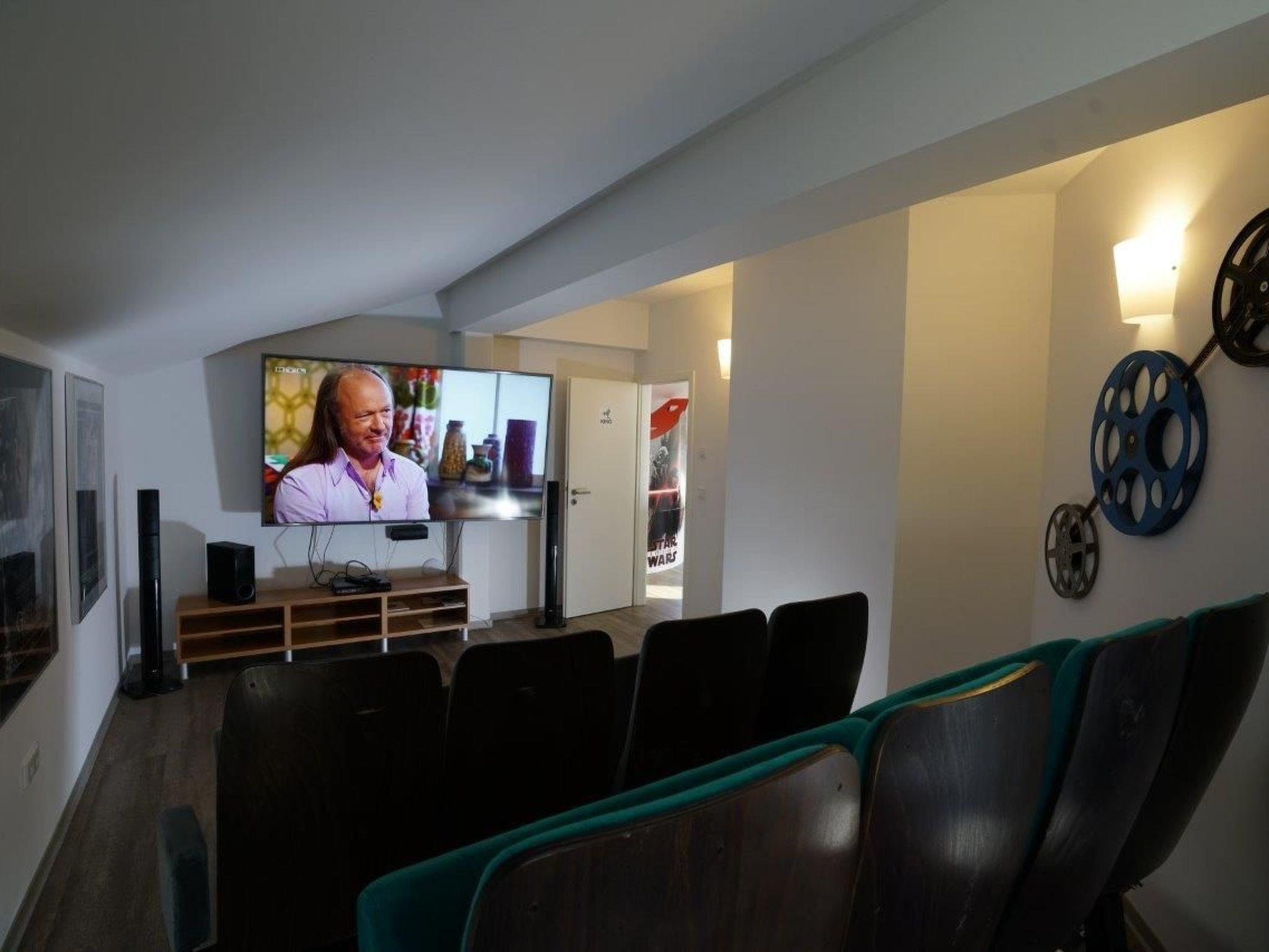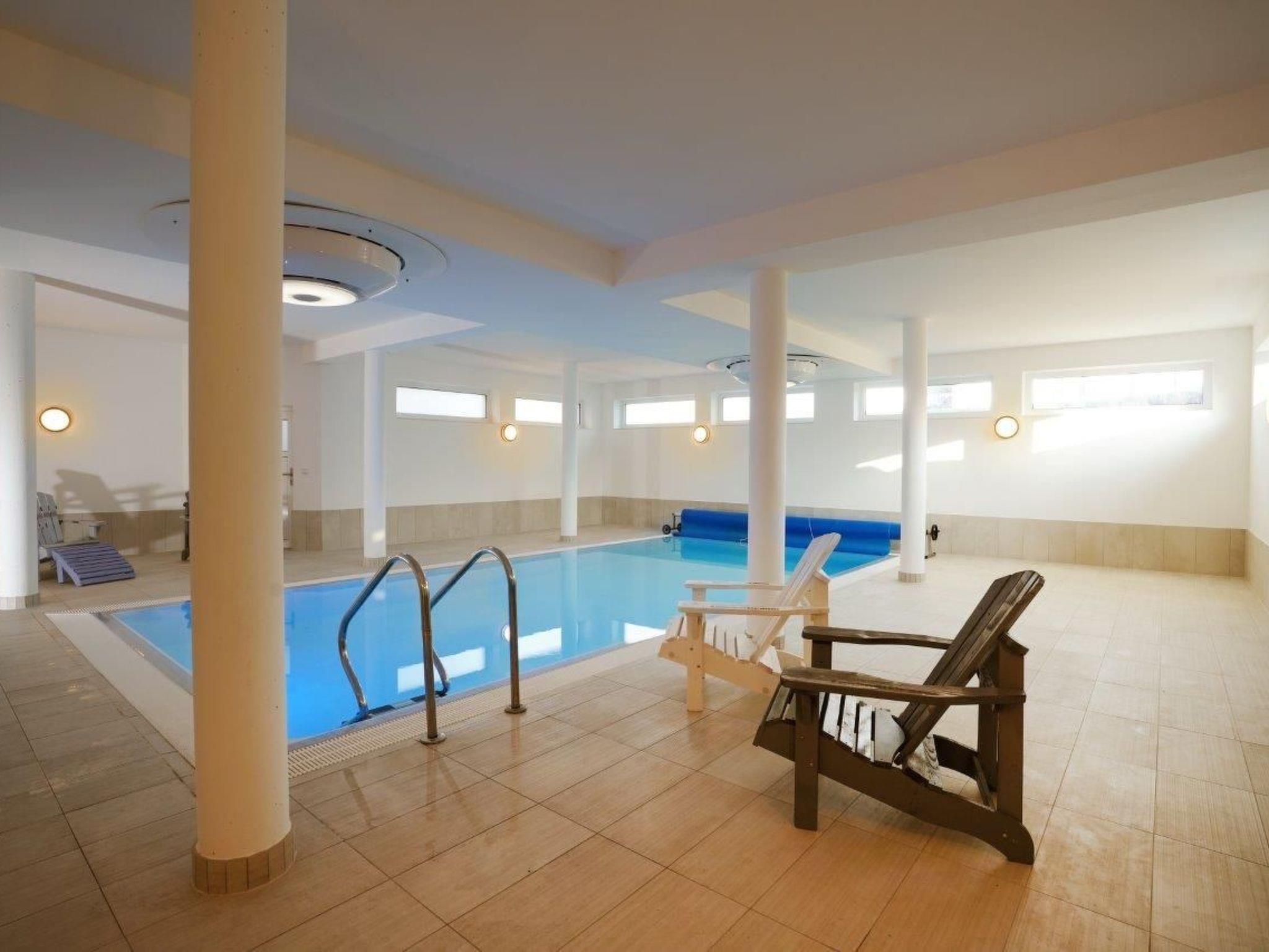 House with indoor swimming pool, 6 bedrooms, each has a shower room, 2 on the ground floor - therefore well usable for older guests and wheelchair users Baltic Sea view, fireplace, sauna, cot and travel cot, bedrooms all with TV, kitchen with everything you need, large dining table inside and also on the terrace charcoal grill, sun loungers and awning, beach chair, playground for toddlers, cinema in the attic with cinema seats and large screen and sound system, chess etc. in the attic, 7th additional bedroom in the attic for an extra charge,