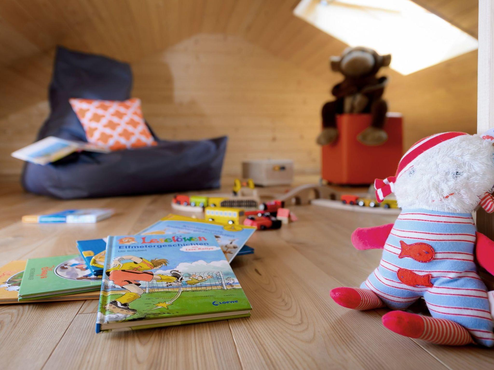 The outdoor area of each house is characterised by alcove-like, covered wooden terraces that invite you to socialise on long summer evenings. For children, a secure play area inside the house fulfils all dreams. Each holiday home also has a private parking space and a barbecue, perfect for cosy evenings. The communal experience is rounded off by a spacious sauna, which can be used by all guests of the holiday complex. Here you can sign up for private wellness times and enjoy the cold season to the full.