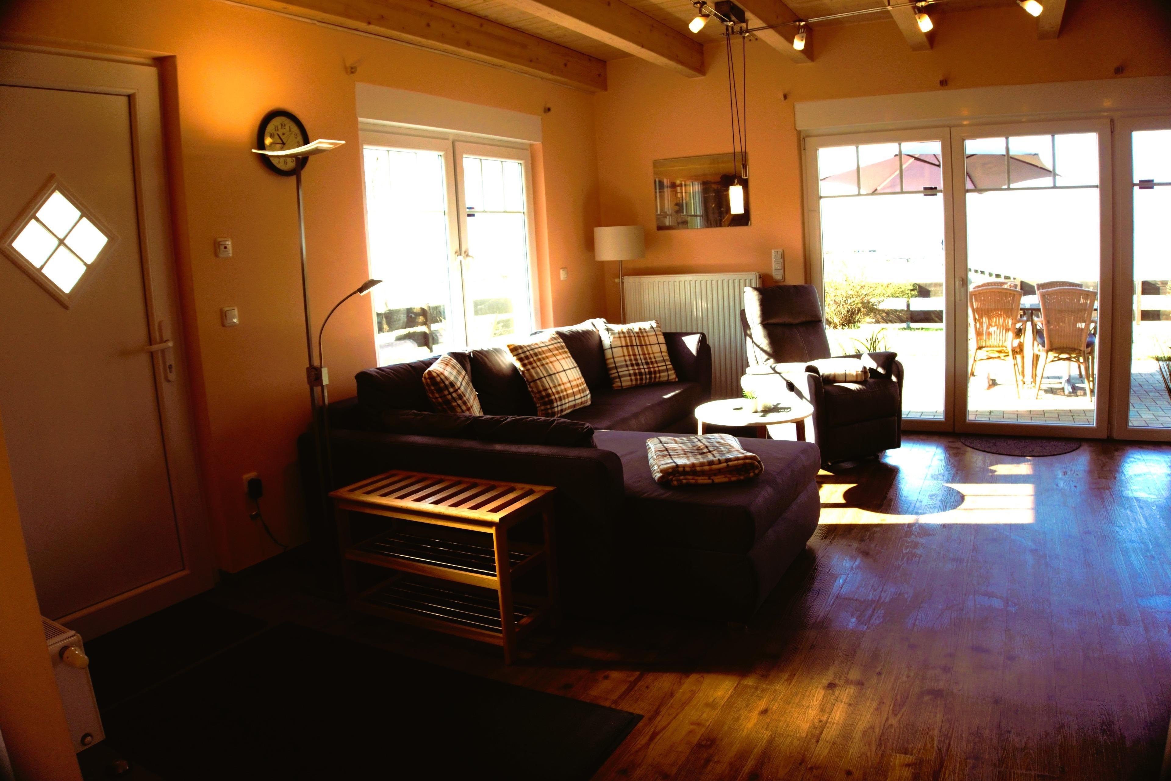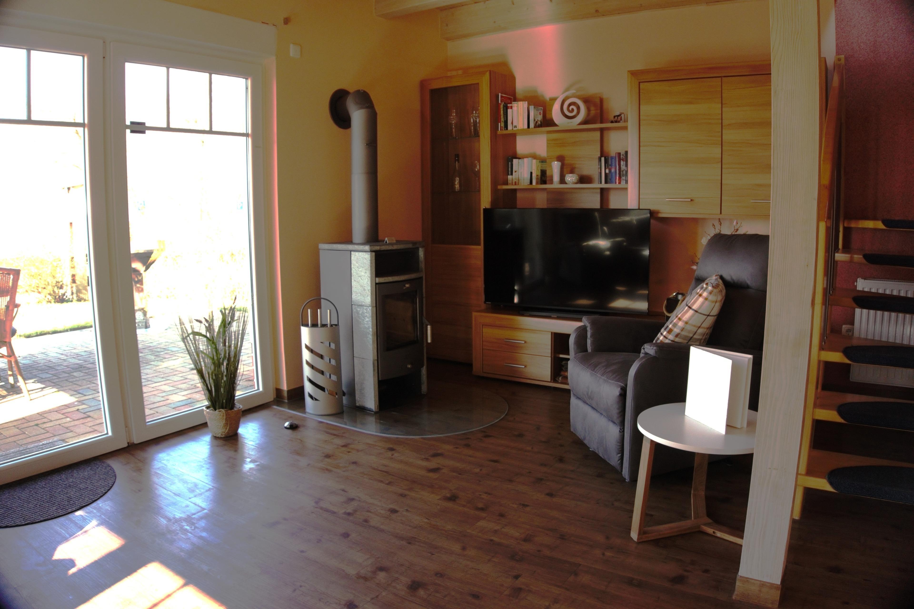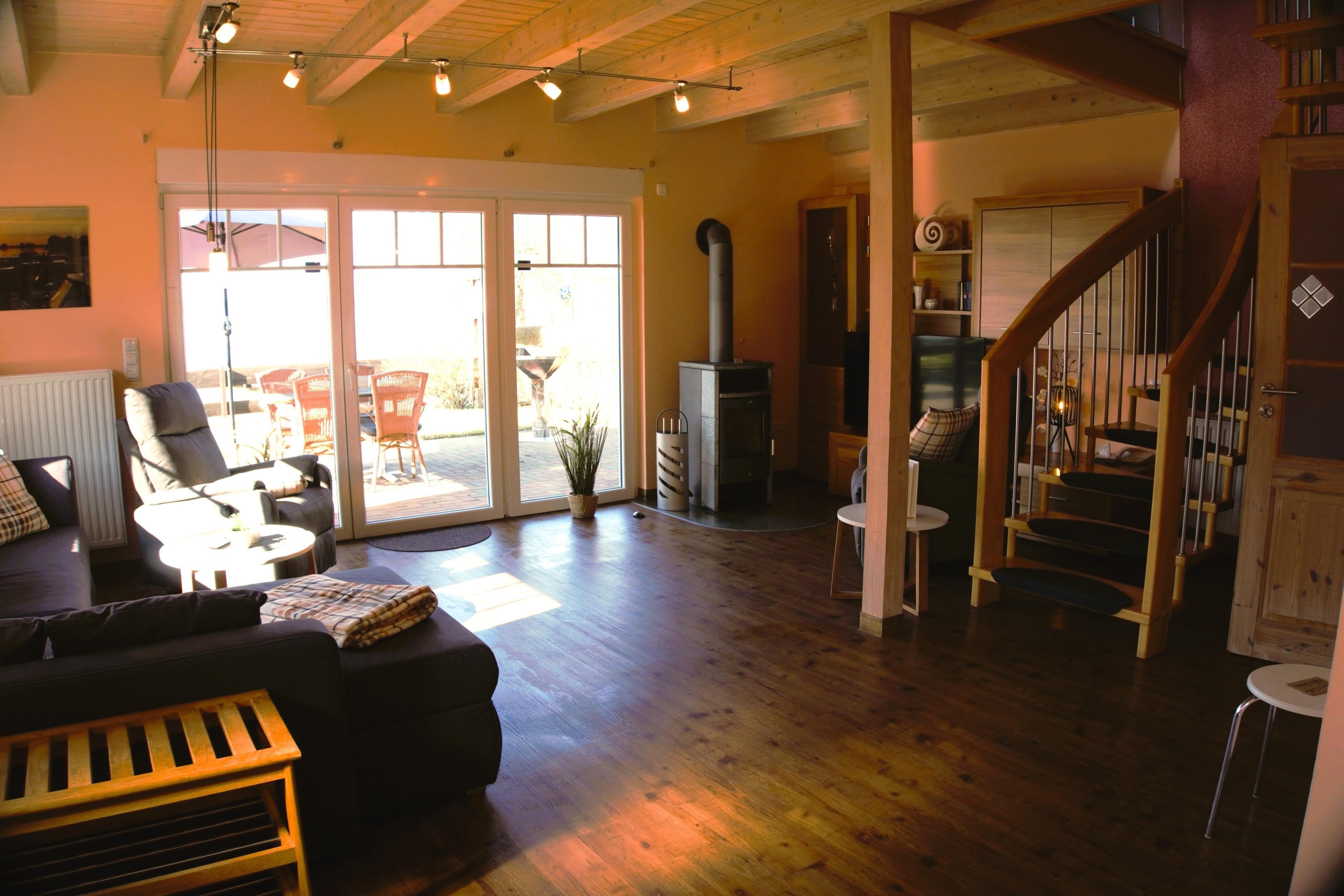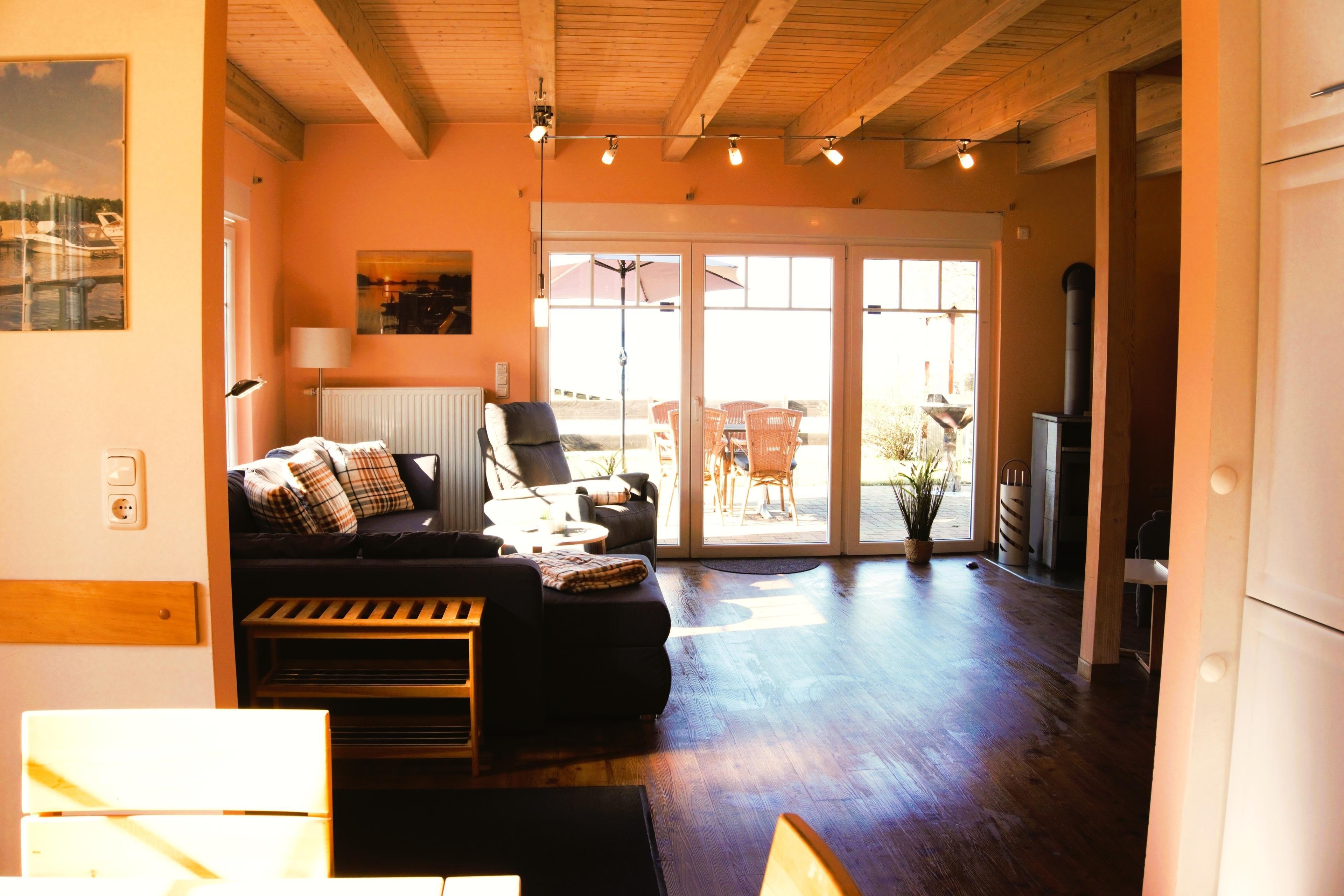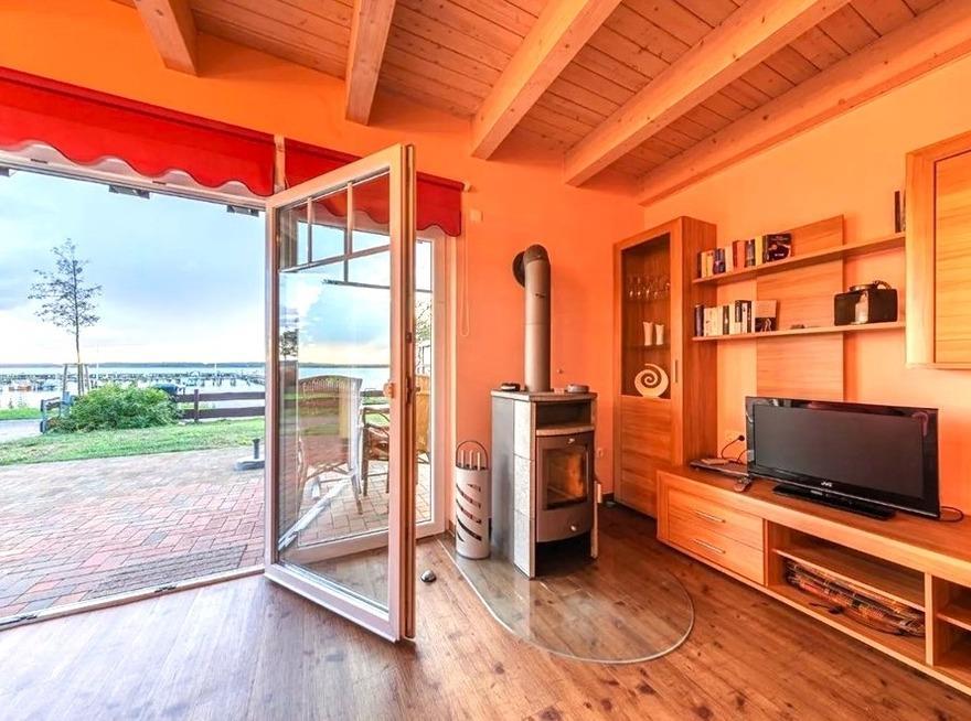 Das Haus bietet Platz für 4 (per Schlafcouch sogar 6) Personen auf etwa 80 Quadratmetern Wohnfläche. Auf dem ca. 400 qm großen Grundstück genießen Sie nach einem ereignisreichen Tag von der großen Terrasse aus den freien Blick zum See, erleben traumhafte Sonnenuntergänge, können Grillen oder gesellige Spieleabende verbringen. Es sind genügend Stellflächen für PKW und Bootsanhänger vorhanden. Verbringen Sie hier eine herrliche Auszeit, ob im Garten, vor dem knisternden Kamin im Wohnzimmer, auf dem überdachten Balkon, am Strand oder auf dem Wasser.