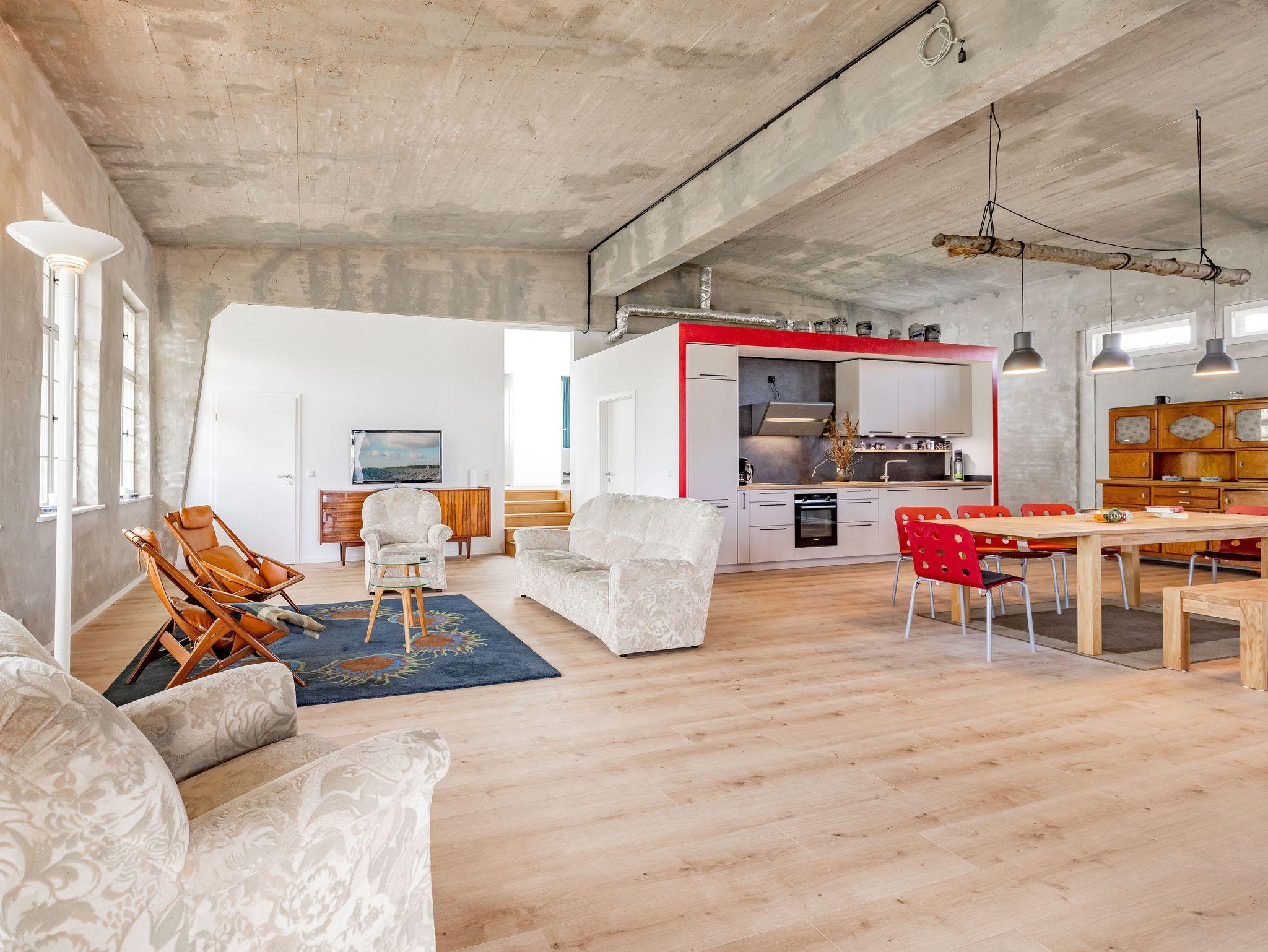 Das alleinstehende Gebäude versprüht durch seine direkte Lage und das erhaltene Industriedesign echte Eisenbahnromantik. Die ehemalige Verladerampe dient jetzt als große Terrasse direkt vor dem Gebäude. Die großen gepflasterten Freiflächen vor dem Gebäude ermöglichen auch die Anreise mit größeren Fahrzeugen oder Anhängern. Das Gebäude liegt am Ostseeküstenradweg und ist trotz seiner vermeintlich abgeschiedenen Lage sehr zentral positioniert. Die Anbindung an Nahverkehr ist über Bus und Bahn gegeben und zu Fuß zu erreichen.