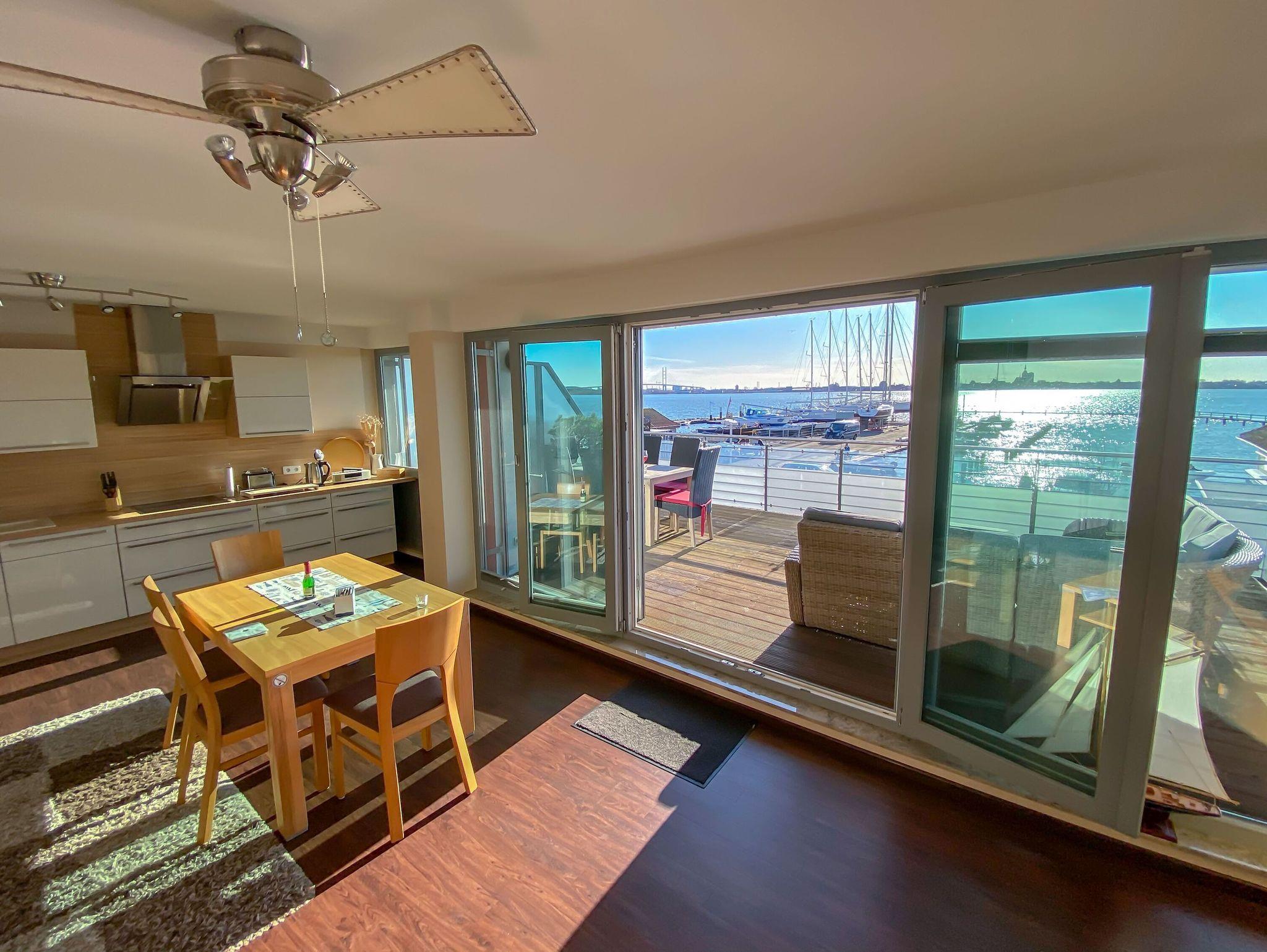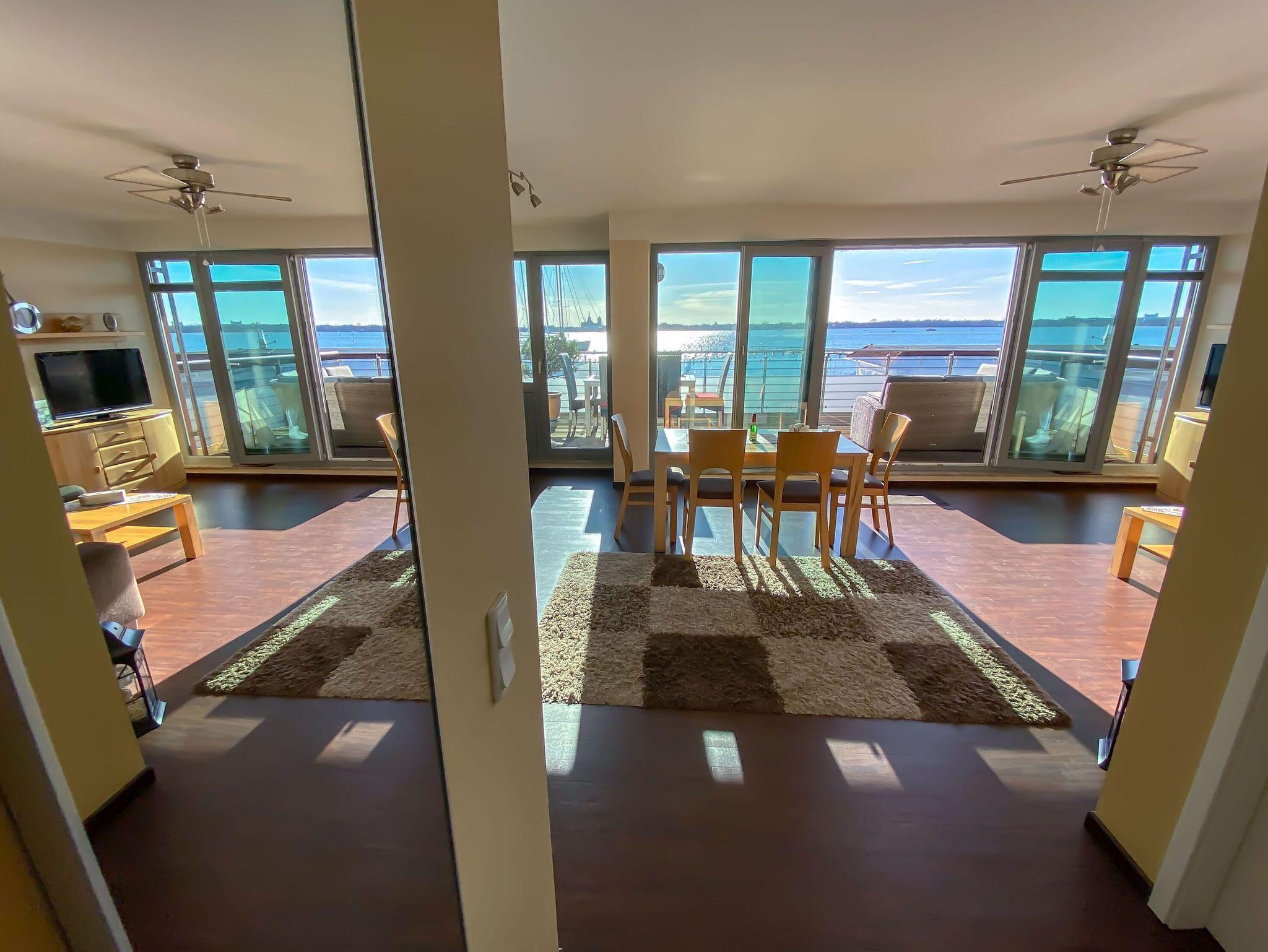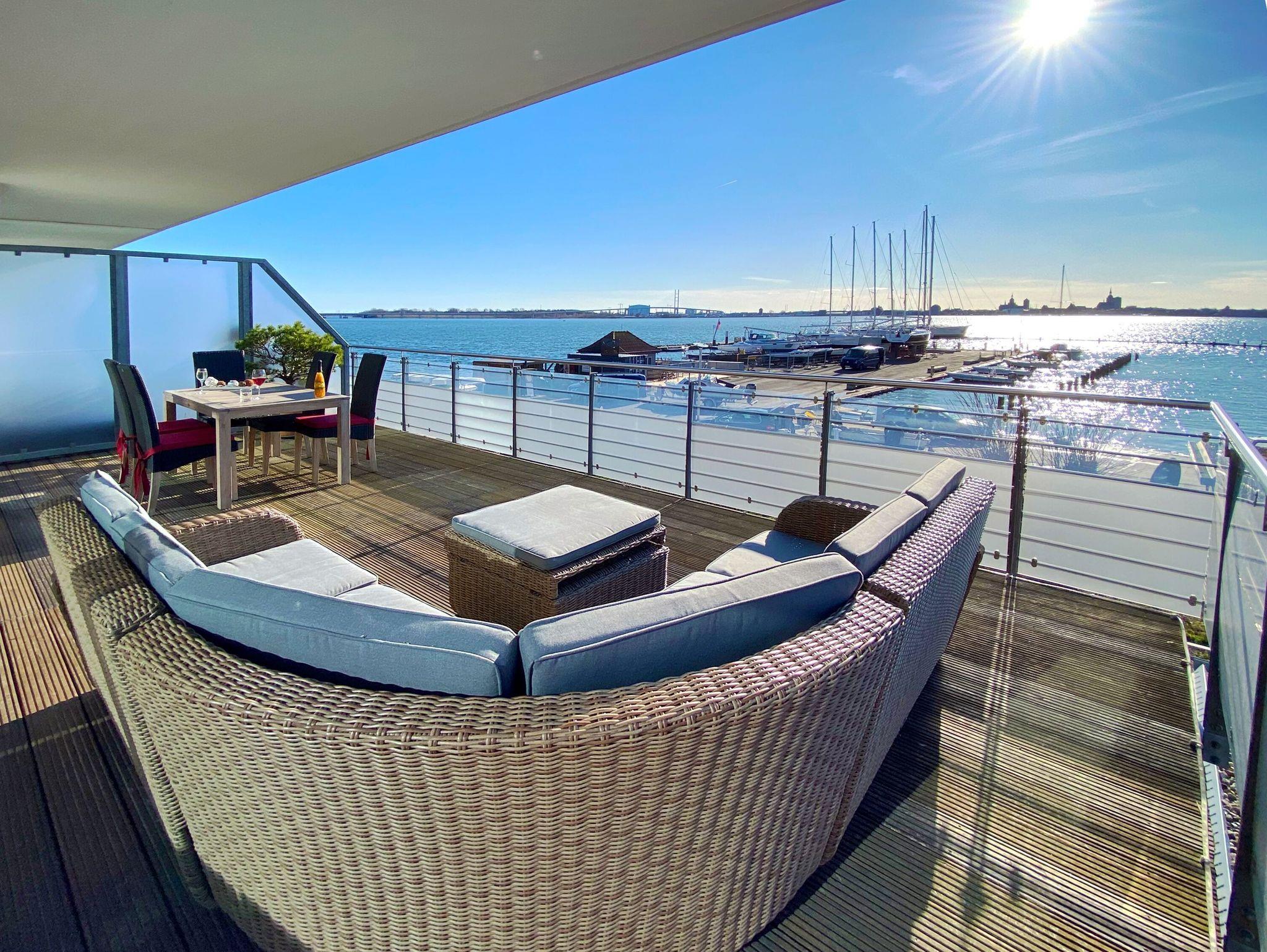 Wow. Wenn Sie sich schon immer einen fantastischen Ausblick und jede Menge Urlaubskomfort gewünscht haben, dann sind Sie in der Fewo Anja goldrichtig. Das gut 75 m² große 2-Raum-Appartement im 1. Obergeschoss ist bequem mit dem Aufzug zu erreichen und begeistert mit seinem einzigartigen Blick von dem ca. 30 m² großen Balkon in Südlage. Ausgestattet mit bequemen Terrassen- und edlen Lounge-Möbeln, bietet sich Ihnen hier ein spektakulärer Panoramablick auf die zum UNESCO-Weltkulturerbe zählende Hansestadt Stralsund, den Strelasund sowie auf den kleinen Yachthafen mit Bootsvermietung. Genießen Sie von hier aus den längsten Sonnenuntergang.