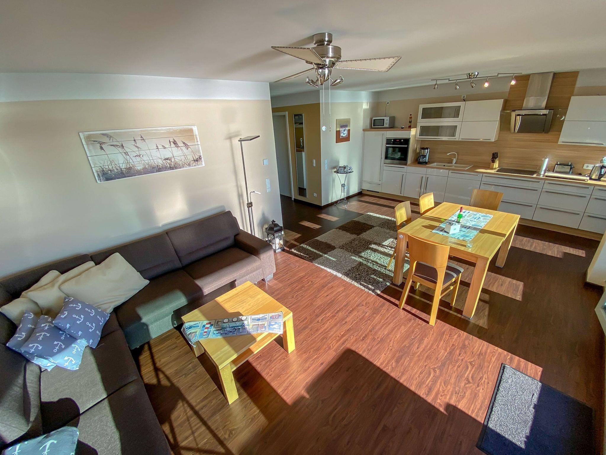 Der moderne Wohn-/Essbereich ist ca. 32 m² groß und mit einen Bose-Wave-System und einen gemütlichen Schlafsofa ausgestattet. Ein Flachbild-TV und CD-Player sorgen für Unterhaltung und Entertainment. Dank des Deckenventilators genießen Sie auch an wärmeren Tagen eine angenehme Frische.
