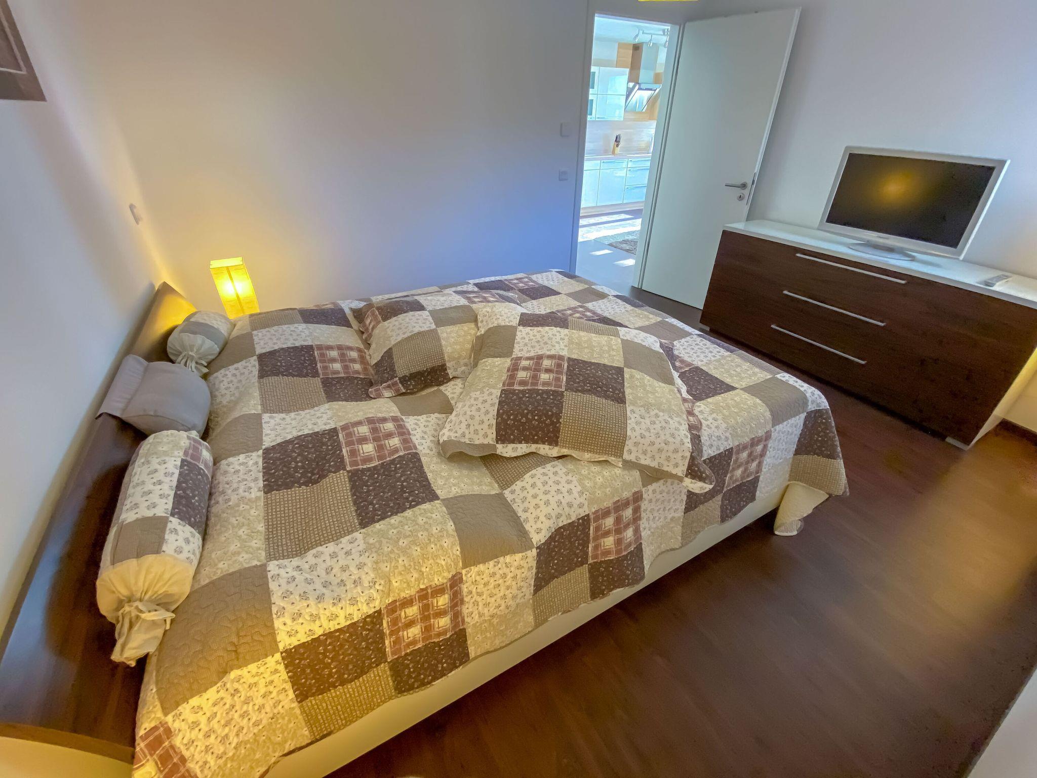 Das Schlafzimmer ist mit einem großen Doppelbett, einem Flachbild-TV und ausreichend Platz für Ihre Garderobe ausgestattet. Im Badezimmer Ihres Urlaubsdomizils finden Sie sowohl eine Dusche als auch eine Badewanne, dazu WC, Waschtisch und einen Haartrockner. Ein separates GästeWC ist ebenfalls vorhanden.