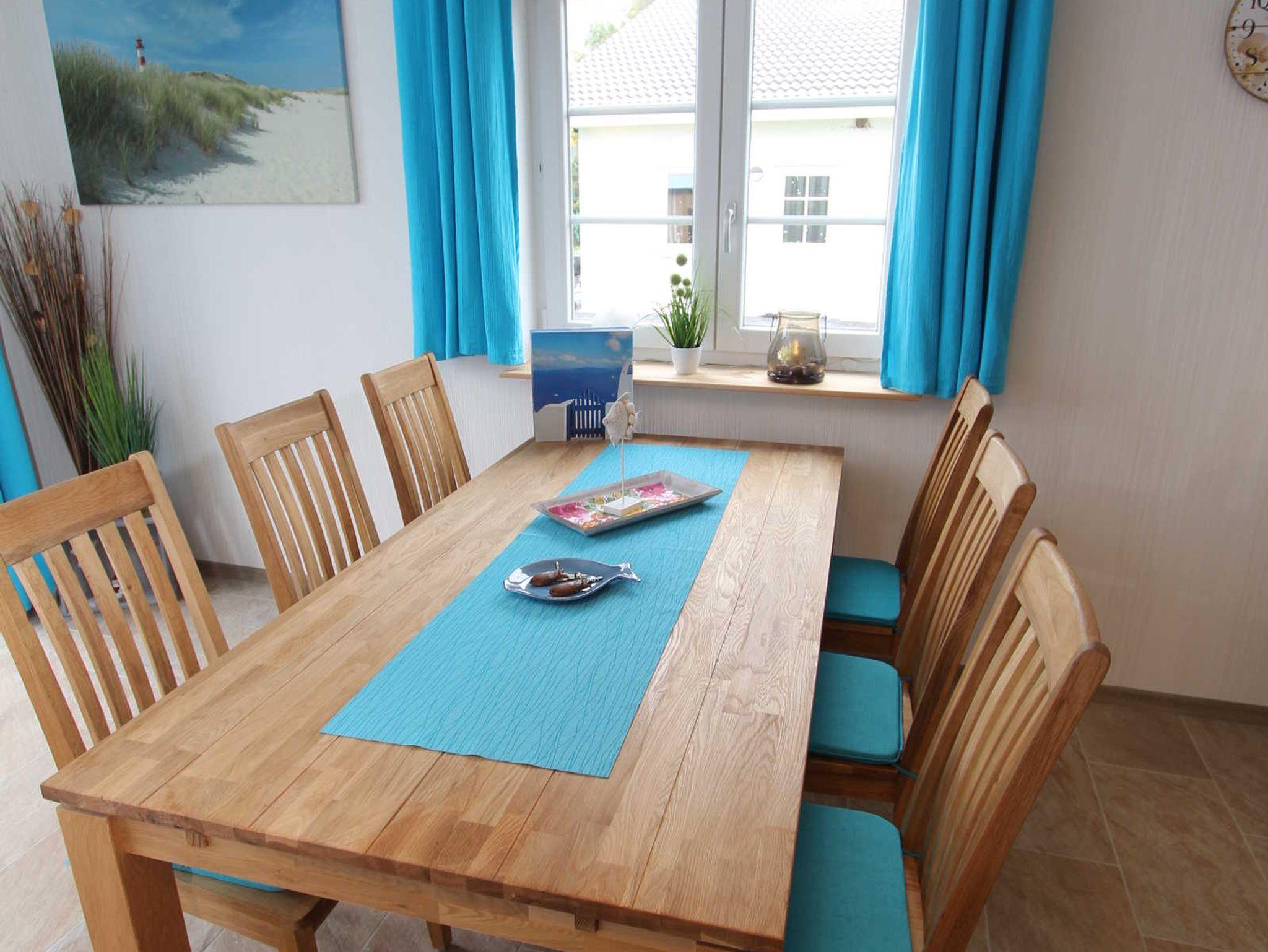 Die 82 m² Doppelhaushälfte befindet sich am Ortsrand des Seebades Altefähr auf der Ostseeinsel Rügen. In nur 350 m Entfernung finden Sie den Strand und den Hafen mit Restaurants. Das Wohnzimmer mit Terrasseszugang ist mit einer Couch, Sesseln, TV und einen Essbereich für 6 Personen ausgestattet. Im Wohnbereich befindet sich außerdem ein vollausgestatteter Küchenbereich mit Kühl- und Gefrierschrank, Backofen, Herd mit Ceranfeld, Mikrowelle, Kaffeemaschine, Wasserkocher und einer Geschirrspülmaschine. In der Doppelhaushälfte gibt es drei separate Schlafzimmer. Eines ist mit einem Doppelbett (180x200; getrennte Matratzen), einer Sitzgelegenheit, TV, Kleiderschrank, Nachtschränken und einem Herrendiener ausgestattet. Die beiden anderen Schlafzimmer verfügen jeweils über zwei zusammenstellbare Einzelbetten (100x200; 90x200), Kleiderschrank, Nachtschränke und Herrendiener. Das Badezimmer im Erdgeschoss ist mit einer 1,20 m großen Dusche, Föhn und Waschmaschine ausgestattet. Im Obergeschoss befindet sich ein zweites Badezimmer, welches ebenfalls über eine Dusche verfügt. Auf der angeschlossenen Terrasse mit Grillmöglichkeit kann der Abend ruhig und entspannt ausklingen.