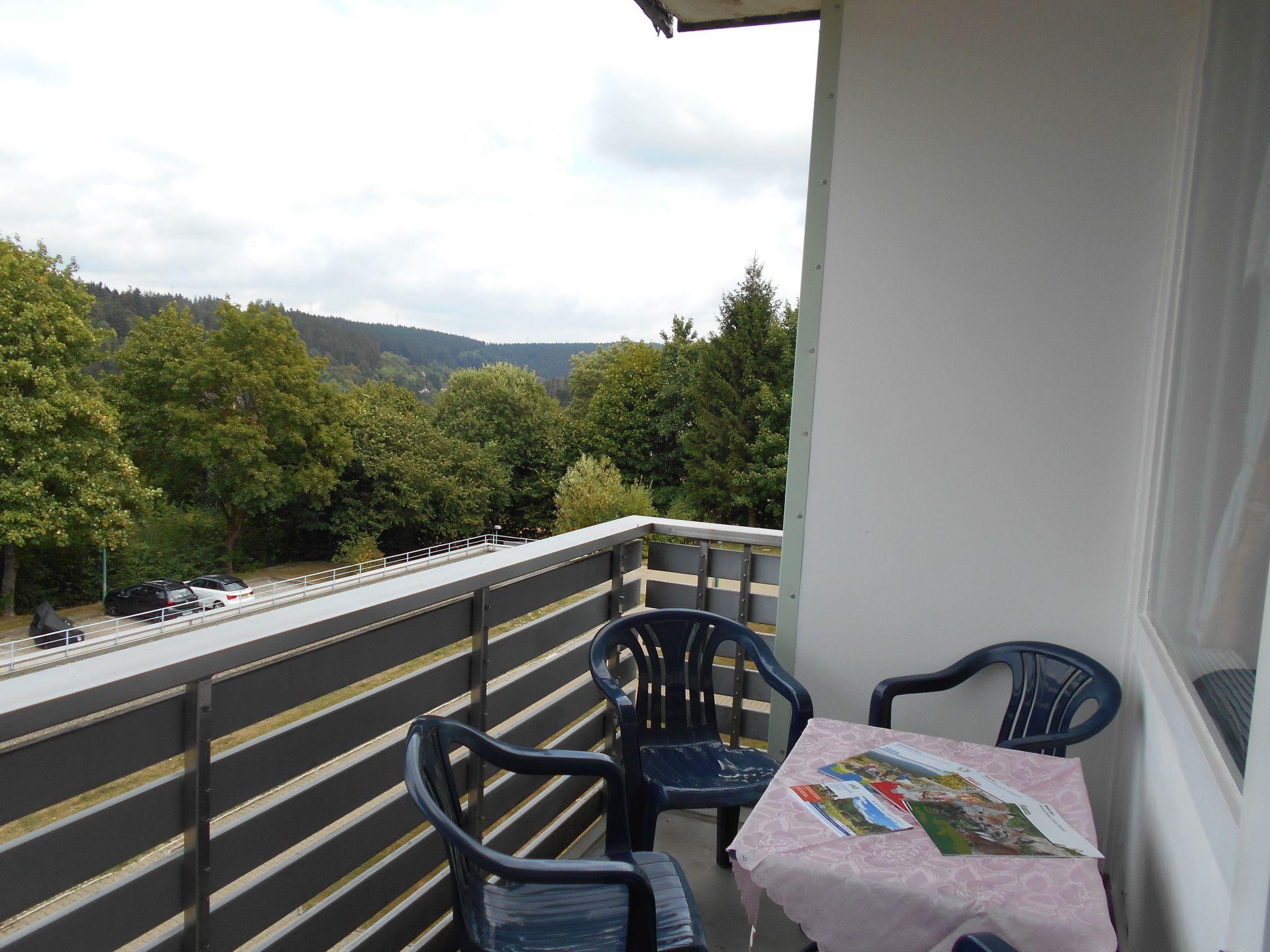 The outside area of the holiday flat is characterised by an inviting balcony with chairs, from which you can enjoy a wonderful view of the Harz mountains. The flat is located on the first floor, and a garage is also available on request to make your stay as comfortable as possible.