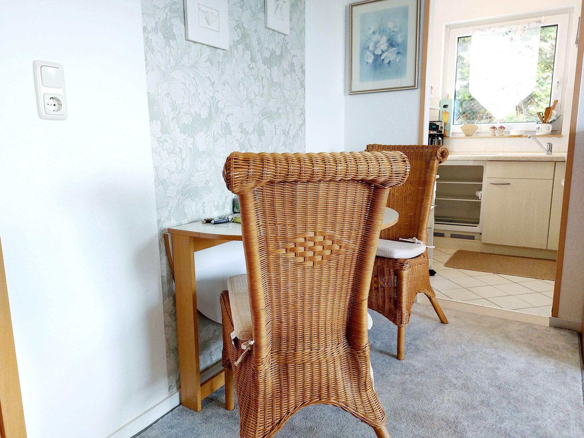 Diese gemütlich möblierte Ferienwohnung Hermelin mit 50 qm bietet Platz für max. 2 Personen. Die Ferienwohnung wurde vom DTV mit 3*** Sternen zertifiziert. Das Wohnzimmer ist mit einer gemütlichen Couch und einem Esstisch mit Stühlen ausgestattet. An den Wohnbereich schließt sich die offene Küche an. Die Küche ist ausgestattet mit einem Backofen, einem Kochfeld mit 4 Platten, einem Kühlschrank, Kaffeemaschine sowie Wasserkocher, Toaster und Geschirr sowie Küchenutensilien. Das Badezimmer ist mit DU/WC ausgestattet. Ein Fön steht ebenfalls zur Verfügung. Das separate Schlafzimmer hat ein bequemes 1,60 x 2,00 m breites Doppelbett. Ein Reisebett für Kinder ist ebenfalls vorhanden. Im Keller finden Sie einen Schlitten.