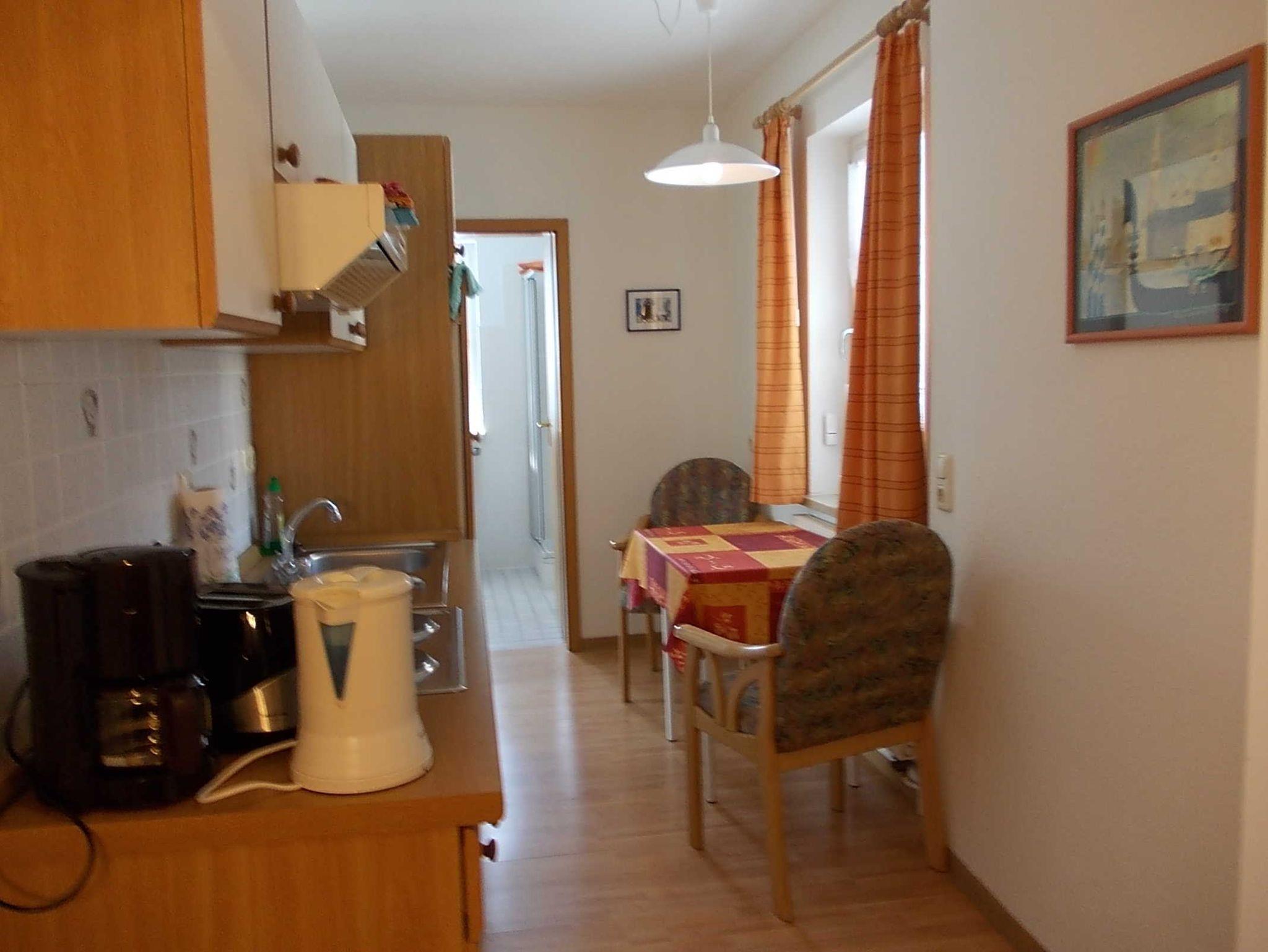 In der dazugehörigen Küche finden Sie Kühlschrank, E-Herd mit Backofen, Kaffeemaschine, Toaster, reichlich Geschirr und bei Bedarf ein Kinderhochstuhl.