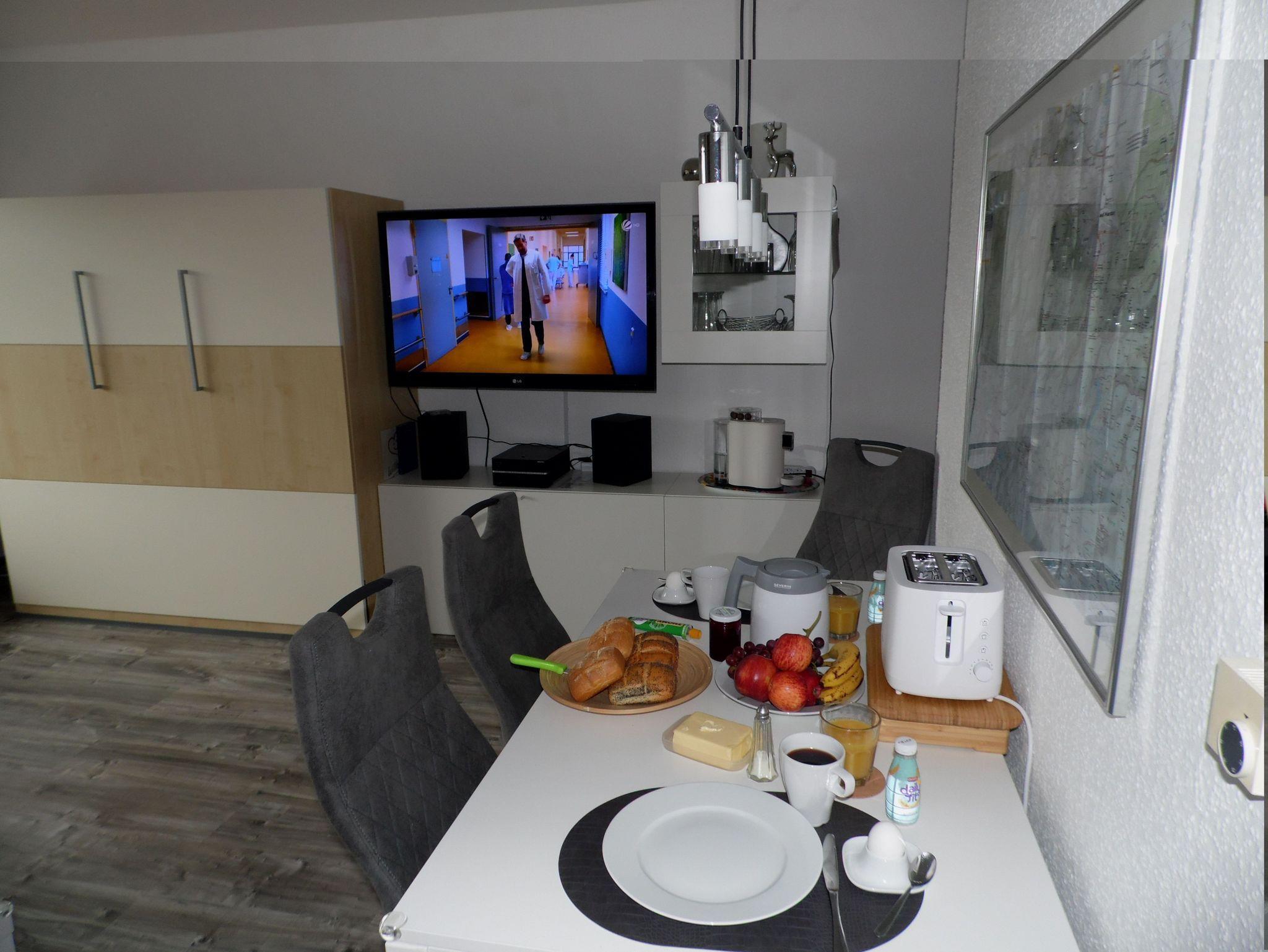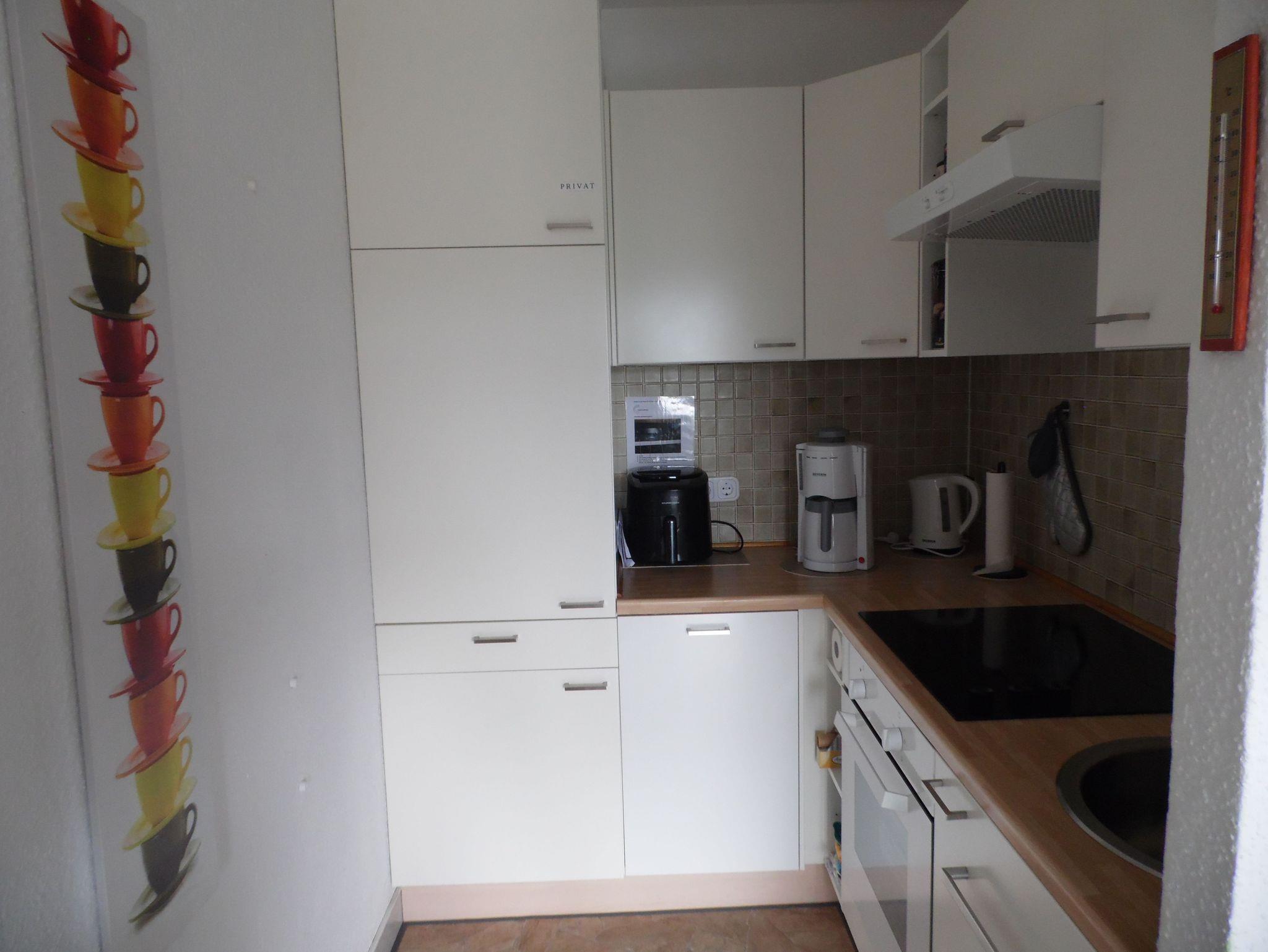 Gemütliche kleine Wohnung mit seperatem Schlafzimmer. Fussböden im Flur und Wohnzimmer neu. In der Küche alles was man braucht. Kühlschrank mit Gefrierfach, Ceranfeld, Backofen, Kaffeemaschine ,Wasserkocher,Eierkocher,Toaster,Heißluftfritteuse