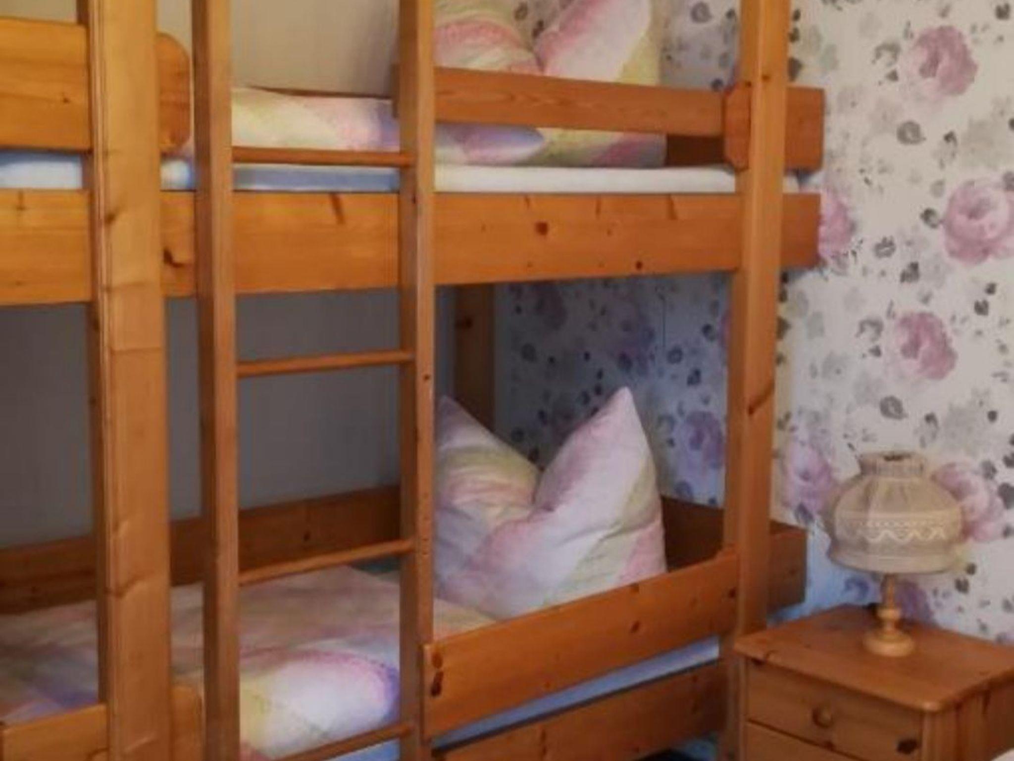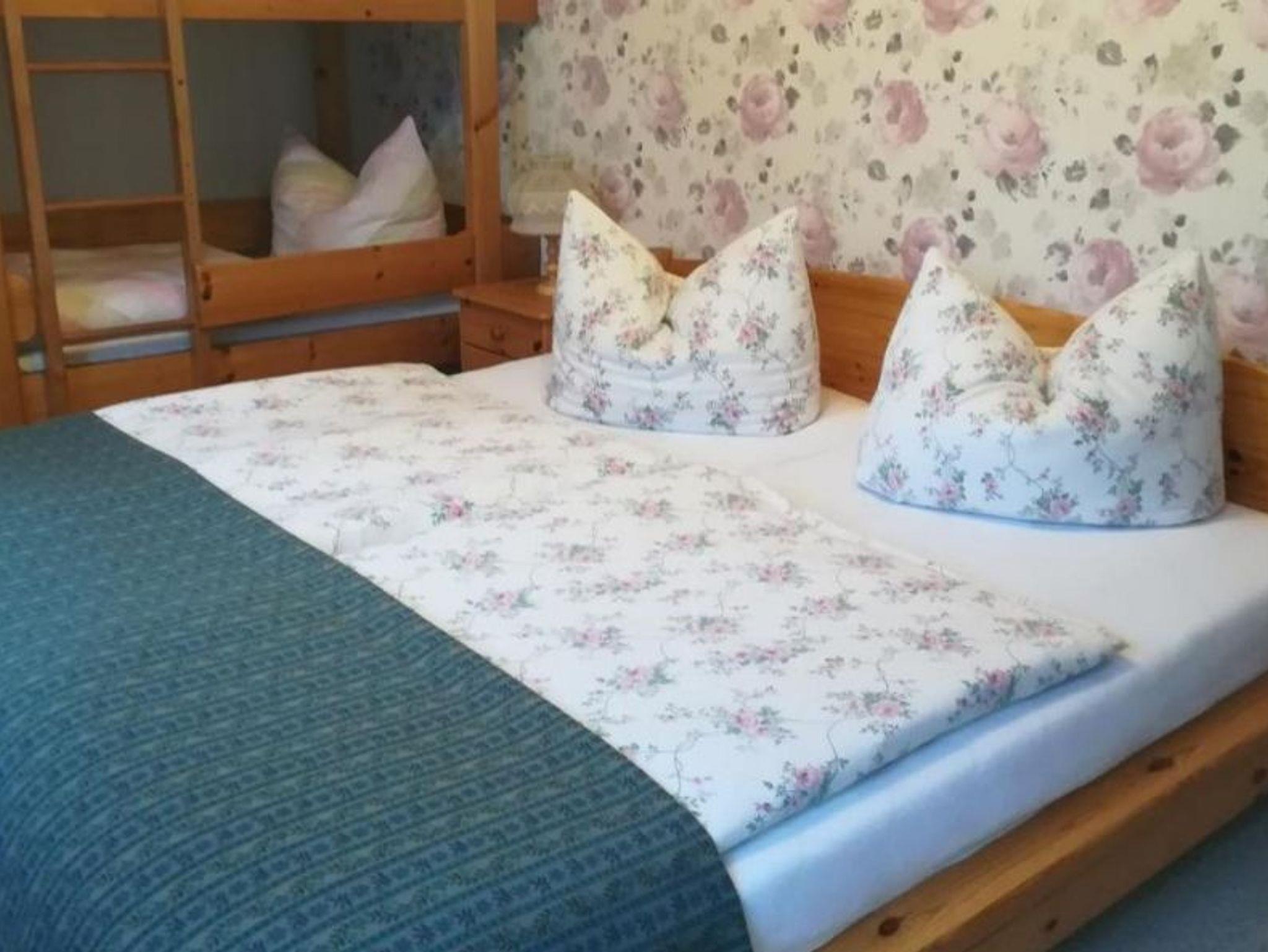 1 Schlafzimmer mit Doppelbett und Etagenbett