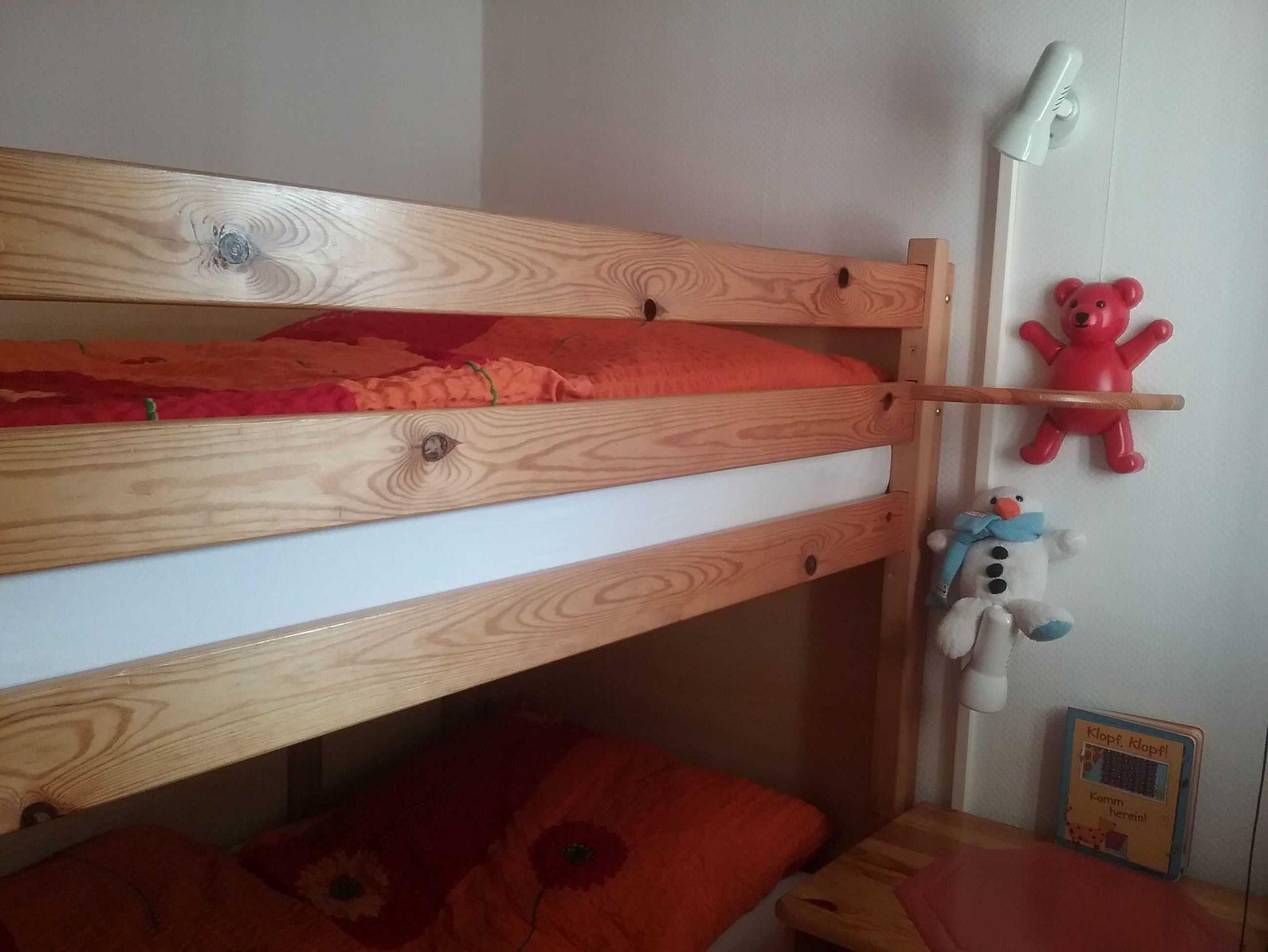Die 45 qm große 3-Sterne-Ferienwohnung Eva im Ferienpark Glockenberg in Altenau im Oberharz verfügt über einen kombinierten Wohn-Schlafraum mit Essecke und Doppelbett (mit Vorhang vom Wohnbereich abgetrennt), einer separaten Küche, einem Bad mit Dusche/WC, einem separaten Schlafzimmer mit Etagenbett sowie einem Balkon.