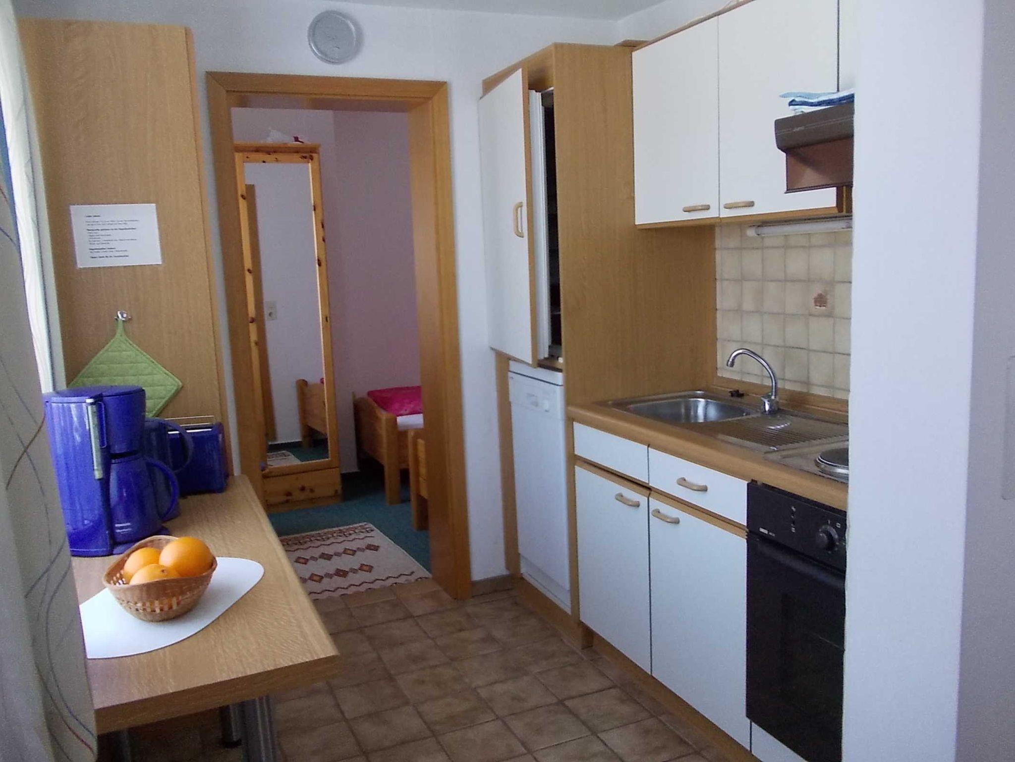 In der dazugehörigen Küche finden Sie Kühlschrank,Geschirrspüler, E-Herd mit Backofen, Kaffeemaschine, Toaster, reichlich Geschirr und bei Bedarf ein Kinderhochstuhl.