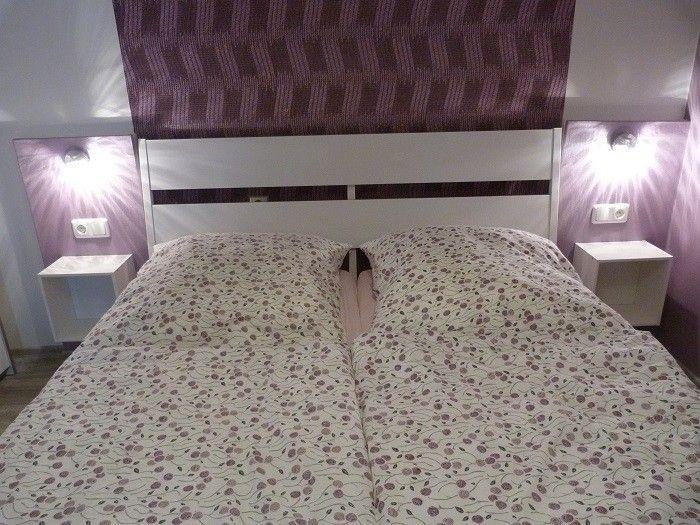 Der gemütliche Schlafbereich trennt sich durch einen blickdichten Vorhang vom Wohnbereich ab. Durch eine geschickte Änderung der Raumaufteilung ist es jetzt möglich das Doppelbett von drei Seiten zu begehen (ohne den Schlafbereich zu verlassen). Dies stellt im Ferienpark eine absolute Rarität dar. Ebenso finden Sie im Schlafbereich einen geräumigen Schrank, in dem Sie Ihre Urlaubskleidung unterbringen können. Ein weiterer HD-Flachbildfernseher ermöglicht es Ihnen, auch vom Bett aus Ihr Fernsehprogramm zu verfolgen.