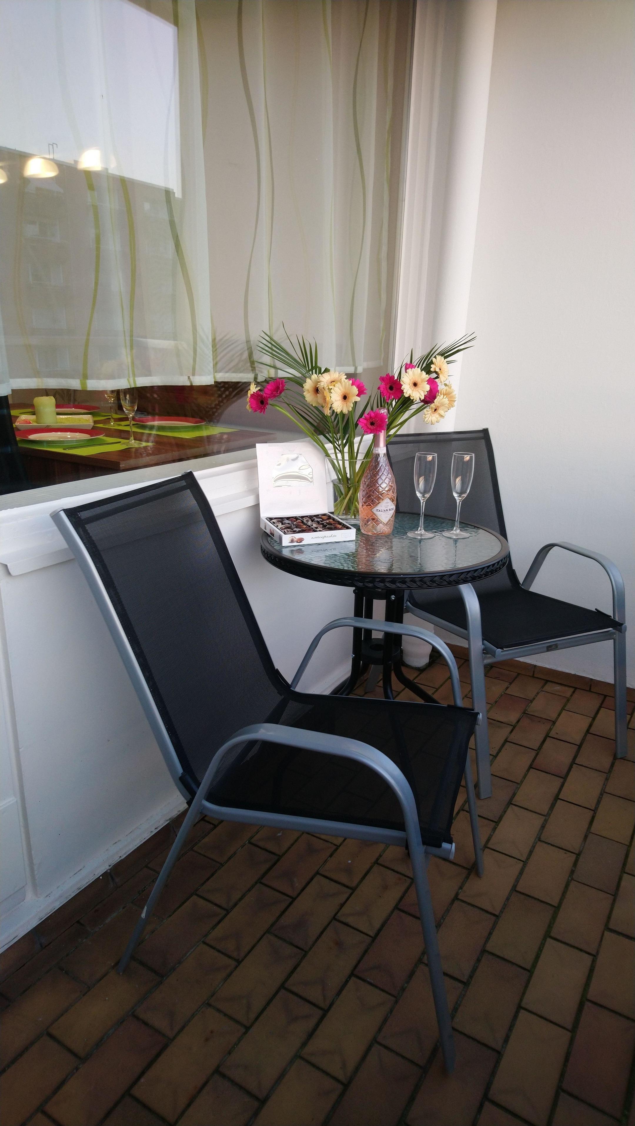 Auf dem Balkon können Sie entspannen, Kaffee trinken oder einfach ein gutes Buch lesen.