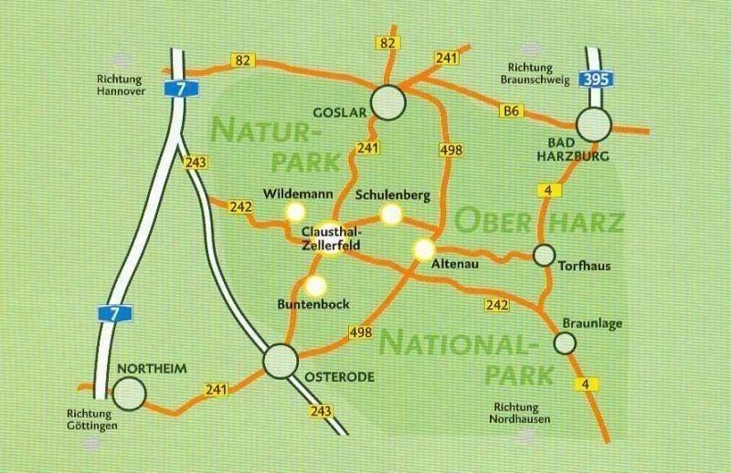 Unser Haus liegt in der Stasse " Kleine Oker ". Einer Seitenstrasse ohne Durchgangsverkehr. Bis zum Stadtzentrum sind es nur ca. 5 Gehminuten, bis zur Thermalsole und Saunalandschaft "Heißer Brocken ", sowie zum Kräuterpark mit Gewürzgalerie nur ca.15 Gehminuten.In der Nähe befinden sich die Tennisplätze, das Waldschwimmbad, der Wald mit Wanderwegen und im Winter Ski-und Rodelhang sowie die Langlaufloipen.