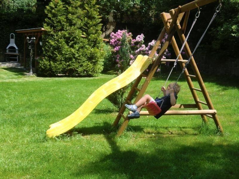 Am Haus befindet sich ein gepflegter Garten, mit Liegewiese, Gartenmöbeln und Grillplatz. Der Parkplatz befindet sich in geschützter Lage hinter dem Haus. Kleiner Spielplatz mit Schaukeln und Rutsche ist auch vorhanden.