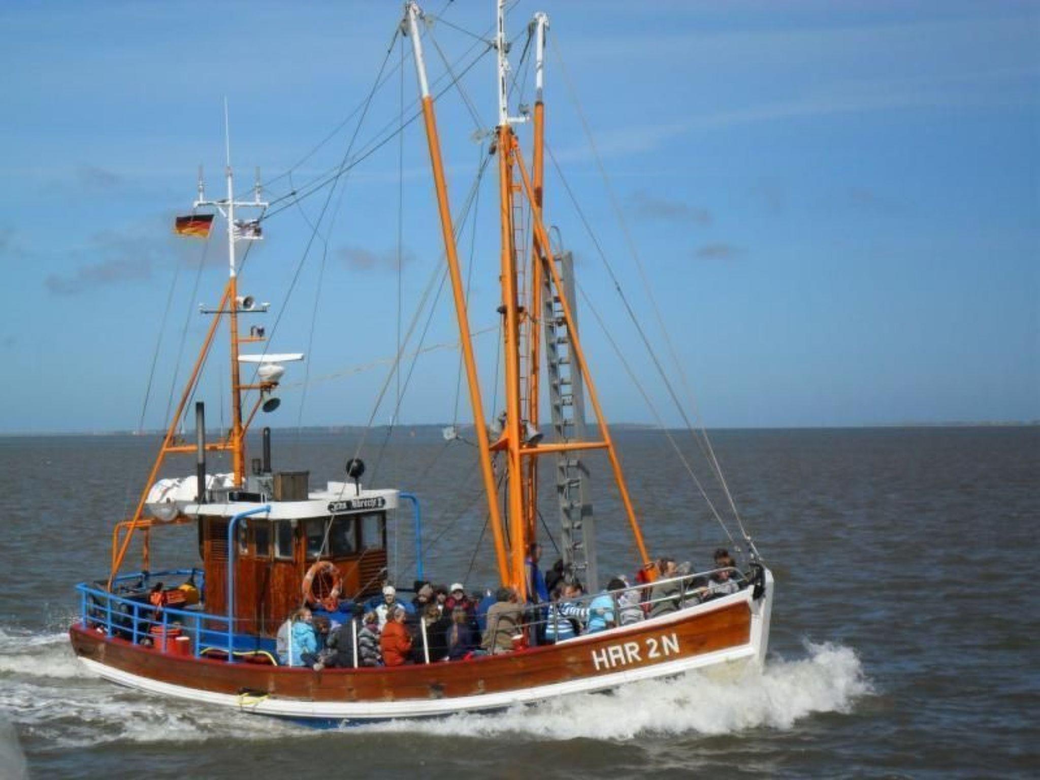 The apartment is located on a beautiful 6500 m² plot. Enjoy the unspoilt south-west location with a view of the Harle, only a few meters away. The terrace with table, chairs, two loungers and a parasol also offers relaxation in fresh and healthy air. A barbecue area and jetty are also available. Just feel at home! Please note that dogs must be kept on a leash on the property.