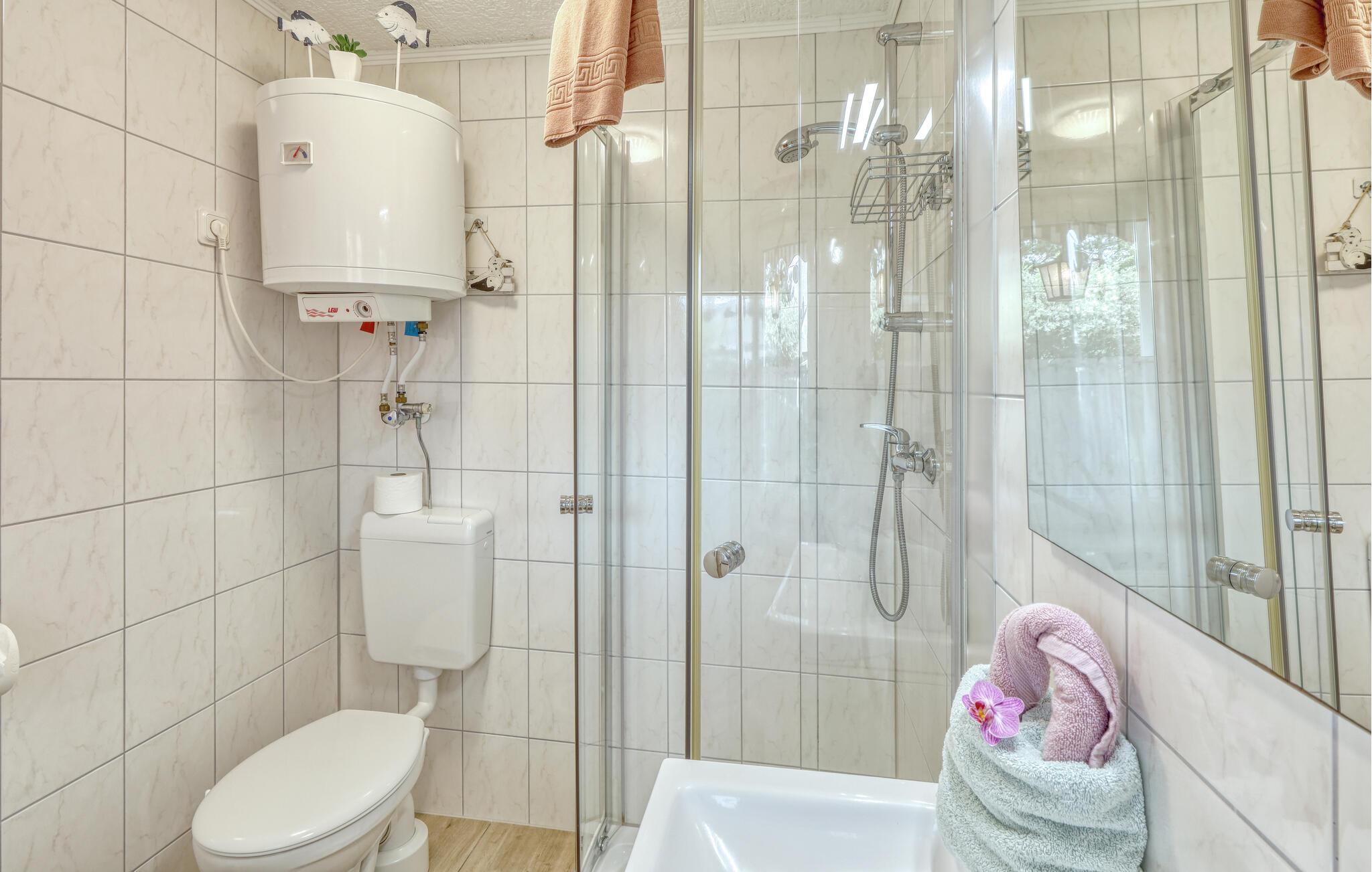 Badeværelse (nr. 1) - WC. Varmt og koldt vand. Bruser