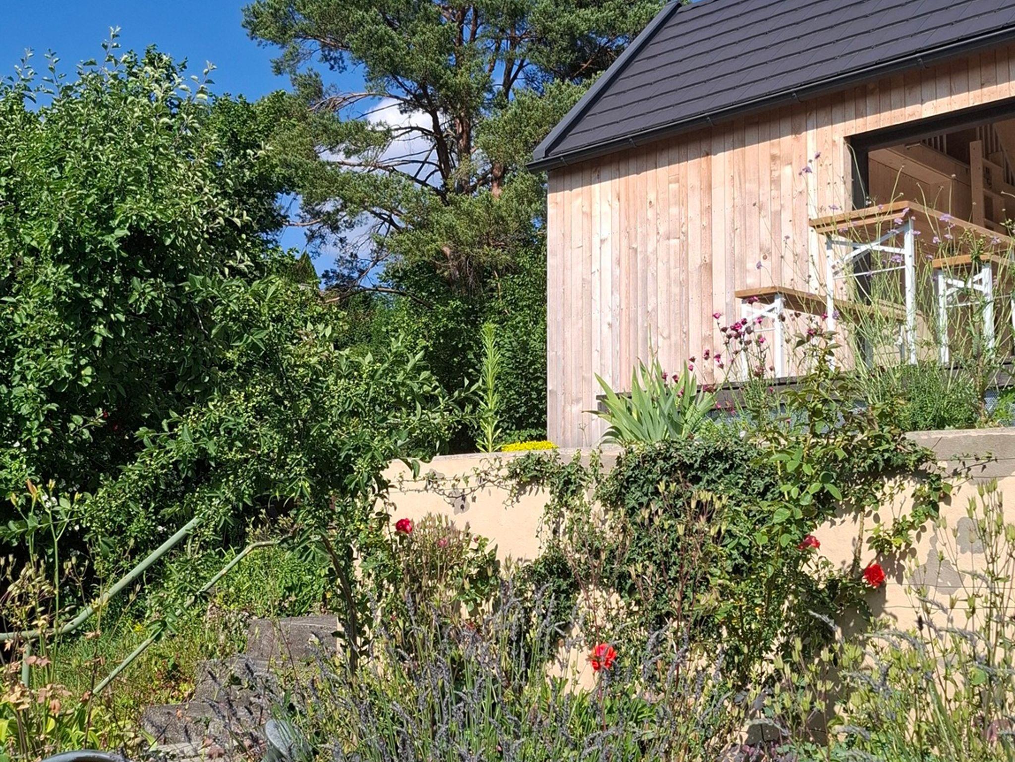 Das ebenerdige Schlafzimmer mit Doppelbett (160x 200cm) und eine gemütliche Schlafkoje mit Doppelmatratze (140x 200cm), erreichbar über eine bequeme Aufstelleiter bieten Platz für bis zu vier Personen. In der Küche findet Ihr ausreichend Geschirr und Küchenutensilien (Espressokocher, Pour over Kaffebereiter, Toaster) sowie einen Kühlschrank mit Eisfach und eine Spülmaschine. Bio Kaffee und Tee, Essig/ Öl, Salz, Pfeffer und Zucker stehen für Euch bereit. Das moderne Bad ist mit Dusche, WC und Waschbecken ausgestattet. Ausreichend Handtücher sowie Shampoo/ Duschgel von Mari & Anne sind dabei. Für gemütliche Stunden im Häuschen oder auf der großen Sonnenterrasse gibt es mehrere Sitzmöglichkeiten, zwei Sonnenliegen und zwei In- und Outdoor Sitzsäcke zum Chillen. Der als vogelfreundlich zertifizierte Naturgarten lädt zum Entspannen ein. Hier könnt Ihr ungestört dem Vogelgezwitscher lauschen. Für romantische Abendstunden könnt Ihr eine Moon Feuerschale mit Plancha Grillplatte und Holzpellets nutzen.