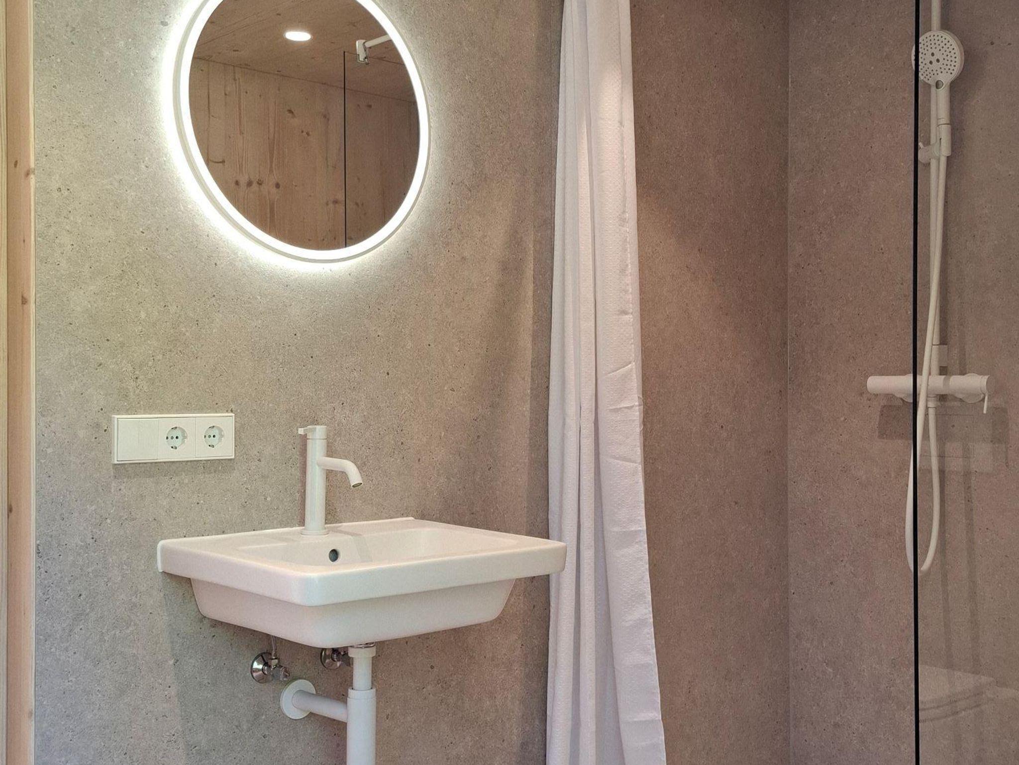 Das ebenerdige Schlafzimmer mit Doppelbett (160x 200cm) und eine gemütliche Schlafkoje mit Doppelmatratze (140x 200cm), erreichbar über eine bequeme Aufstelleiter bieten Platz für bis zu vier Personen. In der Küche findet Ihr ein Doppelinduktionsfeld, ausreichend Geschirr und Küchenutensilien (Espressokocher, Pour over Kaffeebereiter, Toaster) sowie einen Kühlschrank mit Eisfach und eine Spülmaschine. Bio Kaffee und Tee, Essig/ Öl, Salz, Pfeffer und Zucker stehen für Euch bereit. Das moderne Bad ist mit Dusche, WC und Waschbecken ausgestattet. Ausreichend Handtücher sowie Shampoo/ Duschgel von Mari & Anne sind dabei. Für gemütliche Stunden im Häuschen oder auf der großen Sonnenterrasse gibt es mehrere Sitzmöglichkeiten, zwei Sonnenliegen und zwei In- und Outdoor Sitzsäcke zum Chillen. Für romantische Abendstunden könnt Ihr eine Moon Feuerschale mit Plancha Grillplatte und Holzpellets nutzen.