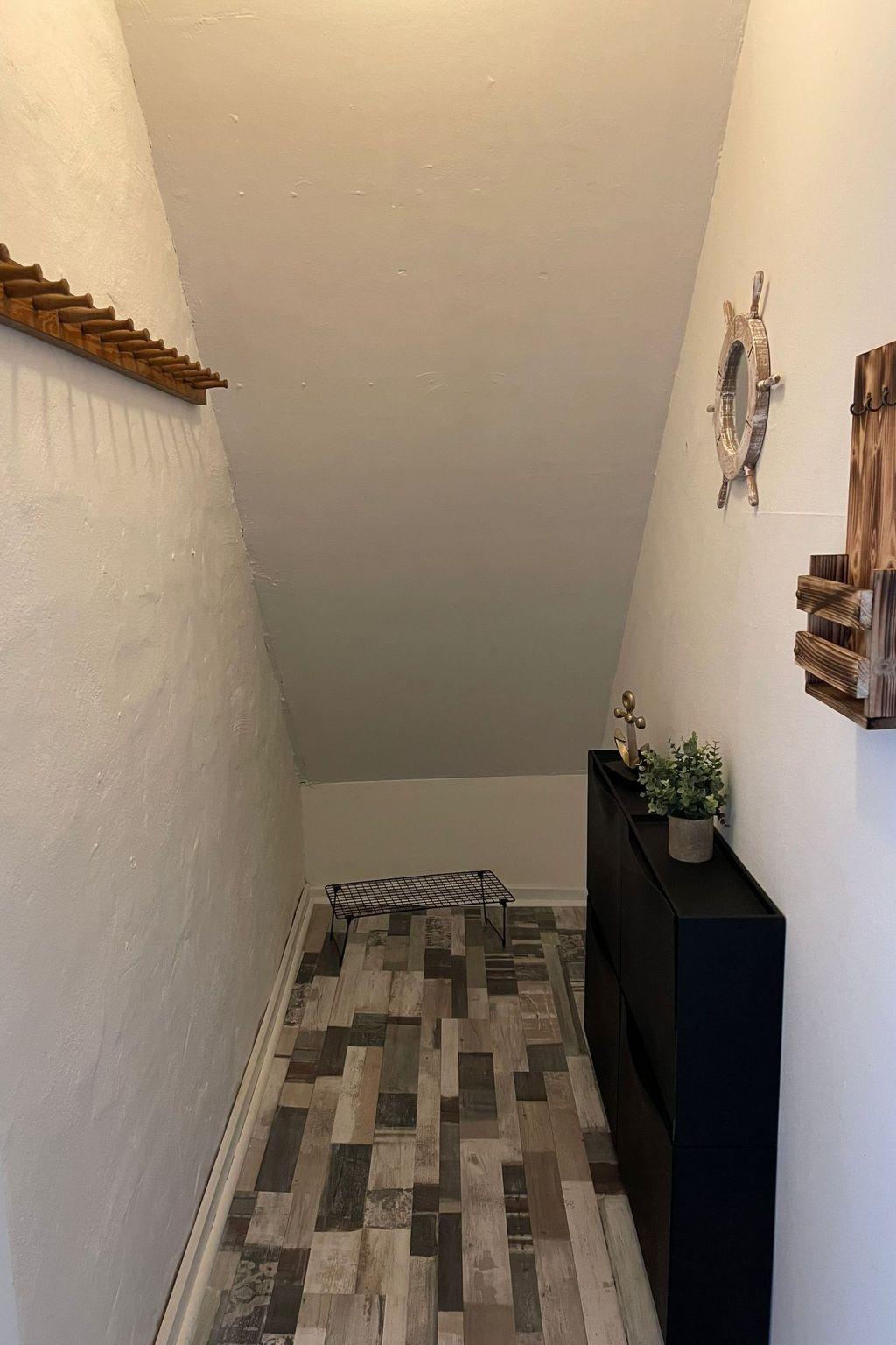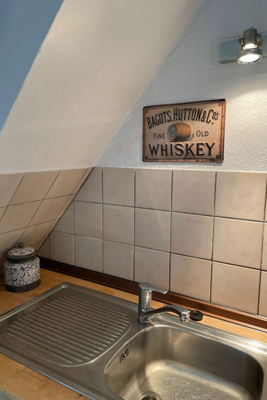 The outside area of the flat is equally enchanting. Situated in a quiet side street between the lively harbour and the historic Nordermarkt, the location offers an idyllic retreat in the middle of the city centre. The immediate surroundings are characterised by the relaxed, maritime atmosphere of the harbour and the historic beauty of old Flensburg facades, making the outdoor area a real highlight.