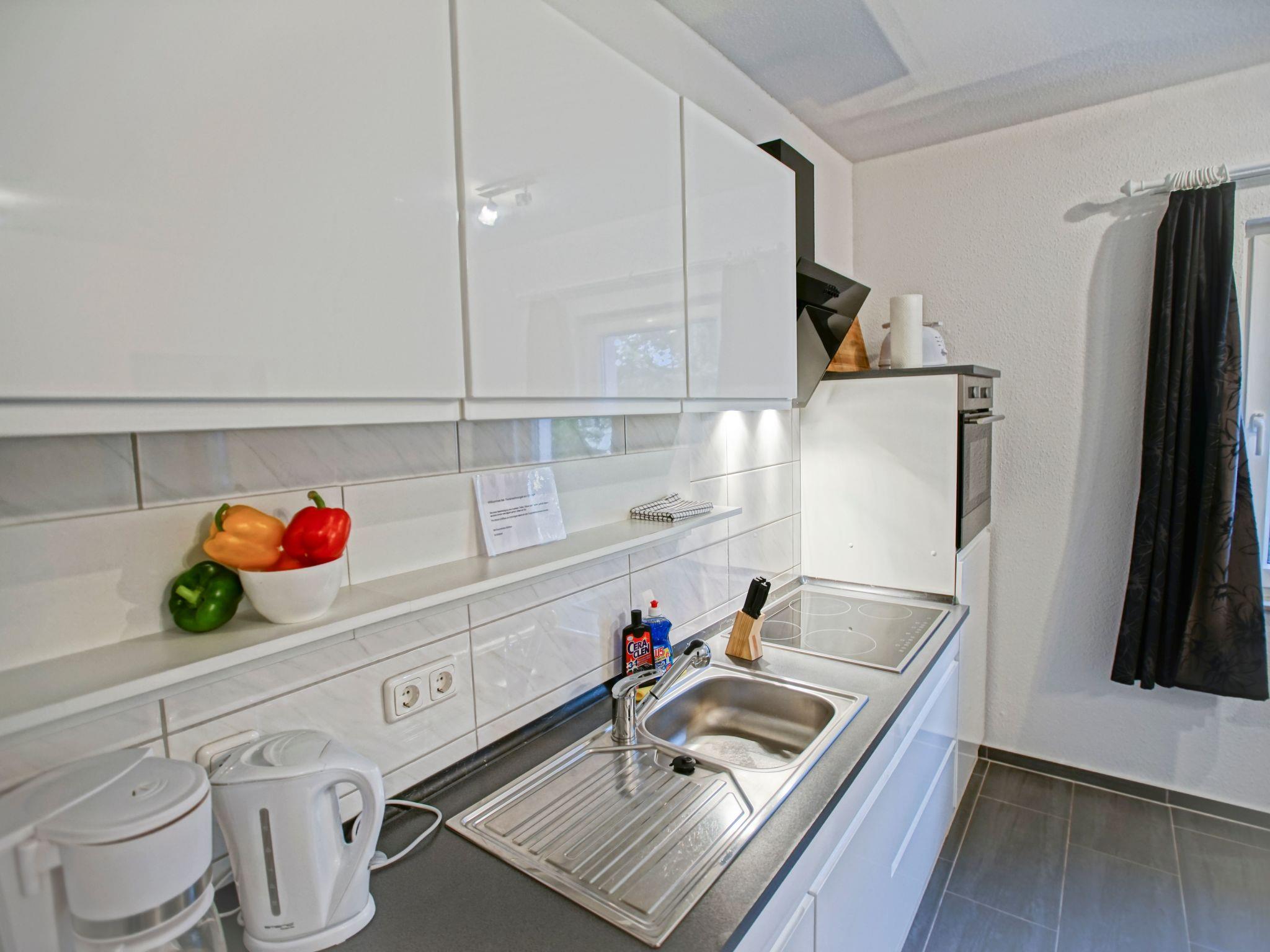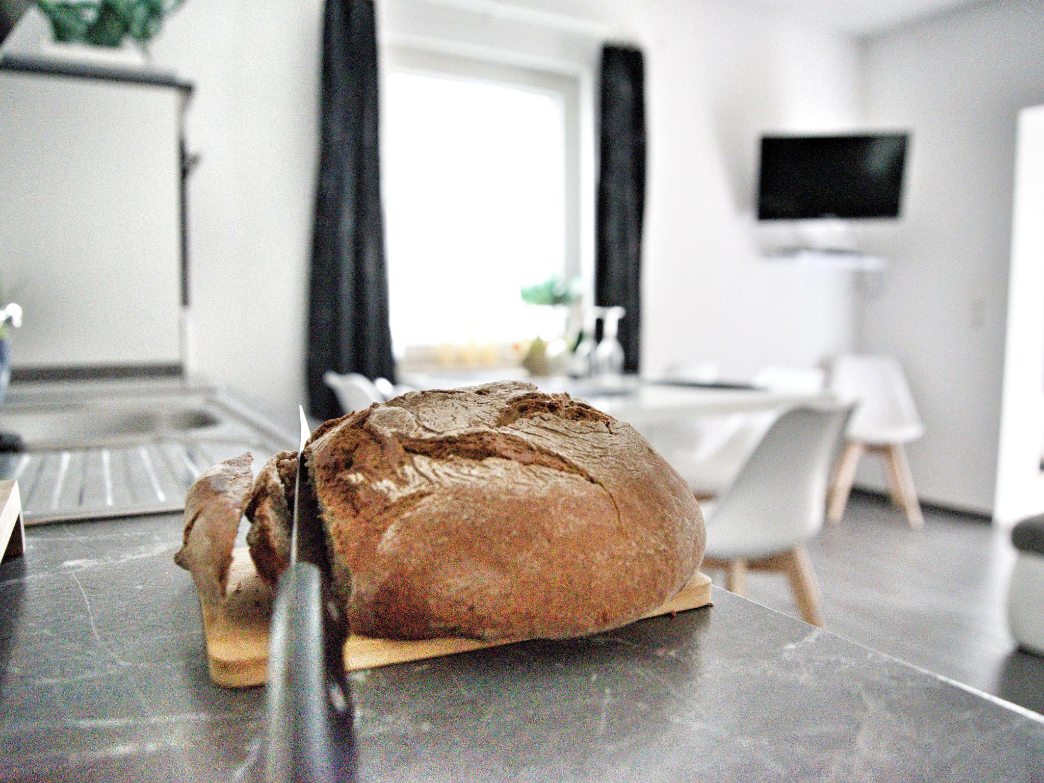 Enjoy a relaxing holiday in a modern furnished flat on approx. 82 m², which meets high demands for a comfortable holiday. The living area is divided into a hallway, two bedrooms with a double bed (180 cm x 200 cm), which is surrounded by two bedside tables with reading lamps on both sides. There is always a spacious wardrobe with mirrored doors in front of the double bed, which offers plenty of storage space for your luggage. The centrepiece of the flat is the 23 m² living room with sofa bed and a kitchenette with integrated dining area. Relax on the pull-out sofa bed after a day out, while the flat-screen TV with satellite TV and TV-USB connection provides entertainment. A crackling fire in the wood-burning stove provides cosy warmth and a particularly cosy ambience even in the cold season. When pulled out, the sofa provides a comfortable sleeping area for two people with a bed size of 194 cm x 235 cm. The open-plan kitchen allows you to prepare your own meals using a four-zone hob, an oven, a fridge with freezer compartment and numerous small electrical appliances, from a toaster and microwave to a coffee machine. You can dine together in the attractive dining area for up to 6 people. The bathroom has a shower cubicle, a wash hand basin with WC and towel dryer, as well as a bathroom window. The flat is heated very comfortably with underfloor heating (included in the price), it is also possible to heat with a fireplace (additional costs), as well as with electric heating (additional costs).