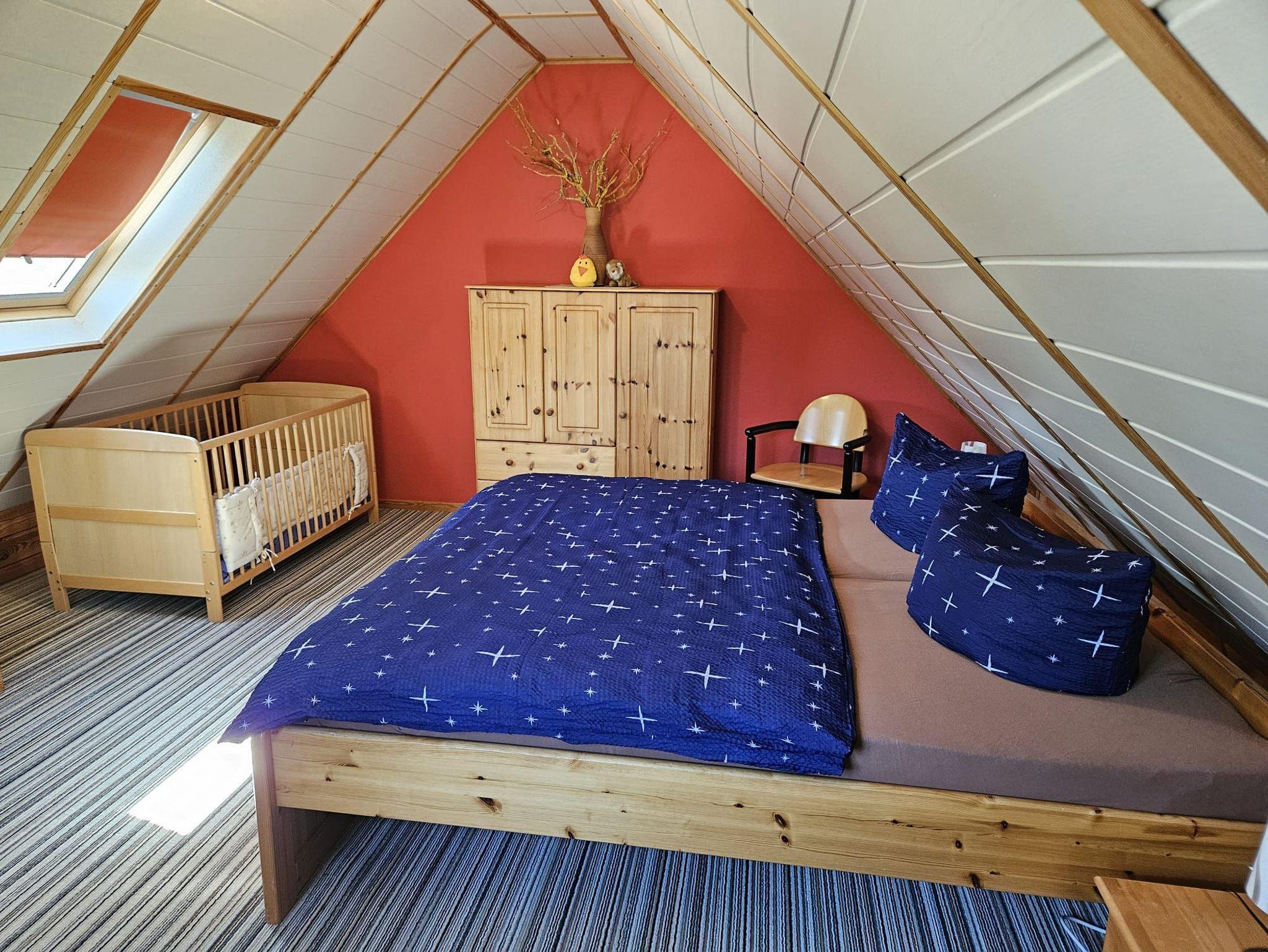 Unmittelbar vor der Ferienwohnung befindet sich eine sonnige Sitzgelegenheit mit Strandkorb und Grillmöglichkeit. Ein großer, eingezäunter Garten mit Spielgeräten gehört ebenso wie ein Autostellplatz dazu.