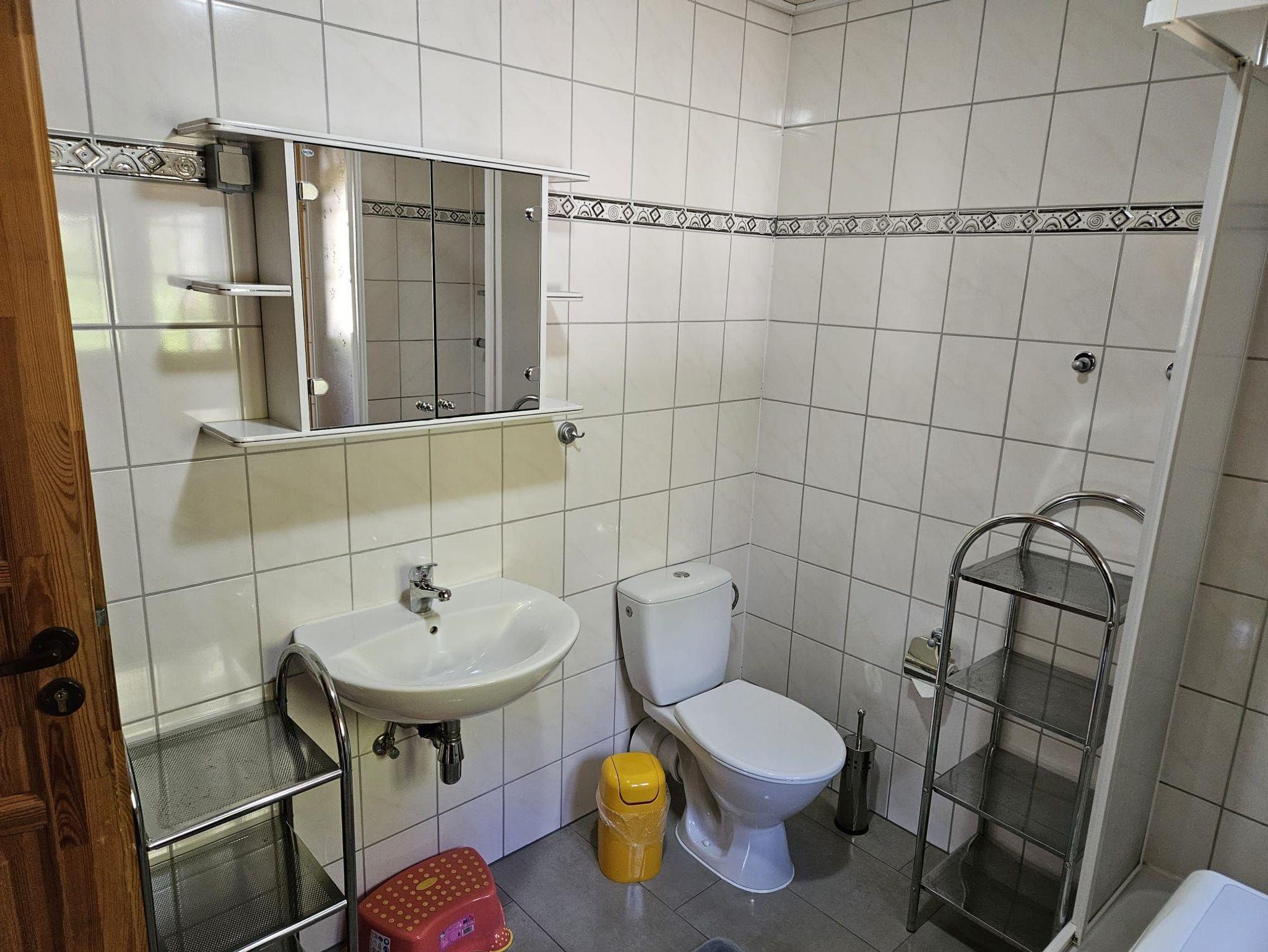 Die Ferienwohnung hat eine normale, solide Ausstattung, ist sehr ruhig direkt am Wald gelegen. In der Wohnung liegt Auslegeware, es ist ein Nichraucherhaus. Auf dem Hof ist eine Terrasse. Zur Info: In die obere Etage führt eine steile Treppe