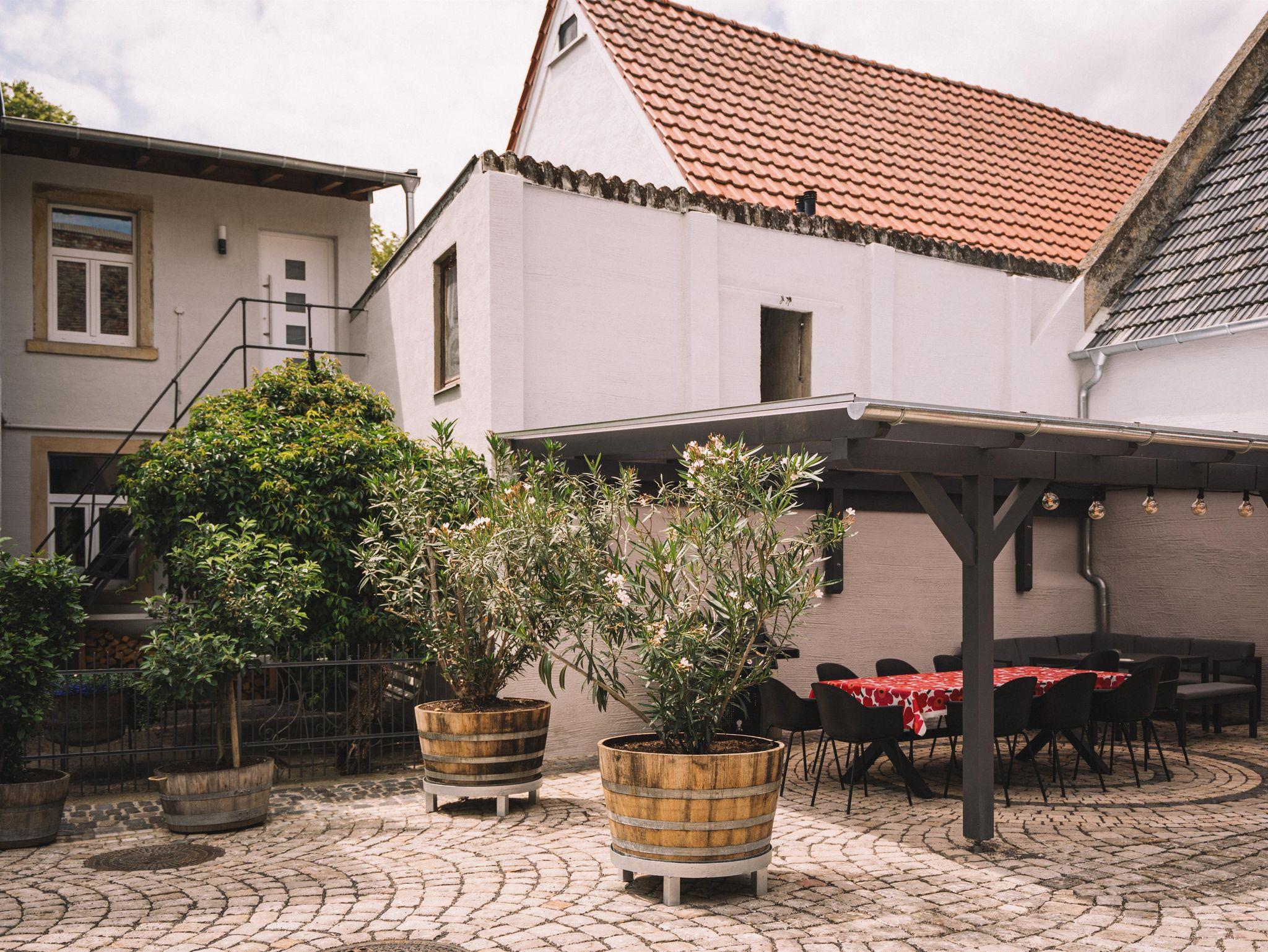 Unser großzügiger Innenhof steht Ihnen während Ihres Aufenthalts exklusiv zur Verfügung. Und auch unsere Vinothek können Sie gerne nutzen. Selbstverständlich bieten wir Ihnen hierzu gerne unsere Weine an. Auch eine Weinprobe ist bei Interesse gerne möglich.