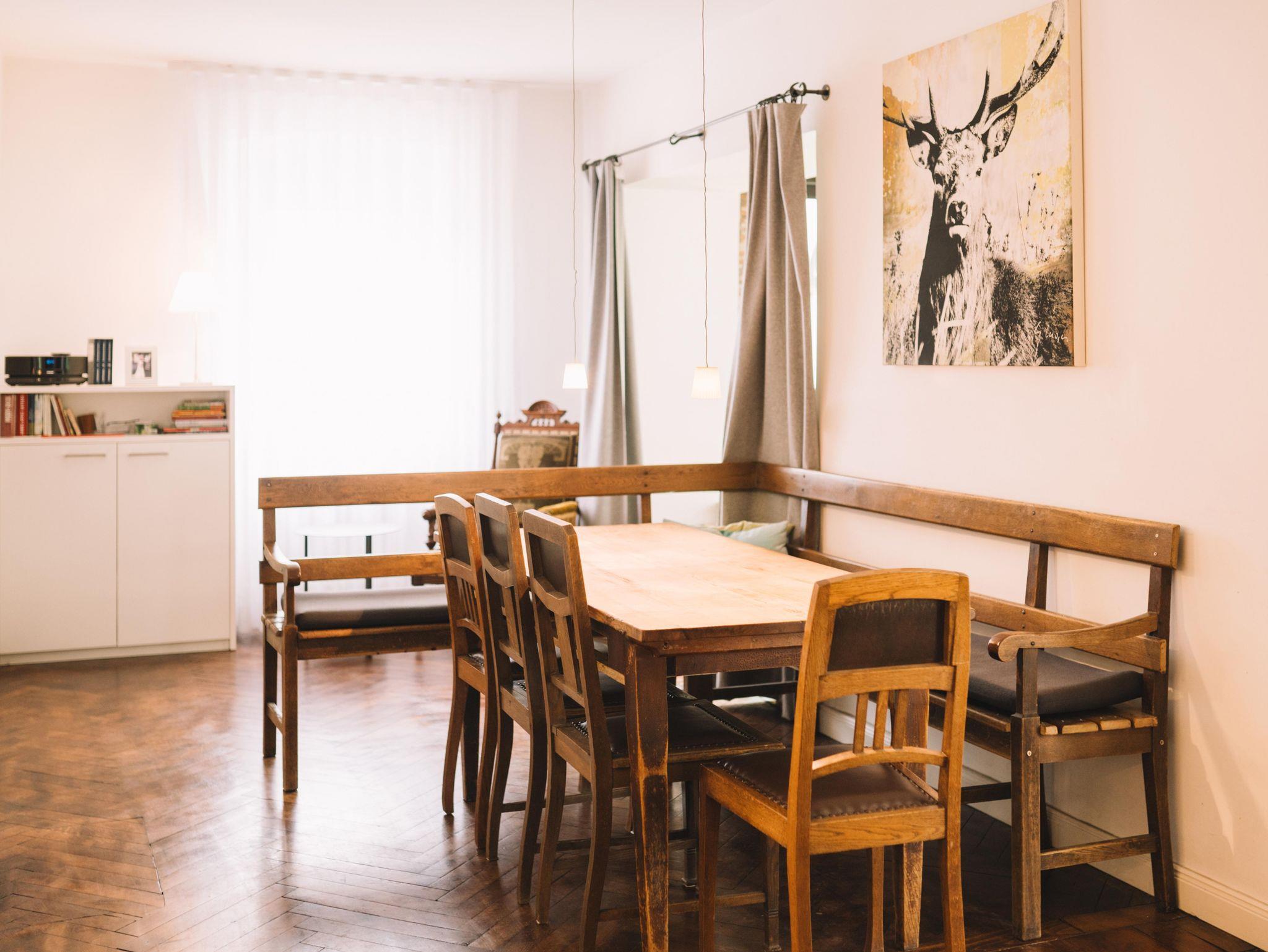 Mit den Gästezimmern im 2. OG mieten Sie gleichzeitig das komplette Erdgeschoß mit seiner großzügigen Küche mit modernen Geräten, einem großzügigen Essplatz und einer Terrasse mit Blick in den Garten.