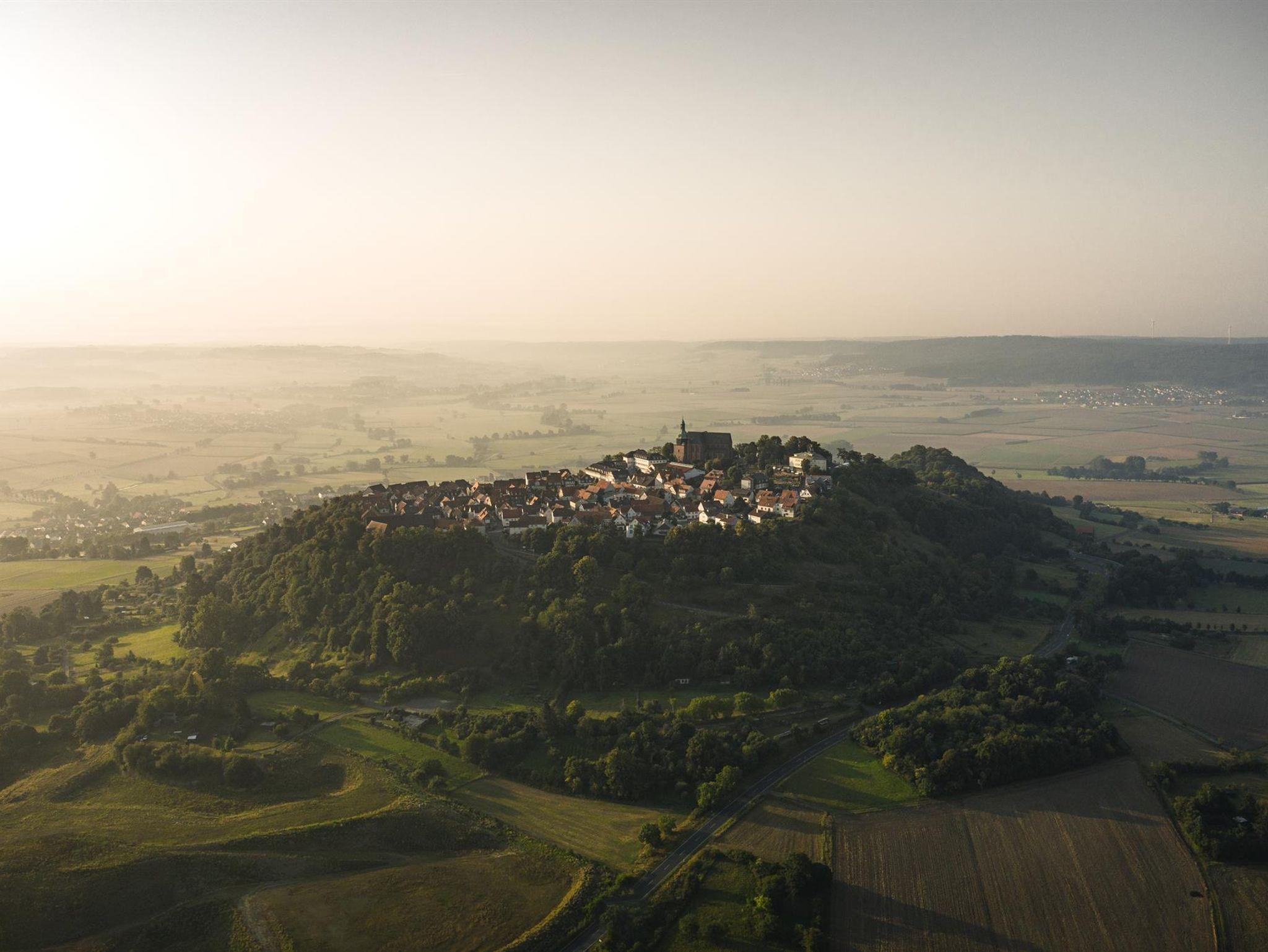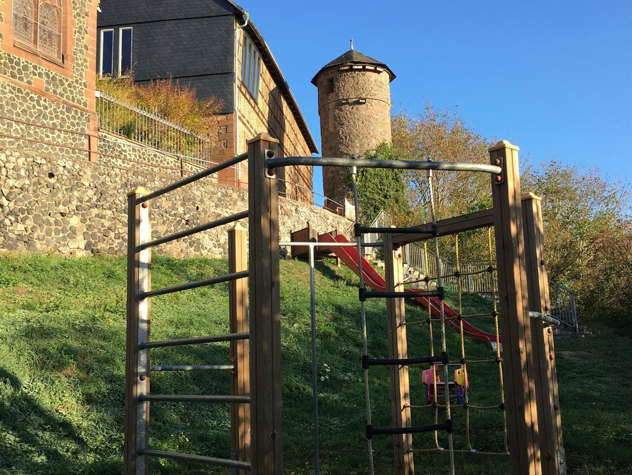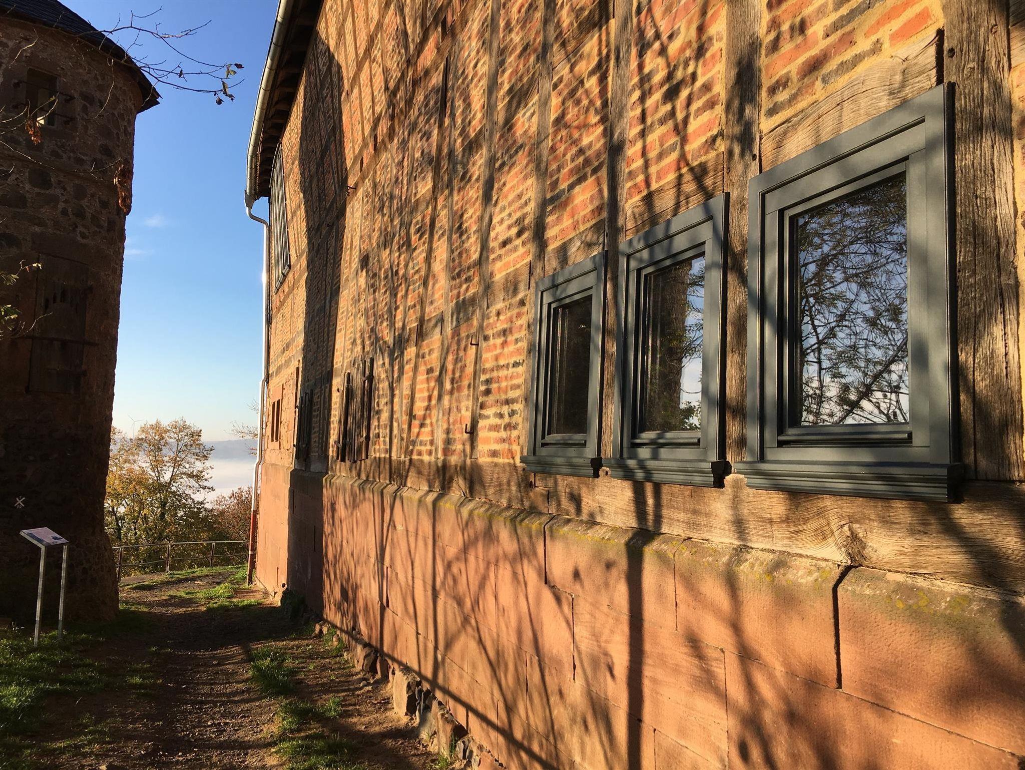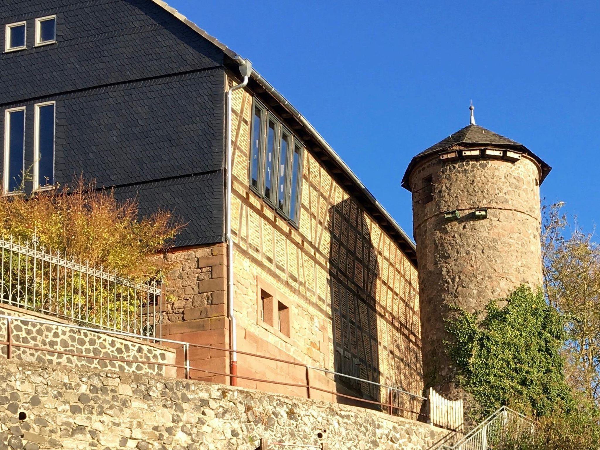 Ferien im Denkmal - in Amöneburg mitten in Hessen: In einer romantischen Kleinstadt mit 1300 jähriger Geschichte liegt altstadtnah das denkmalgeschützte Hof-Ensemble mit Wohnhaus, Stallungen und großer Spiel- und Fitness-Scheune mit Sauna.