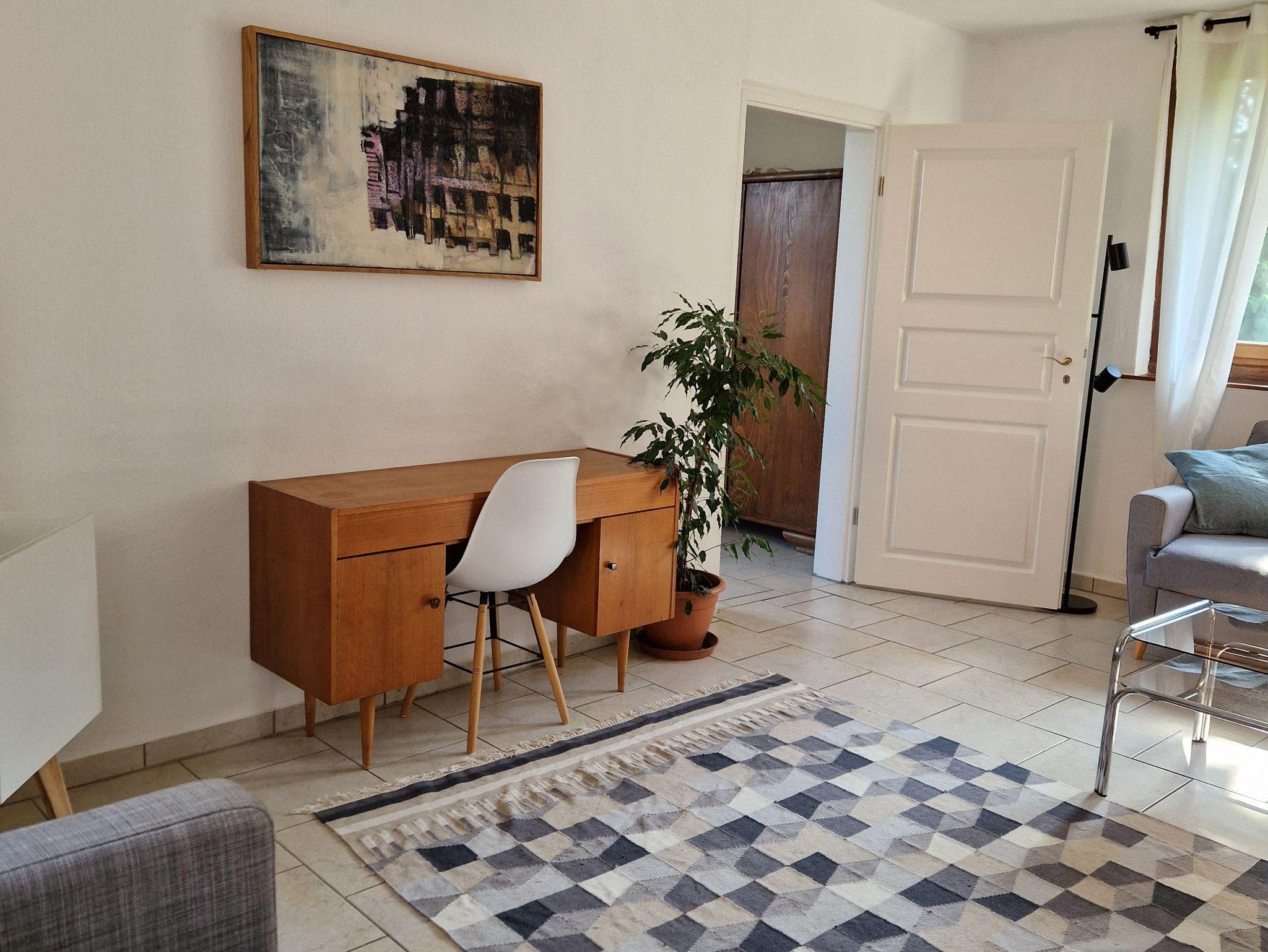 Das Ferienhaus steht etwas abseits des Haupthauses Lichtblick. Es verfügt über einen kleinen Eingangsbereich, eine Küche mit Esstisch und Kamin, einem Wohnzimmer mit einem Schlafsofa, einem separaten Schlafzimmer mit einem gemütlichen Doppelbett, einem Badezimmer mit einer begehbaren Dusche und einer Badewanne. Zusätzlich gibt es eine kleine Terrasse mit einem separaten Garten.